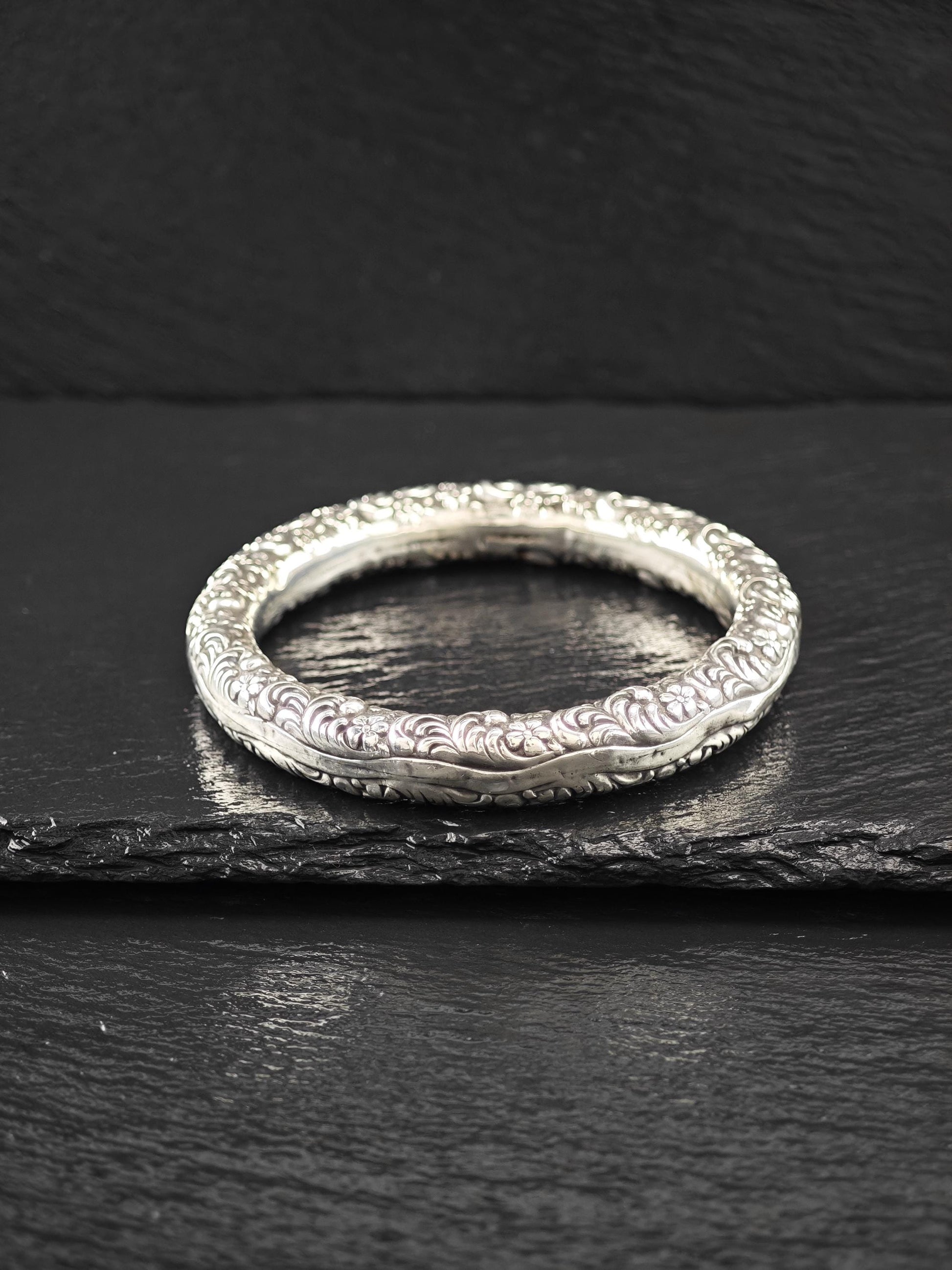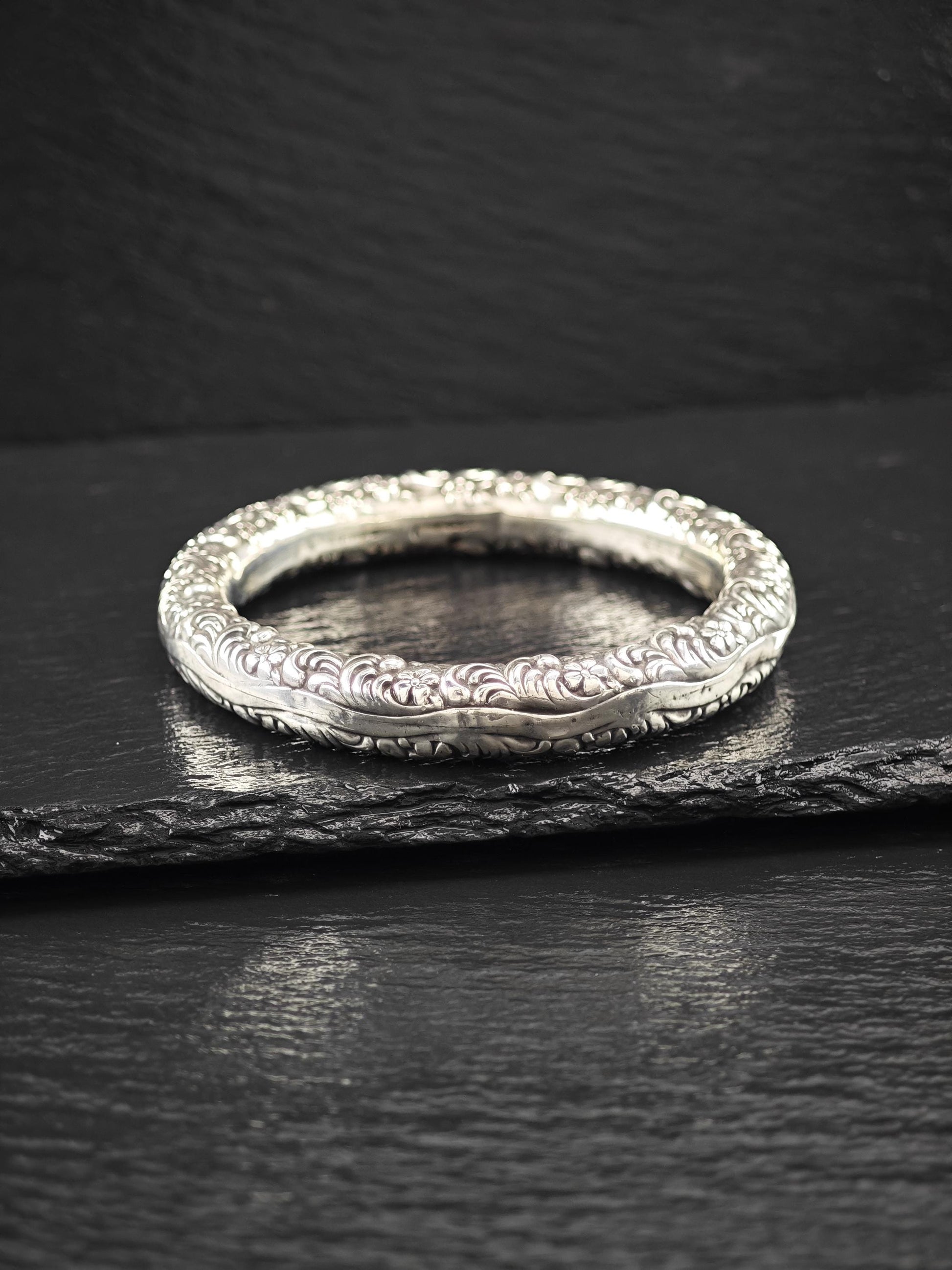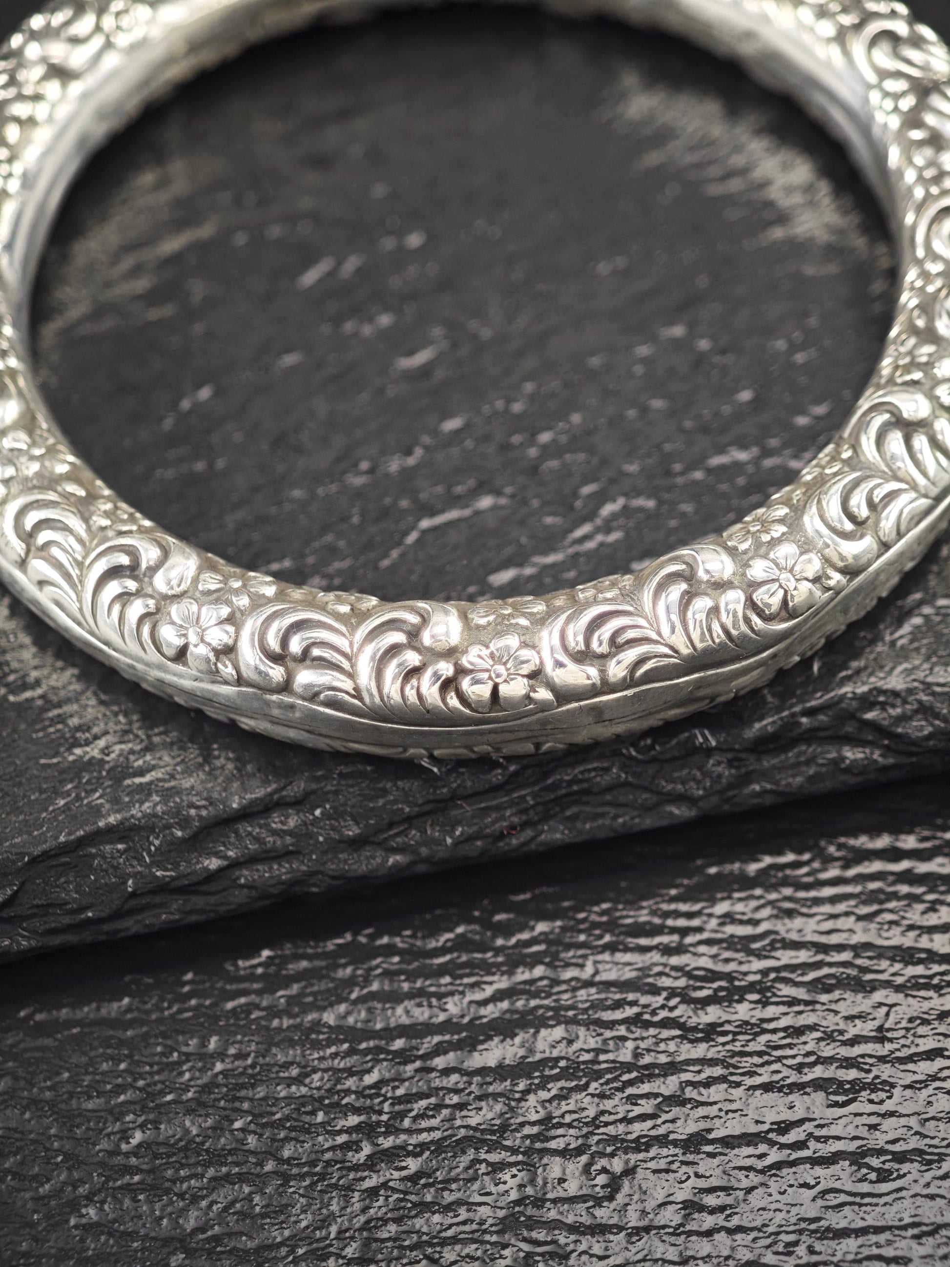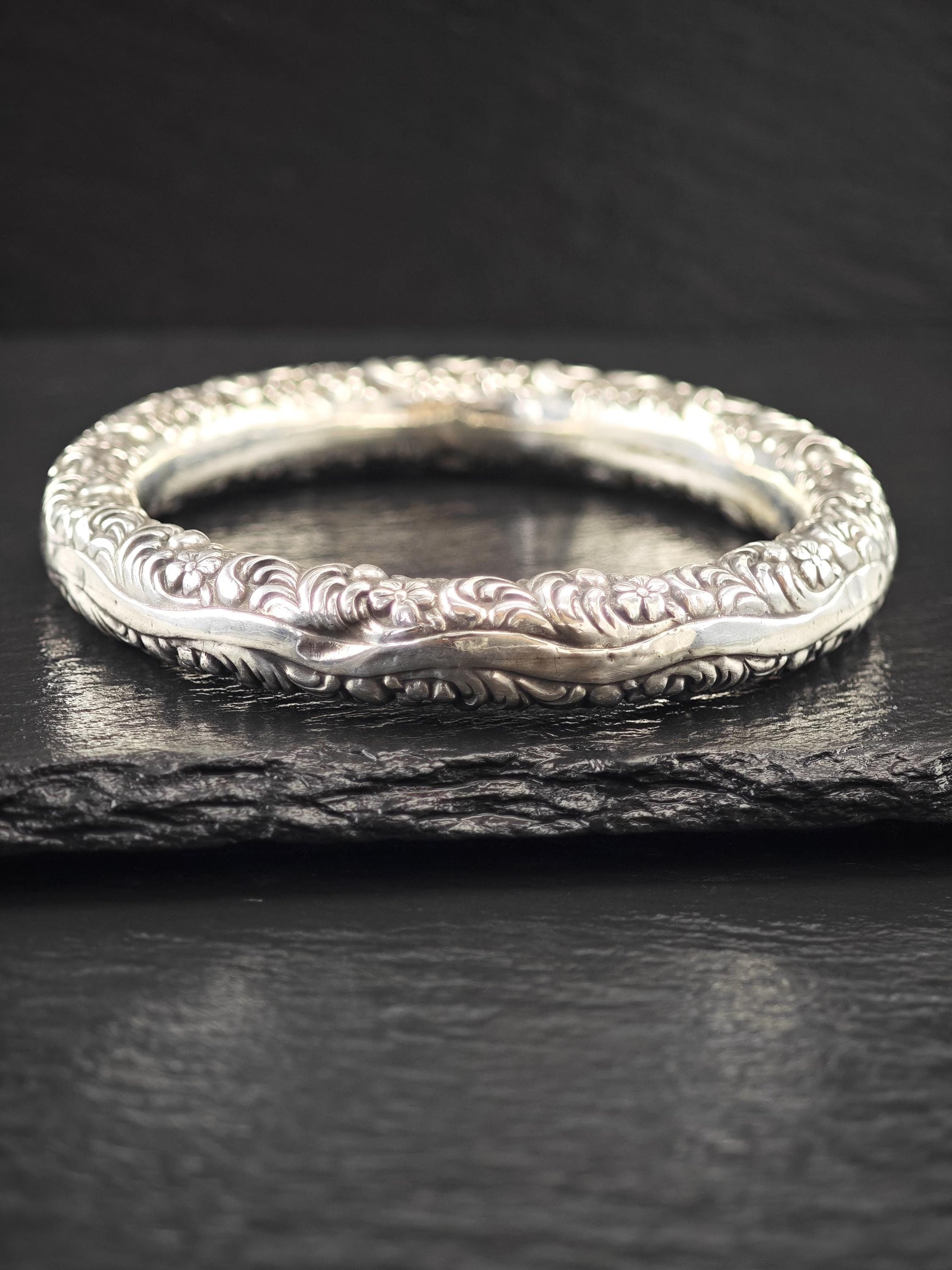 Early Art Nouveau Unger Brothers Repousse Donut Bangle Bracelet Sterling Silver
