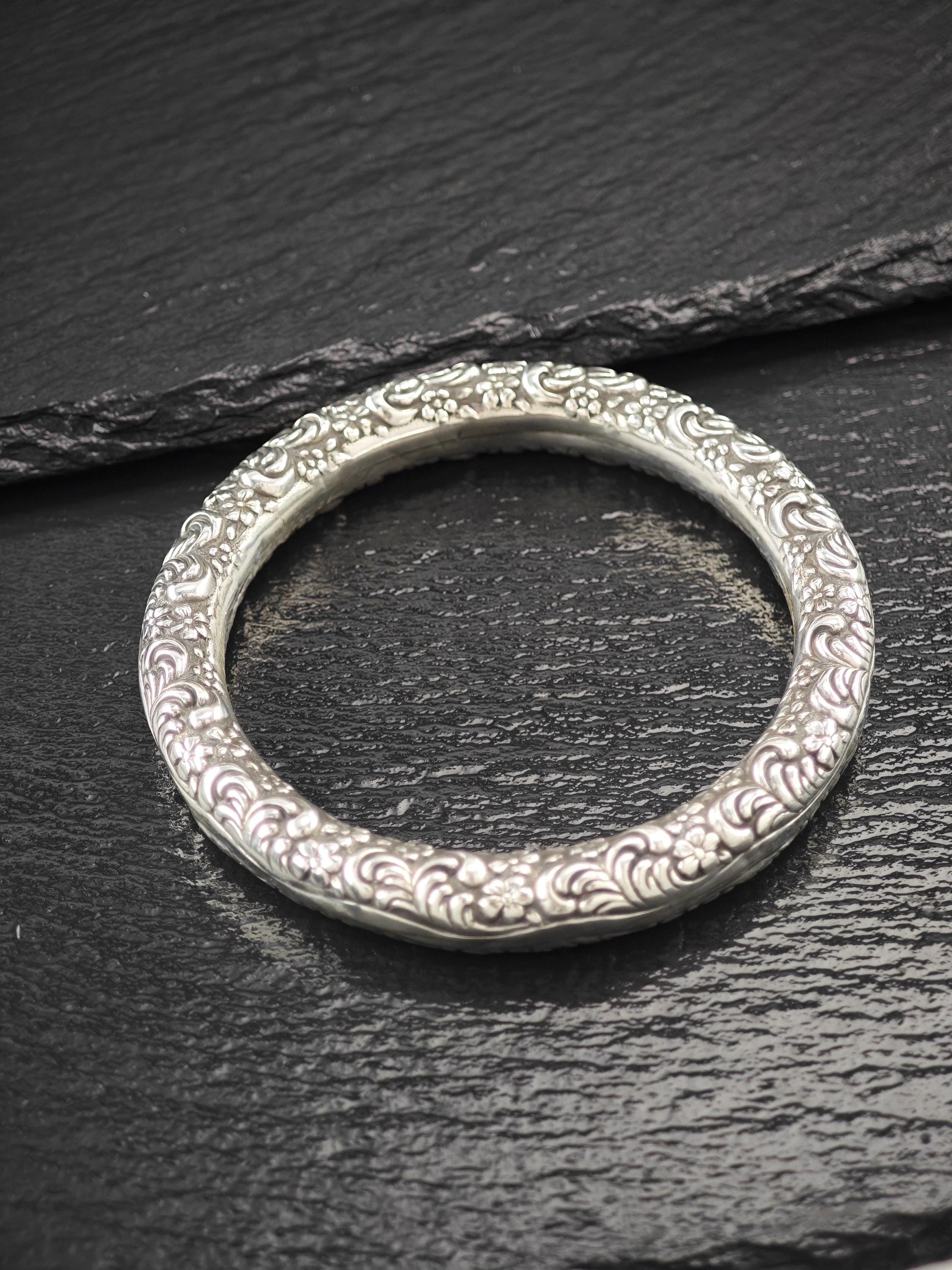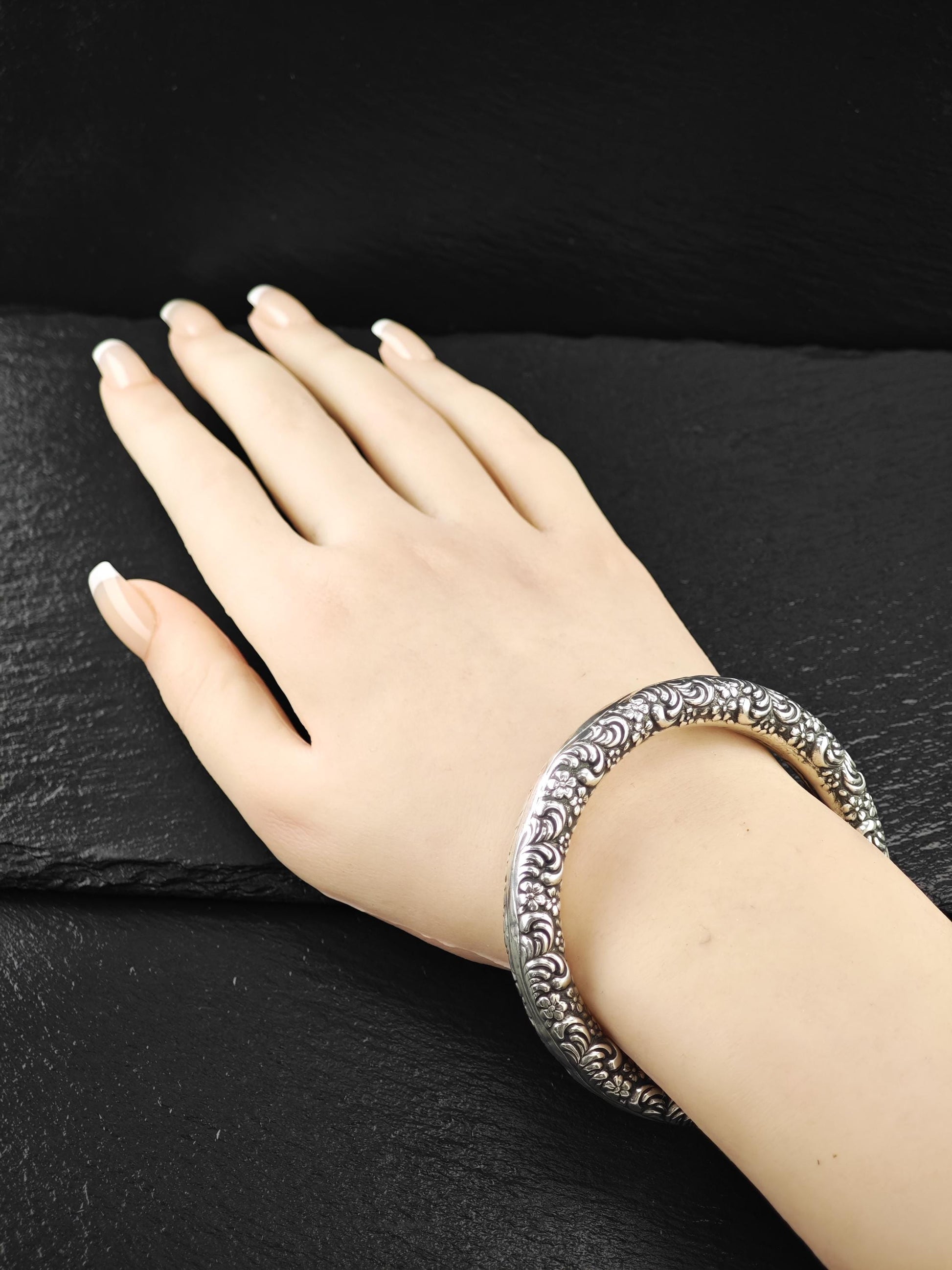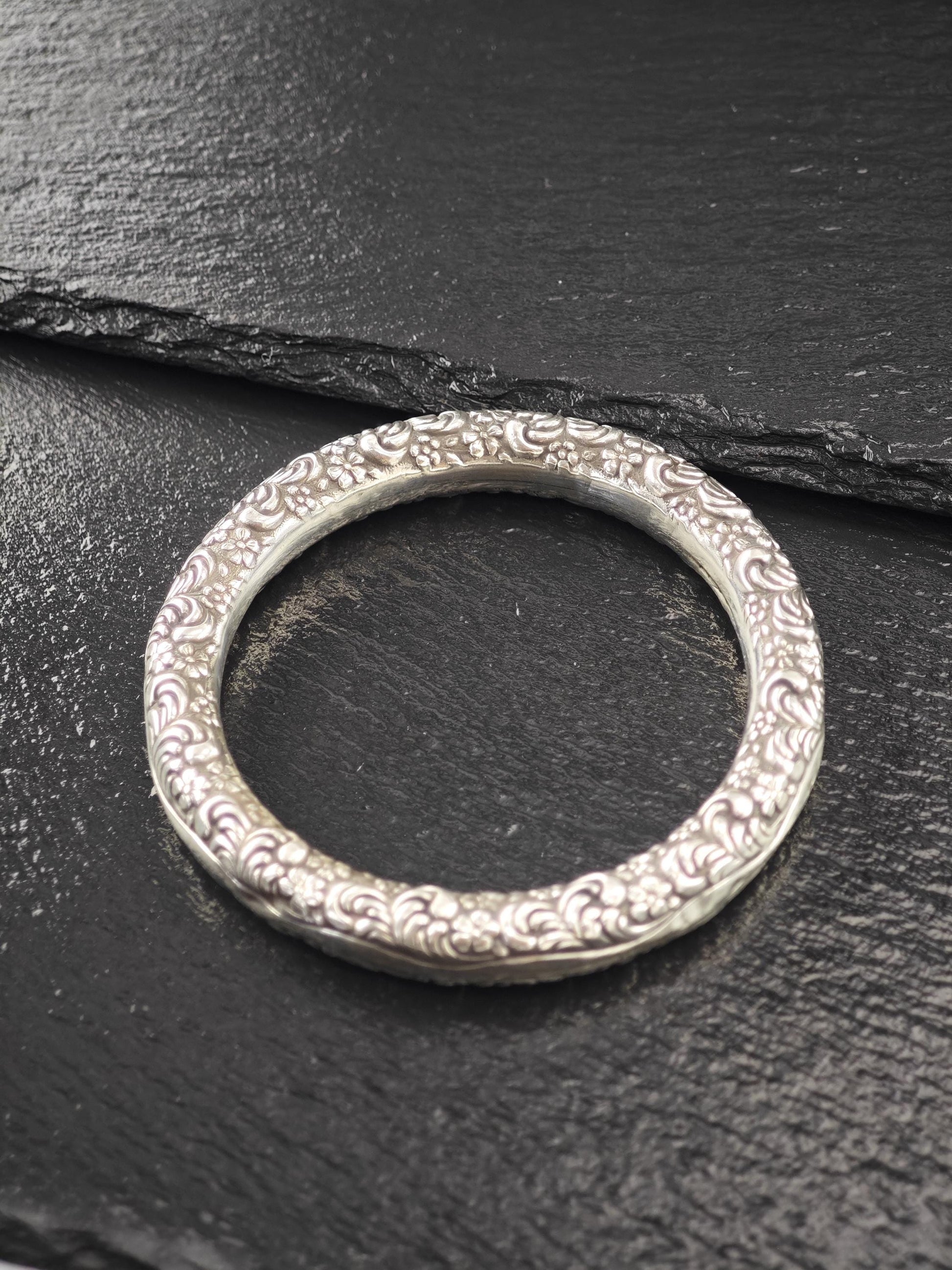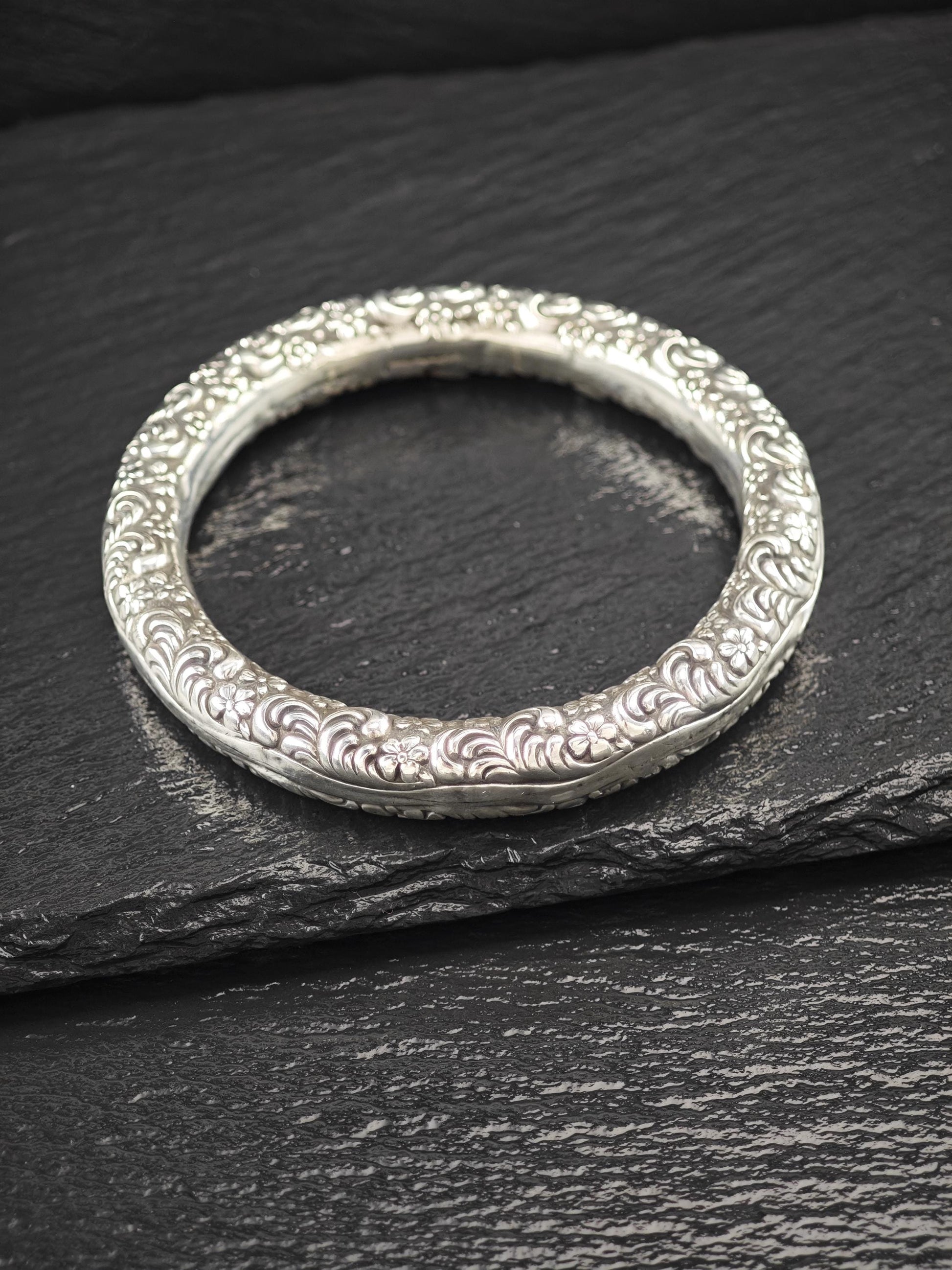 Early Art Nouveau Unger Brothers Repousse Donut Bangle Bracelet Sterling Silver