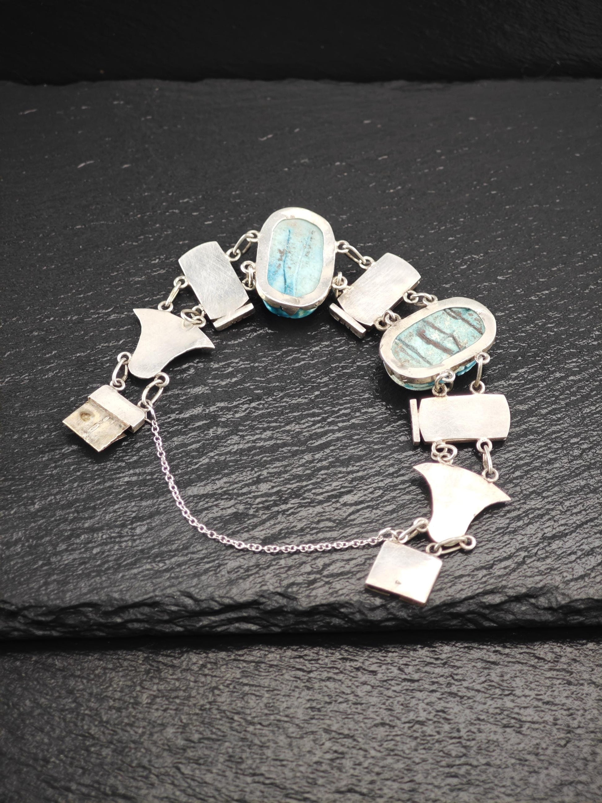 Egyptian Revival Cartouche & Carved Scarab Bracelet Sterling Silver