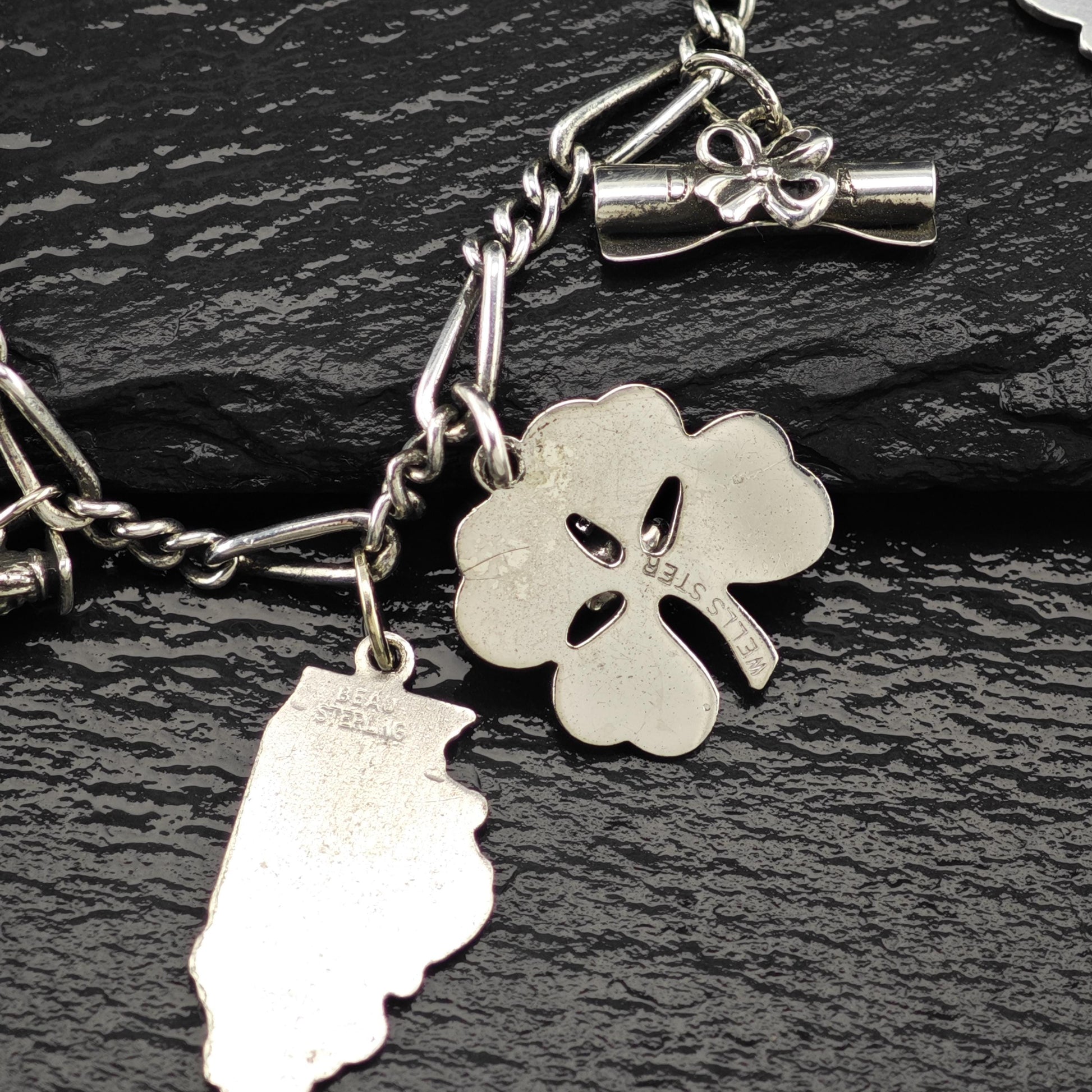 Discover the timeless charm of this vintage sterling silver bracelet, thoughtfully crafted to celebrate enduring style and heritage. Featuring exquisite sterling charms that capture a nostalgic spirit, this piece is perfect for those seeking a unique holiday gift or a special addition to their vintage jewelry collection. Each charm reflects meticulous craftsmanship, making it a meaningful accessory for any occasion.