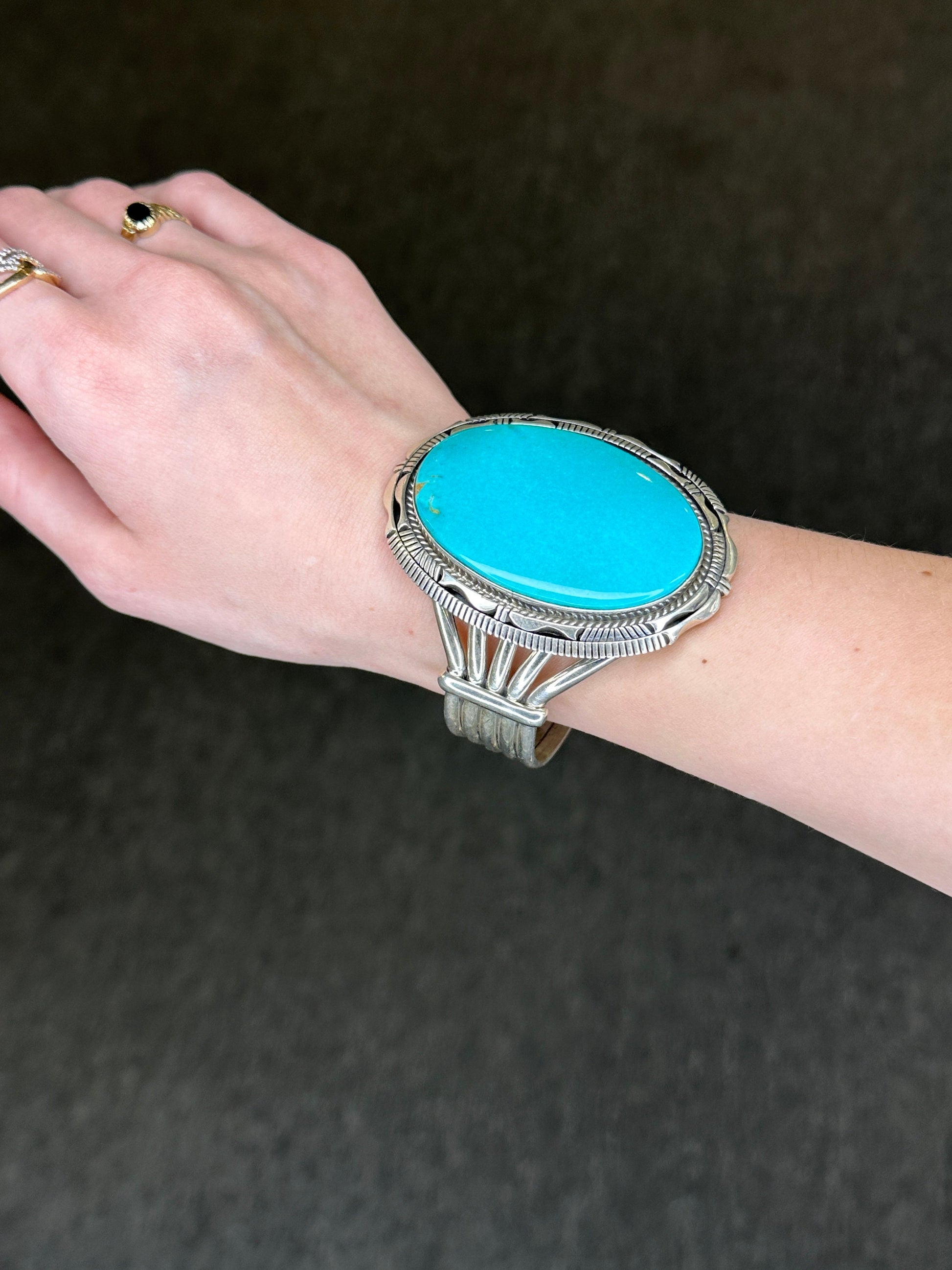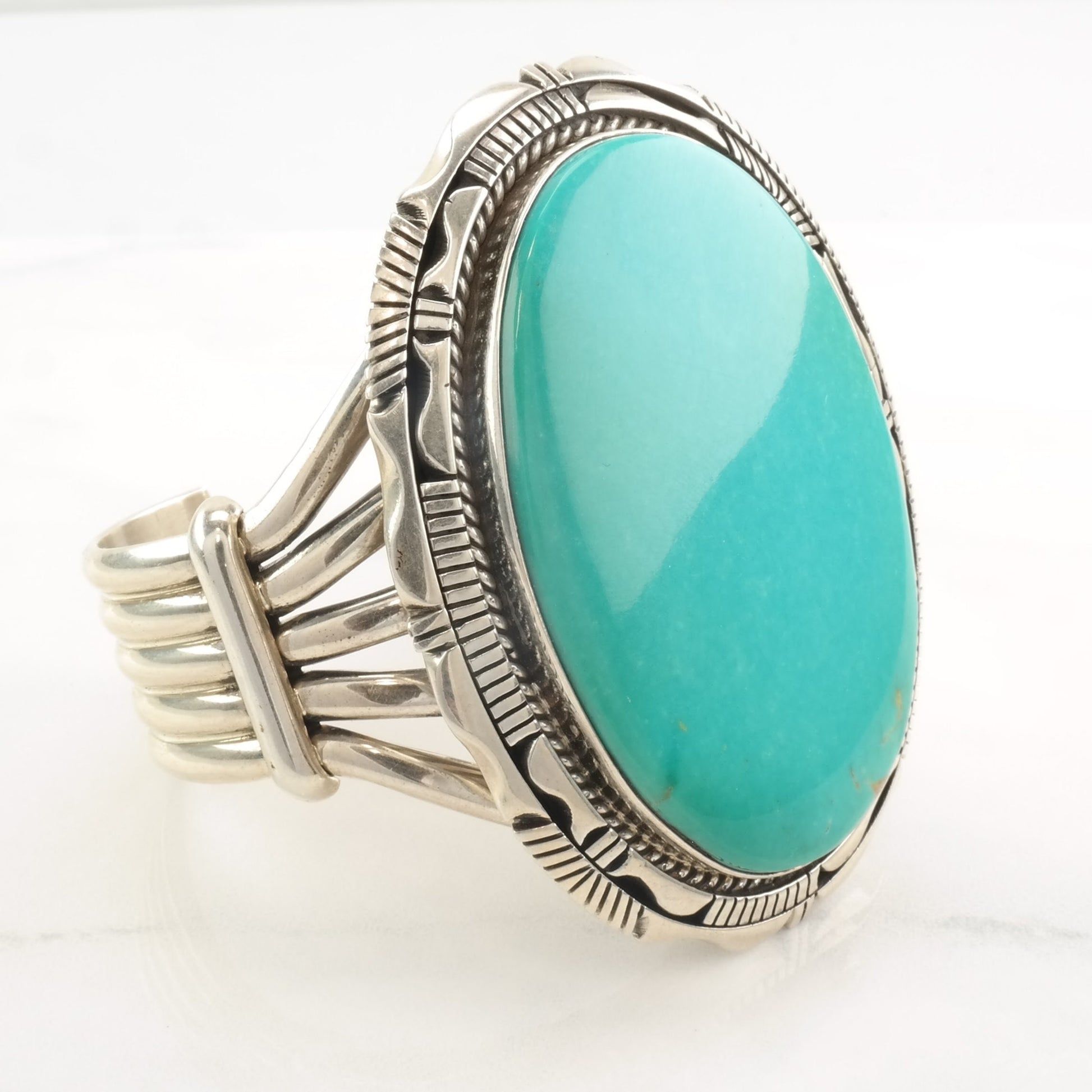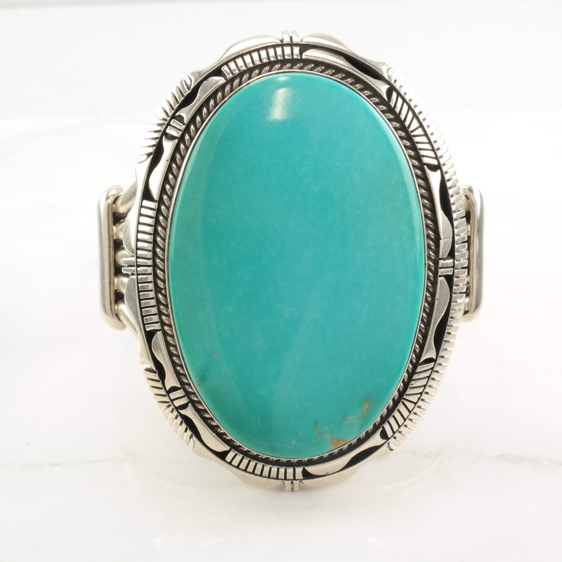Eugene Belone Sterling Silver Cuff Bracelet Large Turquoise Cabochon American Mine