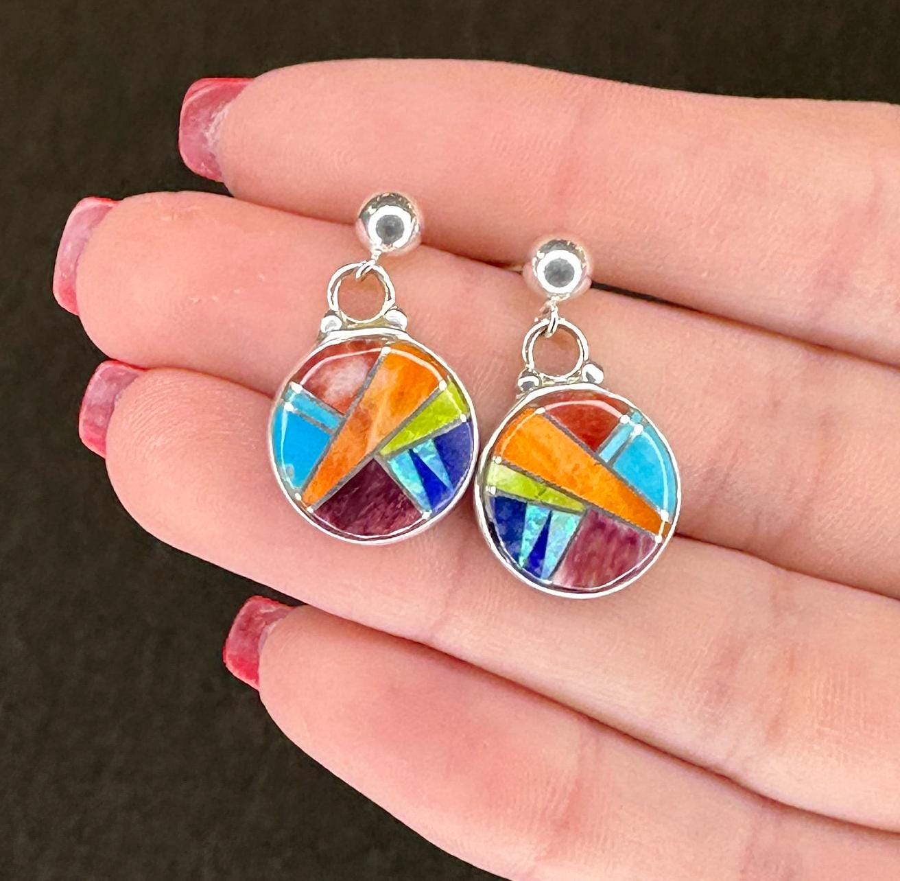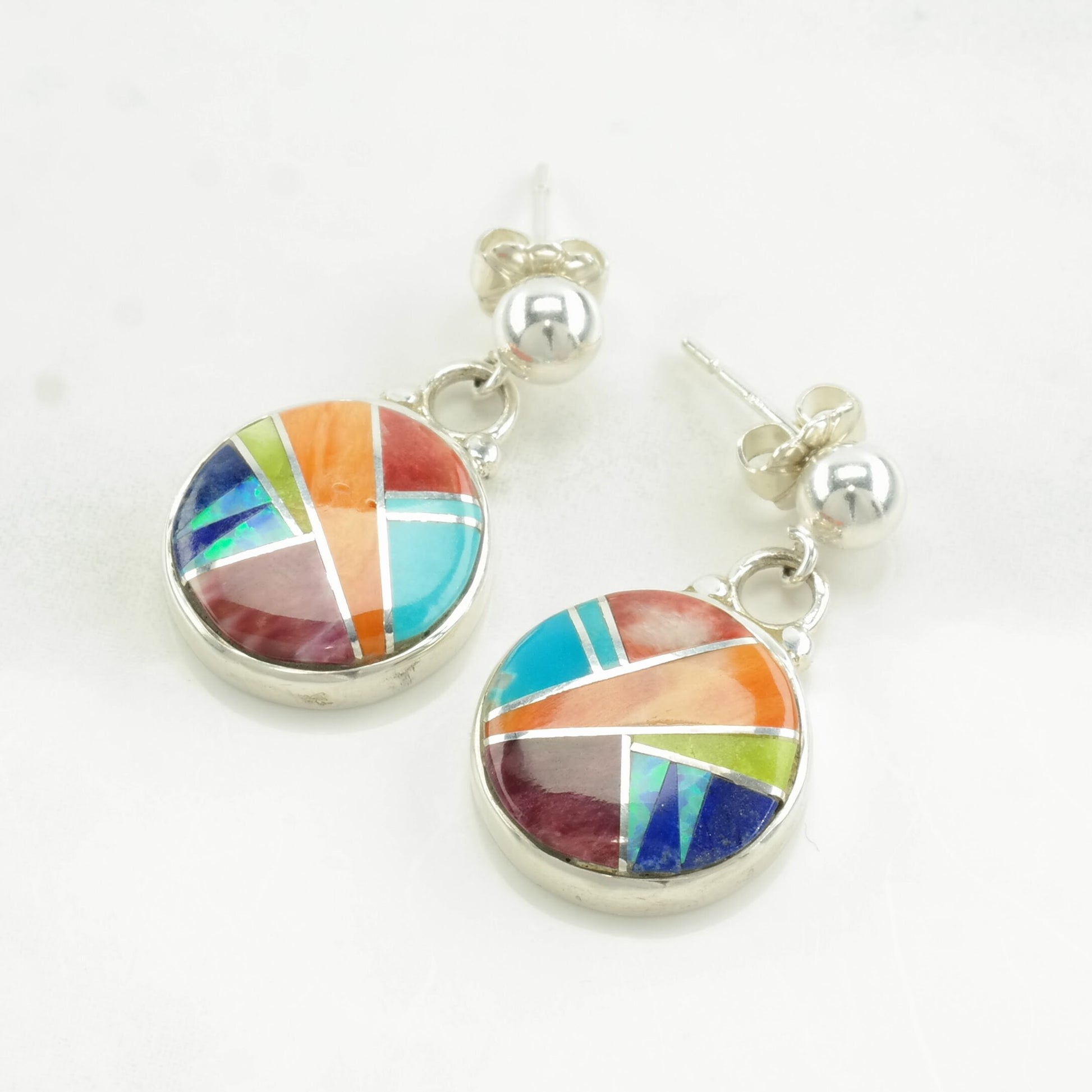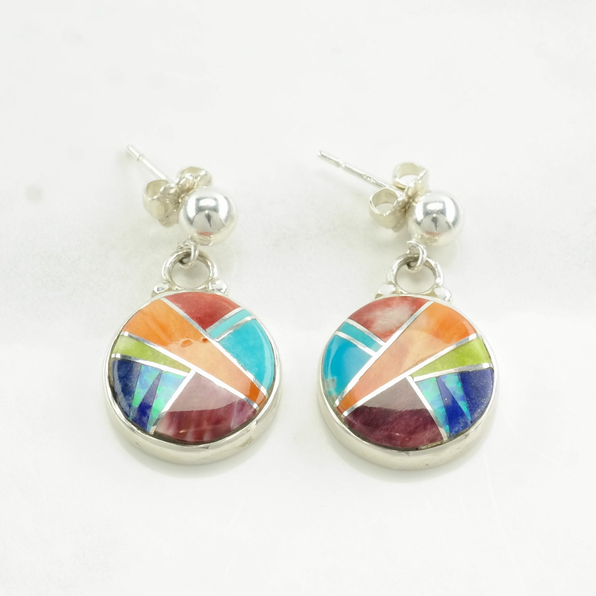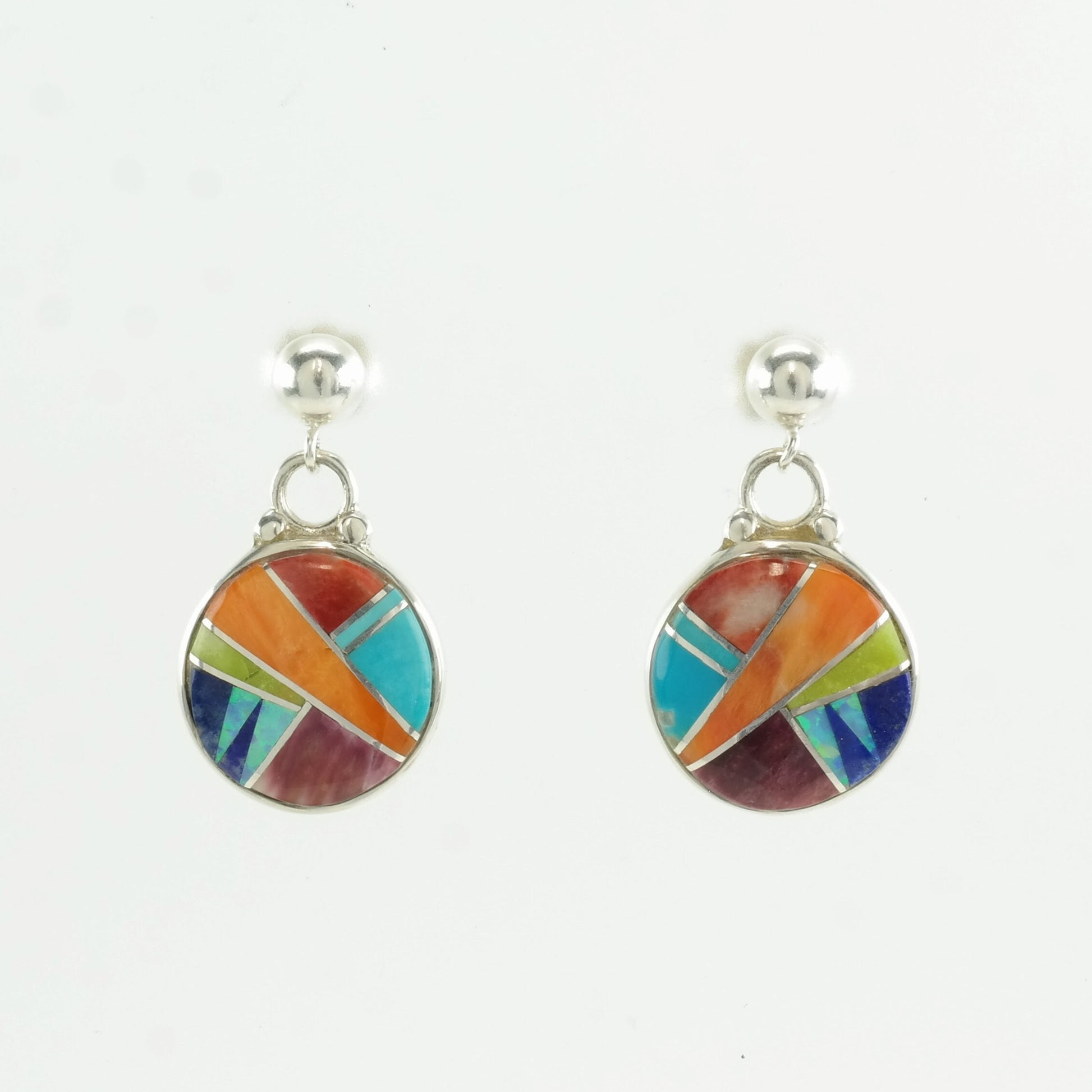 Ferris Sterling Silver Multi Gemstone Inlay Earrings Stud, Dangle
