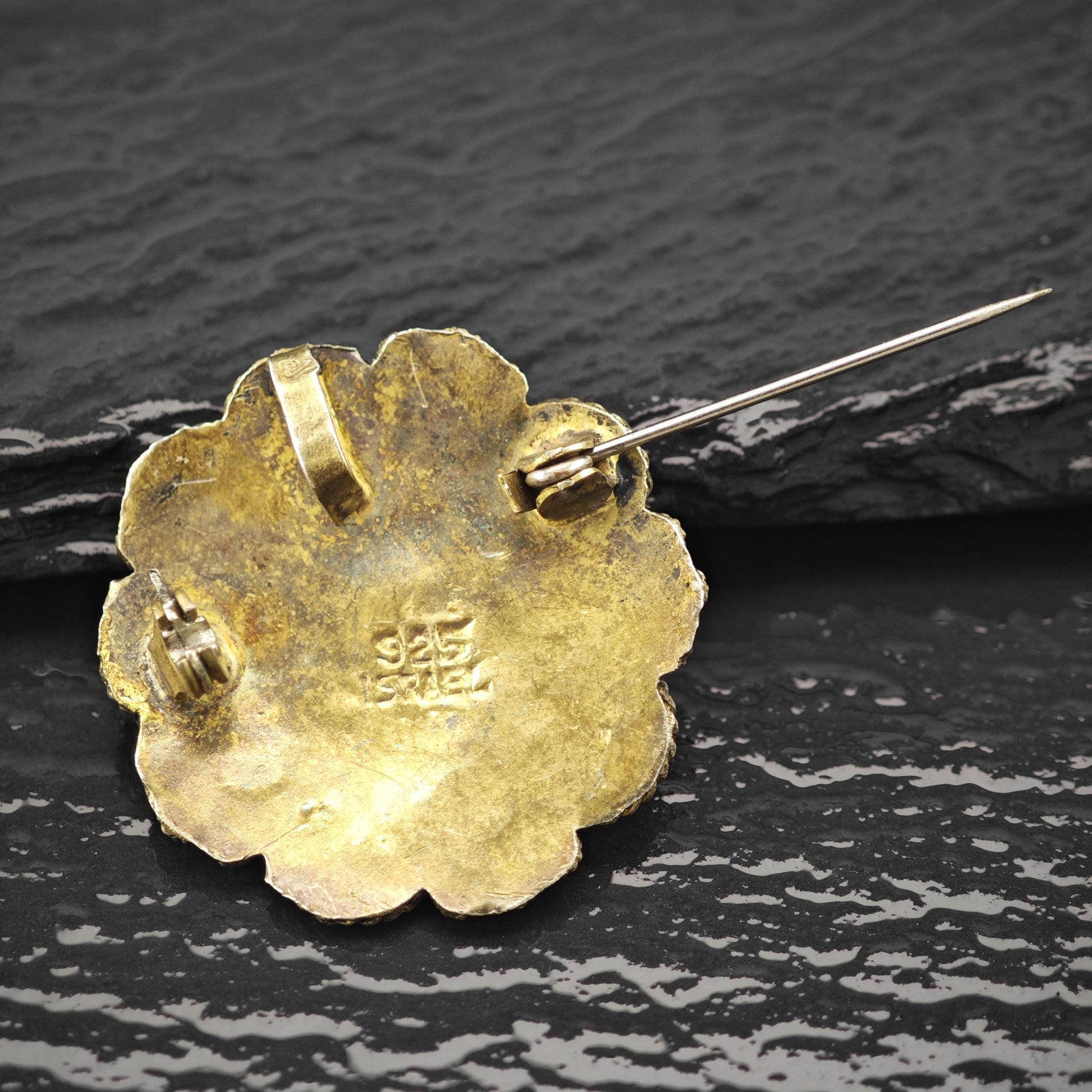 Discover the timeless elegance of this vintage silver brooch/pendant, beautifully crafted with delicate filigree and adorned with a luminous pearl. This sterling brooch/pendant, featuring gold gilded setting, reflects a rich heritage of skilled craftsmanship from Israel. Perfect as a holiday gift or a cherished addition to your vintage jewelry collection, it captures both grace and history.
