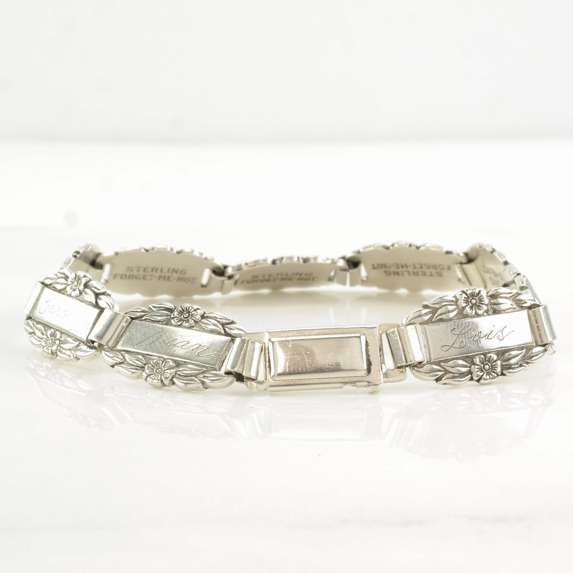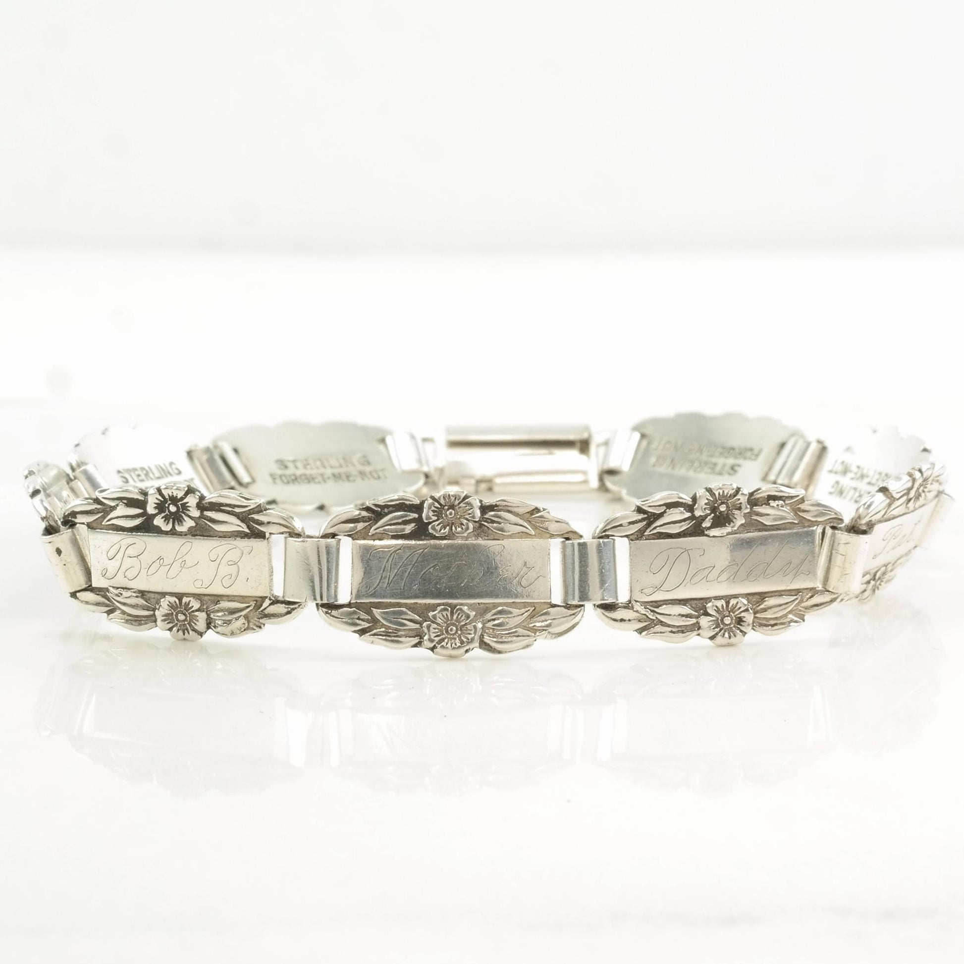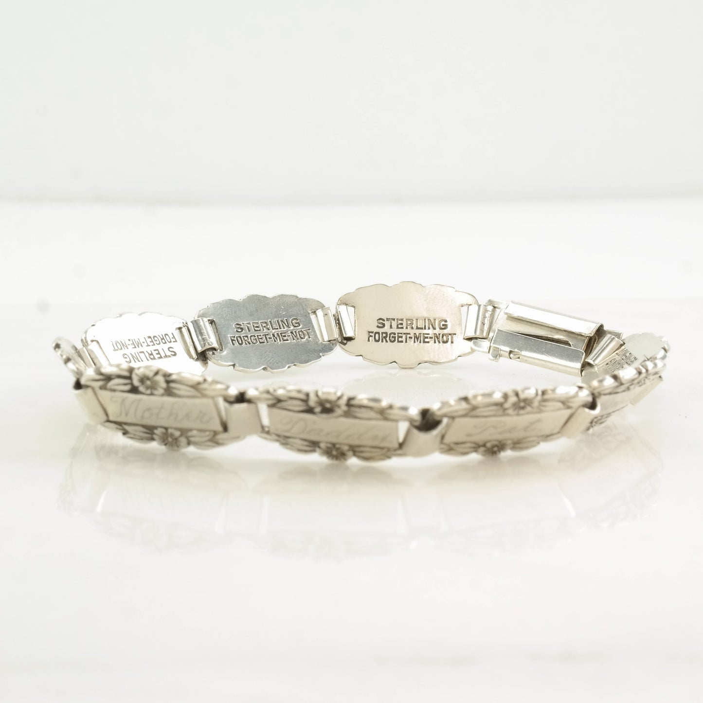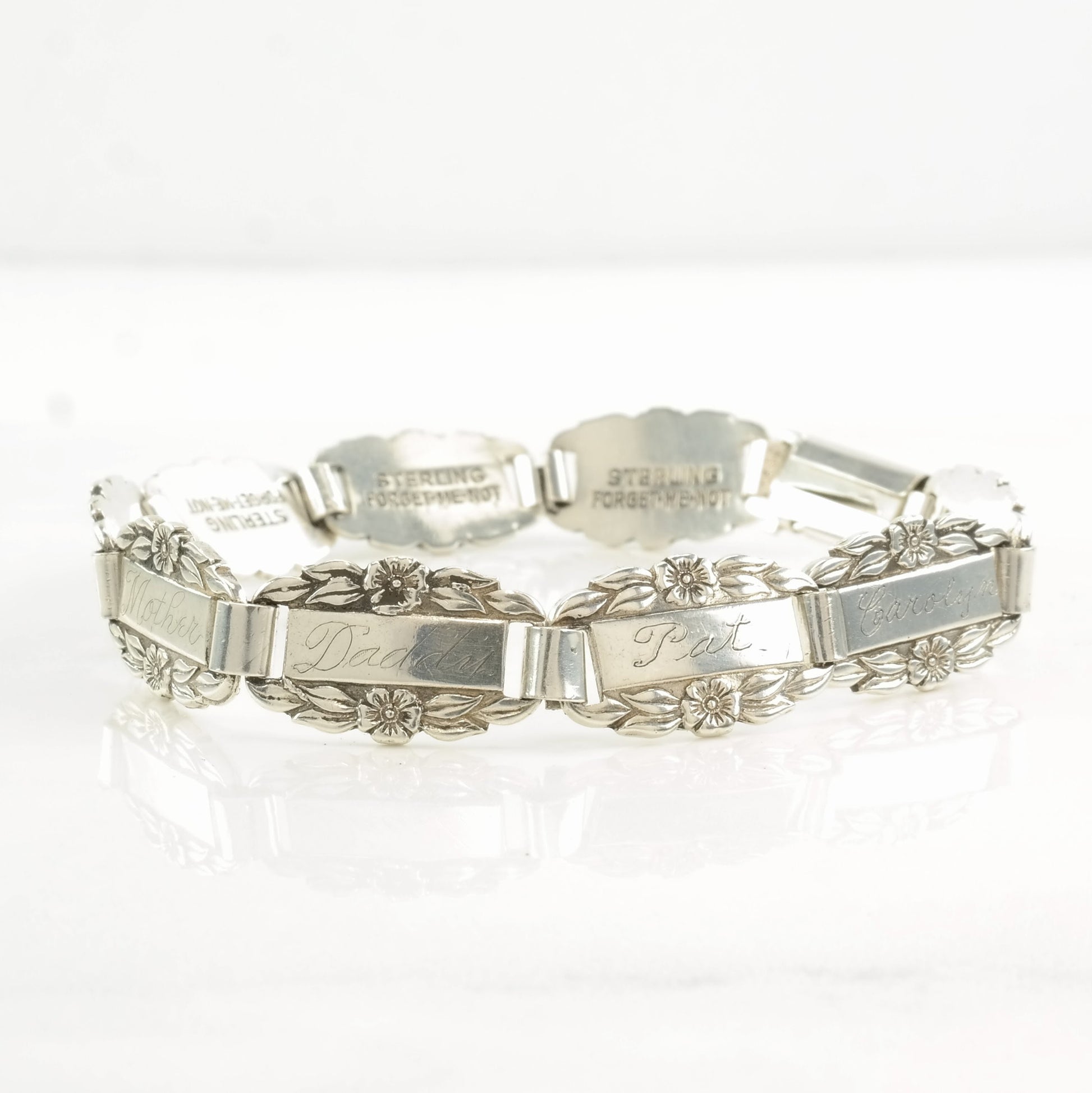Forget Me Not Sterling Silver Link Bracelet Floral Engraved