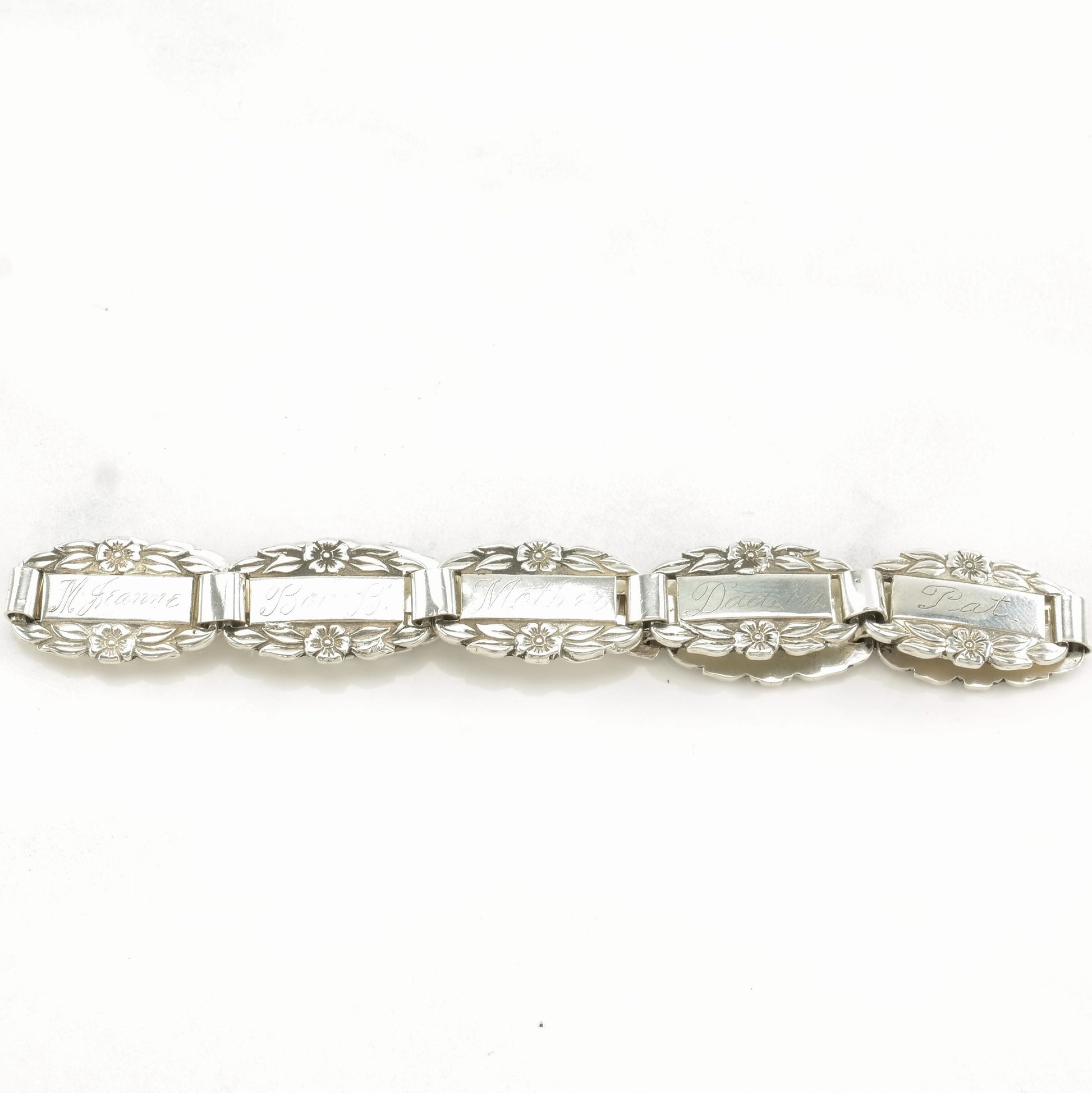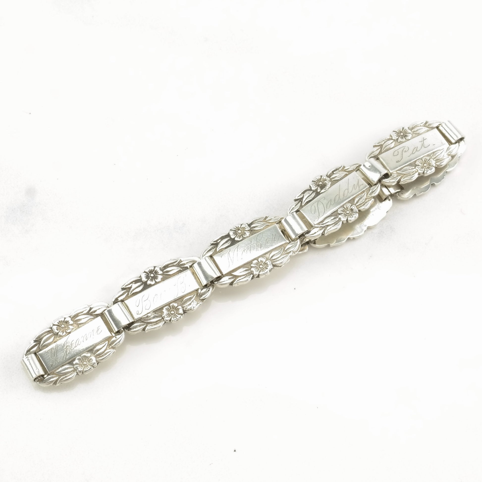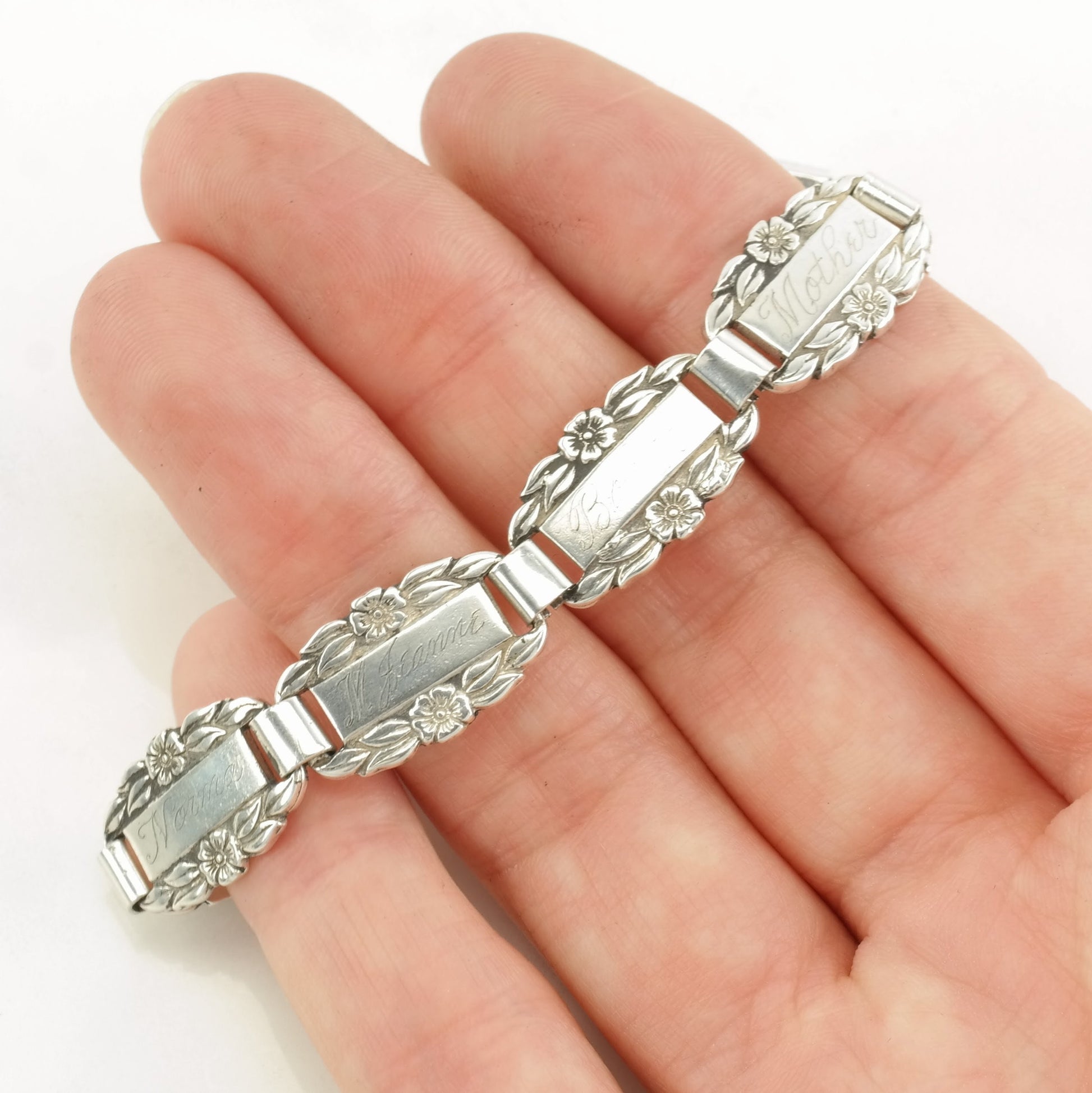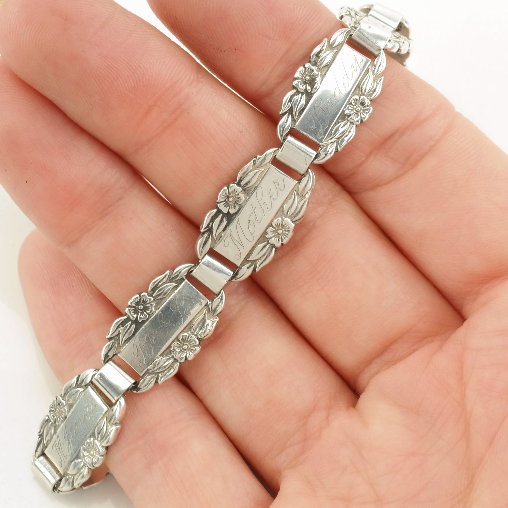 Forget Me Not Sterling Silver Link Bracelet Floral Engraved