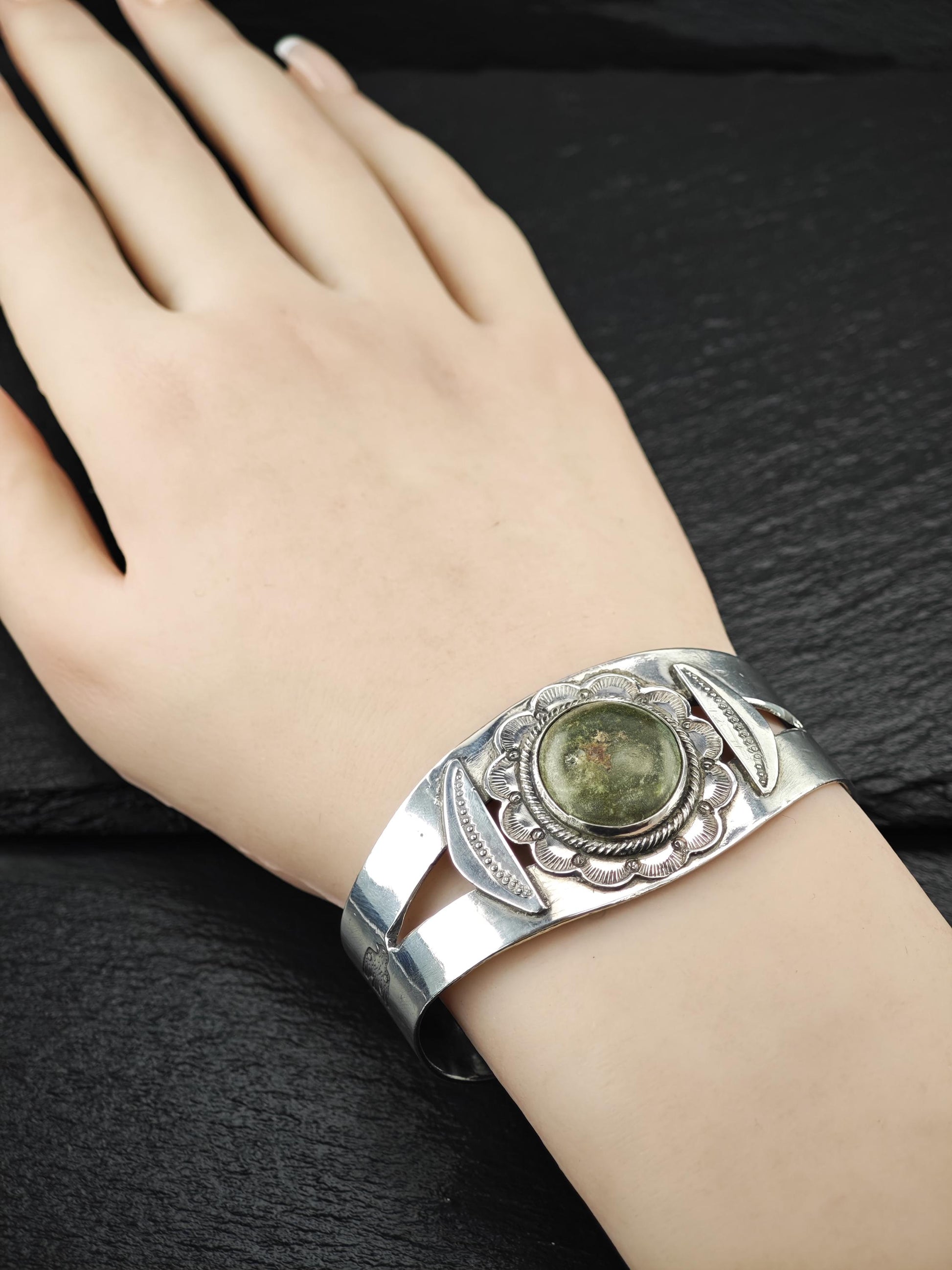 Fred Harvey Era Cerillos, Native American Cuff Bracelet Sterling Silver
