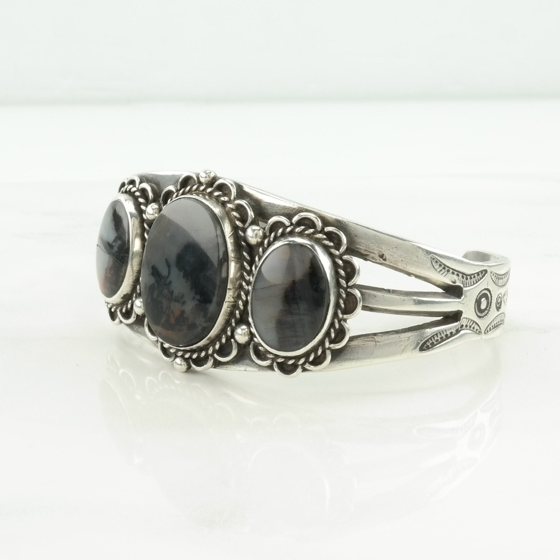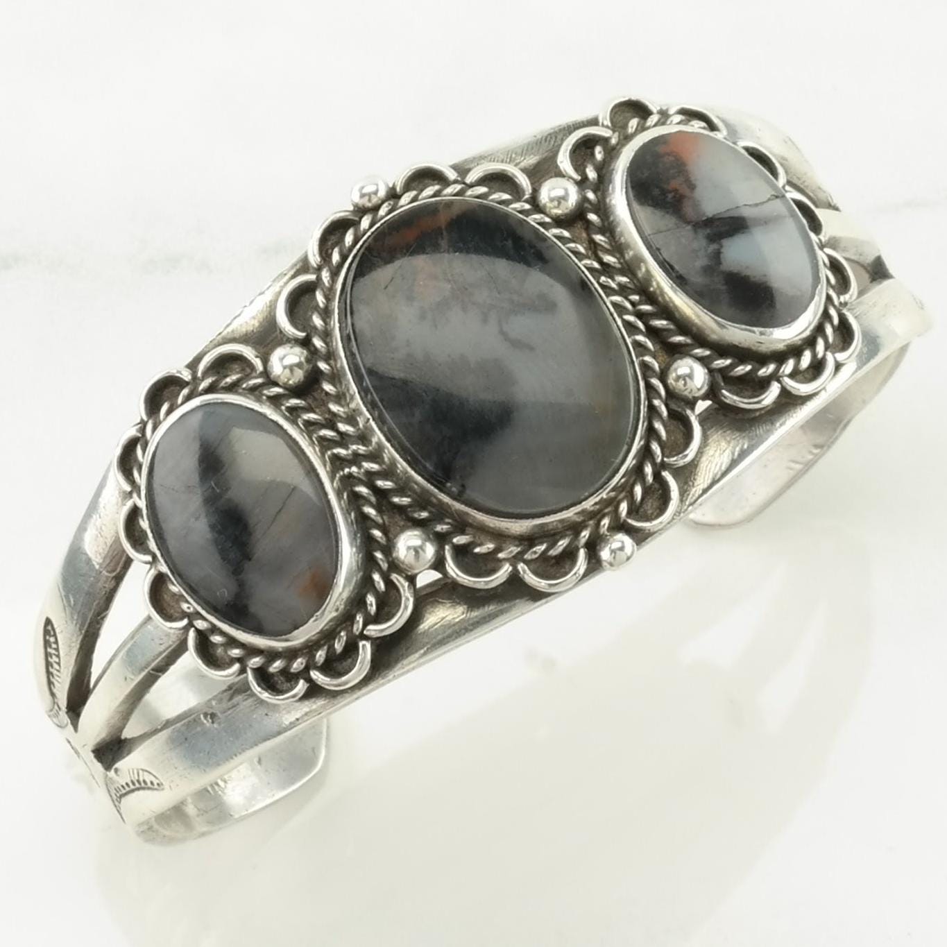 Fred Harvey Era Sterling Silver Cuff Bracelet Petrified Wood Stamped
