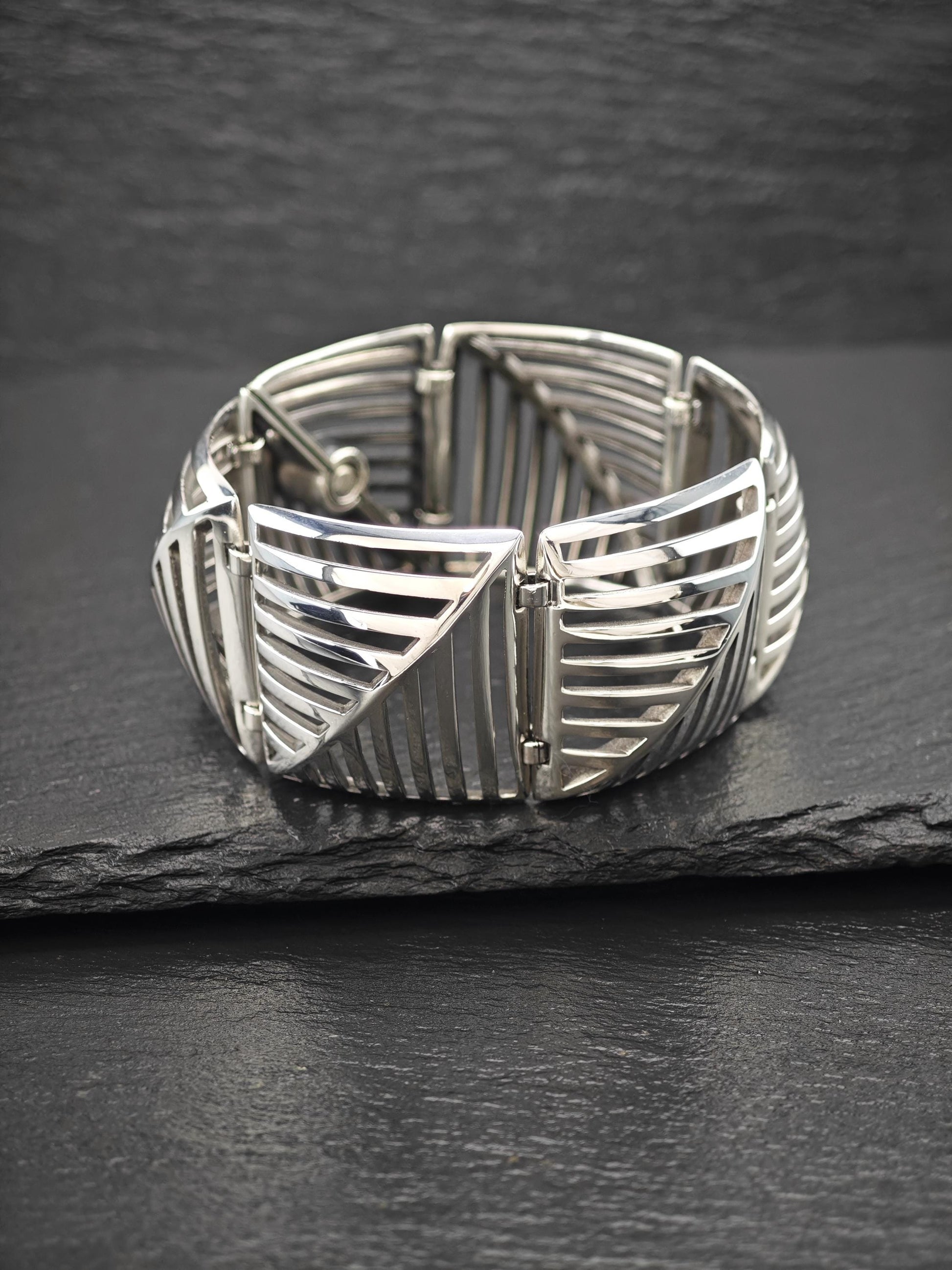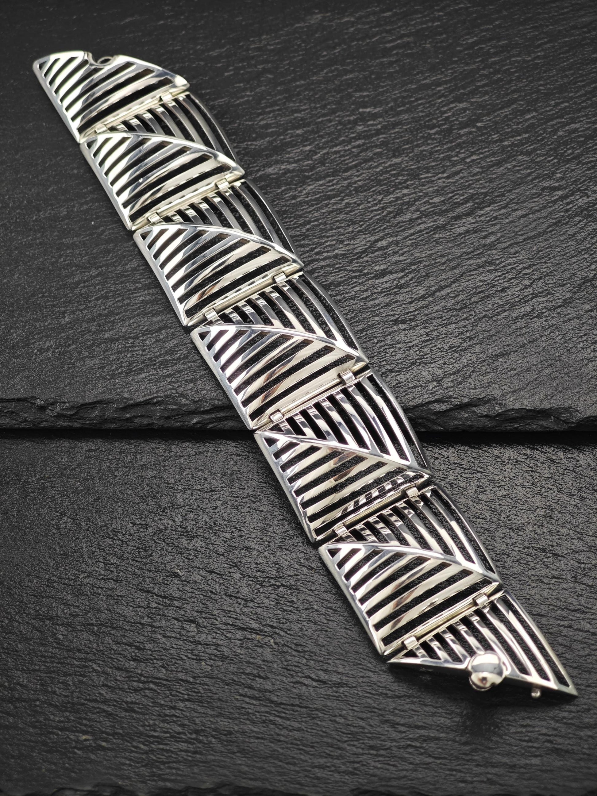 Georg Jensen 389 Grates Abstract Modernist Link Bracelet Sterling Silver