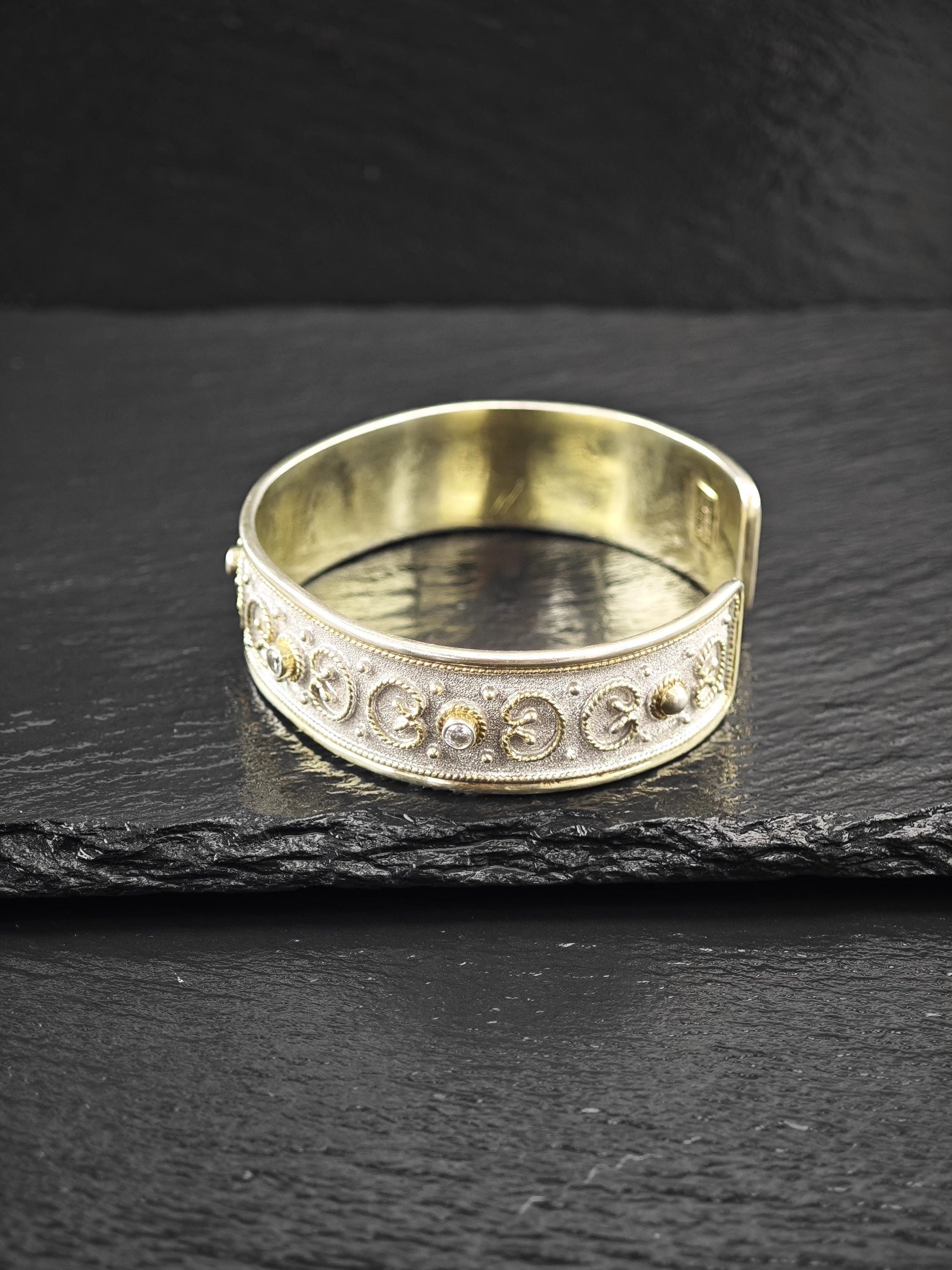 Vintage Greece Gkikas Gold Tone Gilded Cuff Bracelet, Sterling Silver