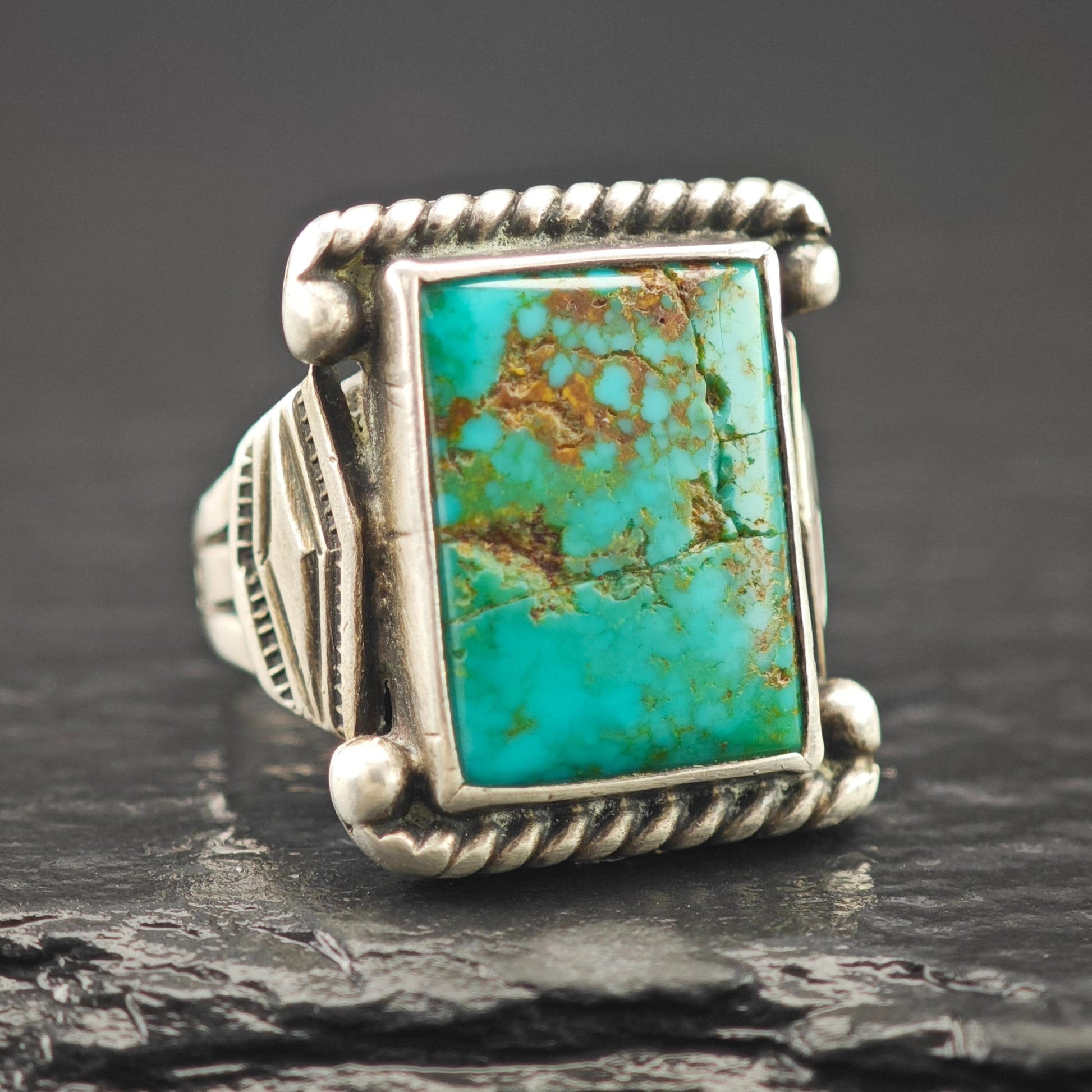 Historic, Native American Green Turquoise Ring Sterling Silver