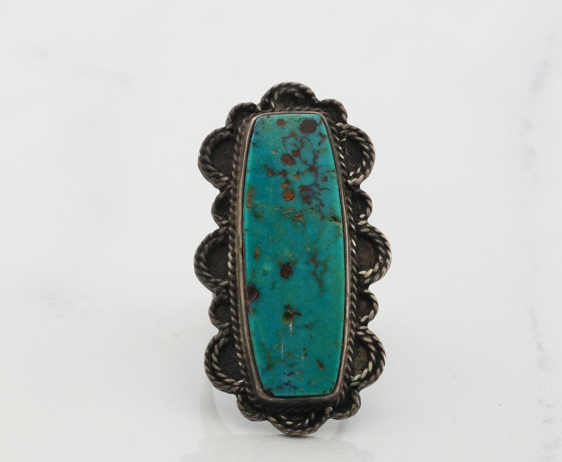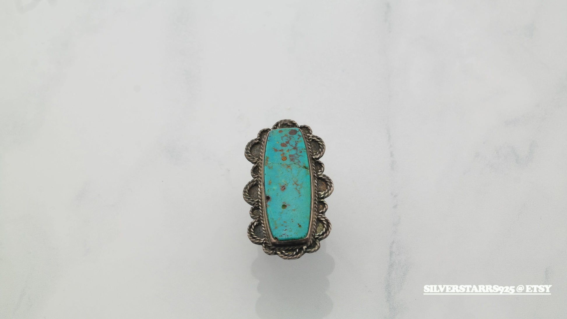 Historic Native American Silver Ring No Treatment Turquoise Sterling Blue Size 6.5
