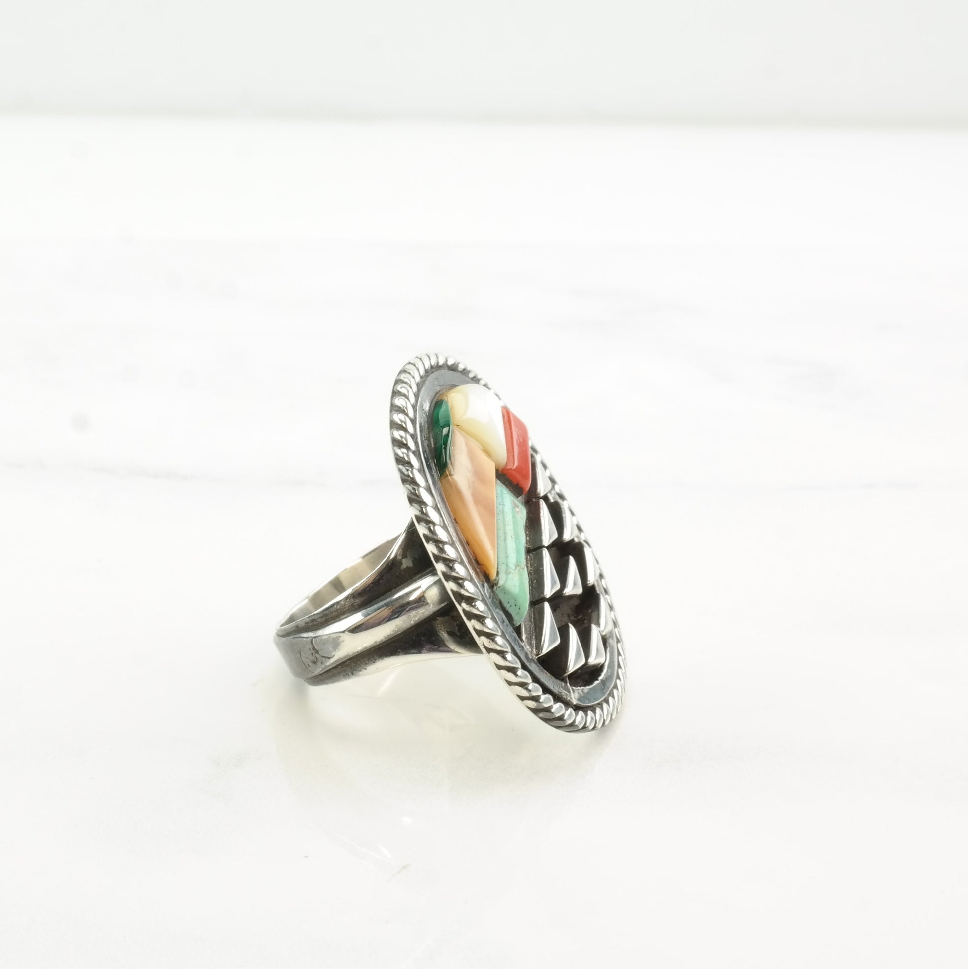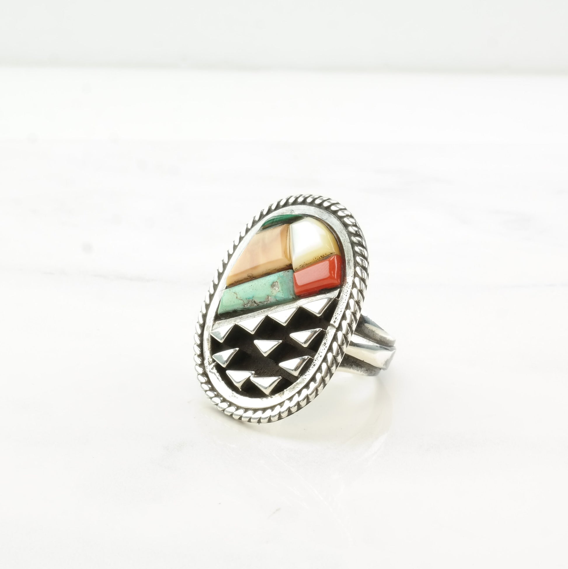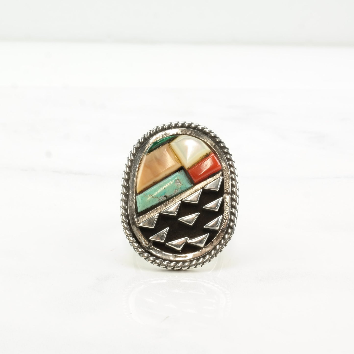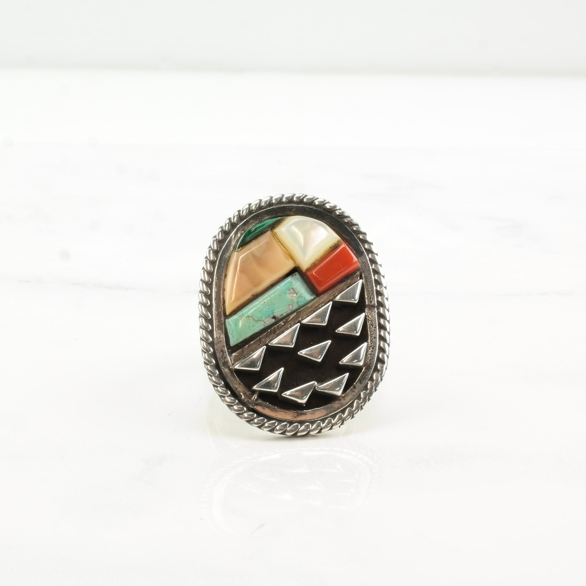 Hopi Sterling Silver Inlay Ring | Lula Bowannie | Vintage Native American Jewelry | Multi-Stone Ring | Size 9 3/4