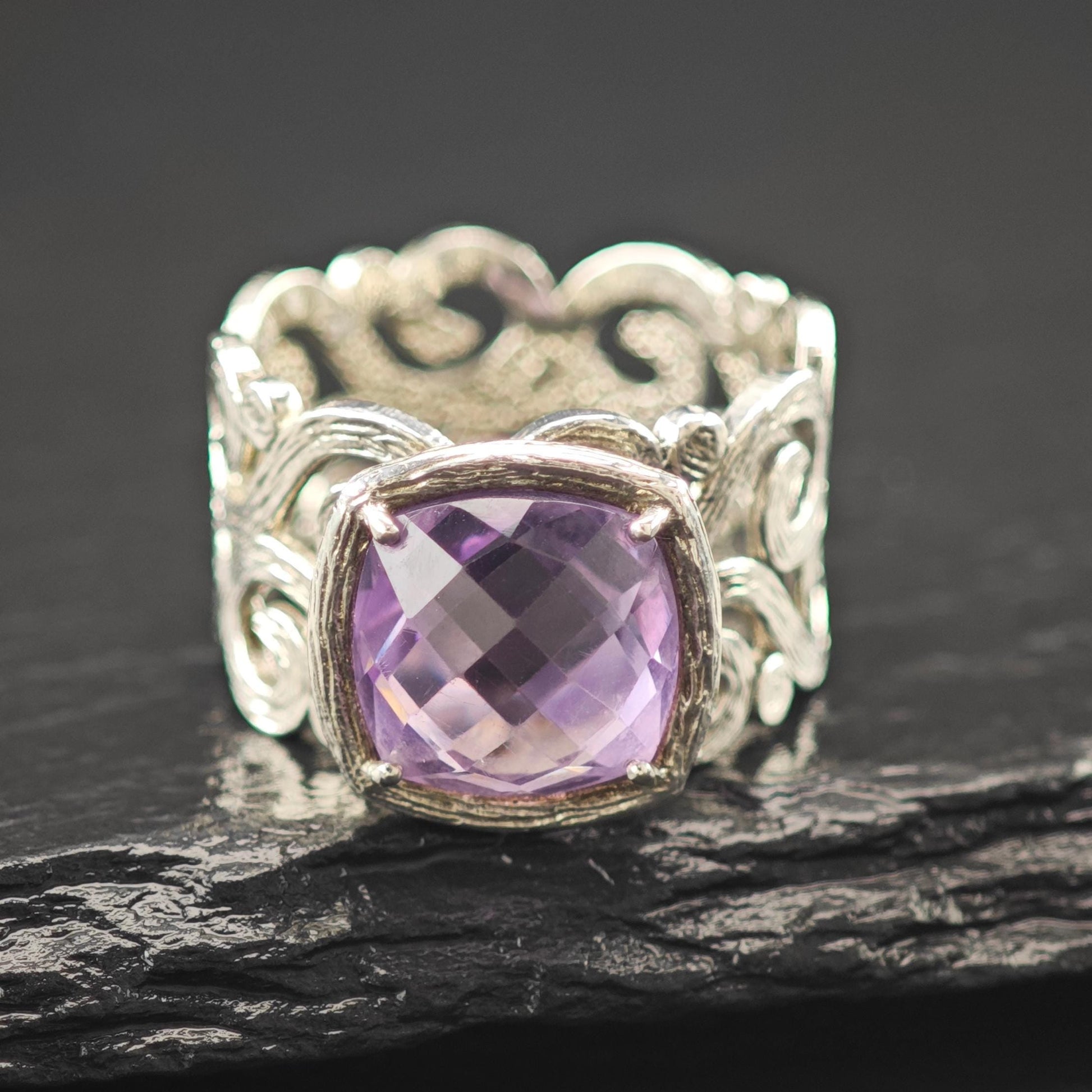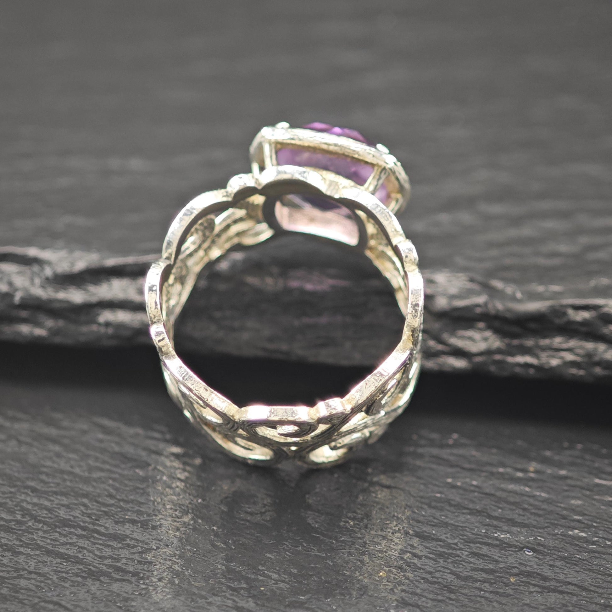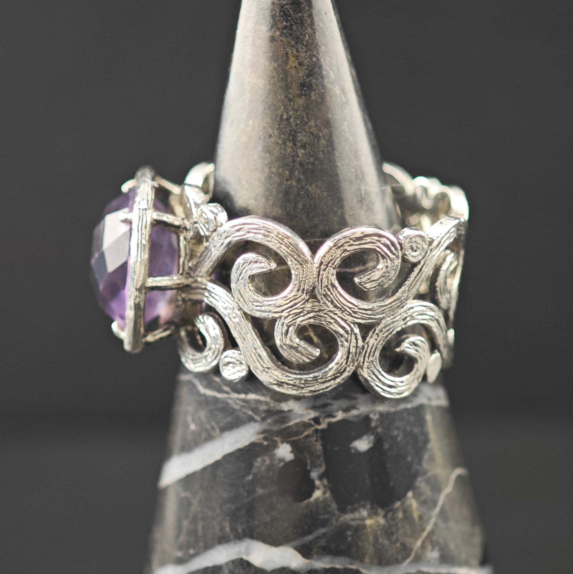 Israel Amethyst Filigree Ring Sterling Silver