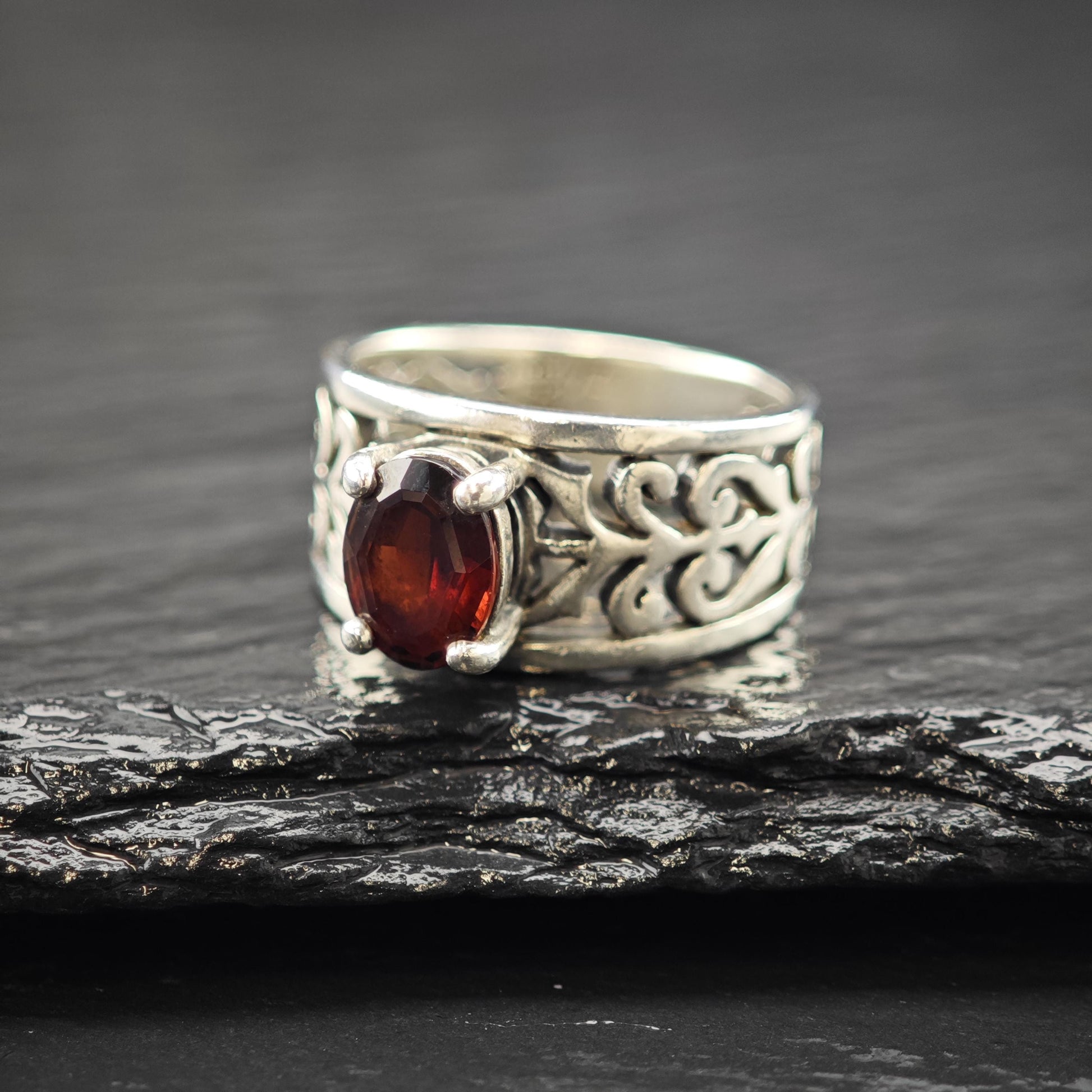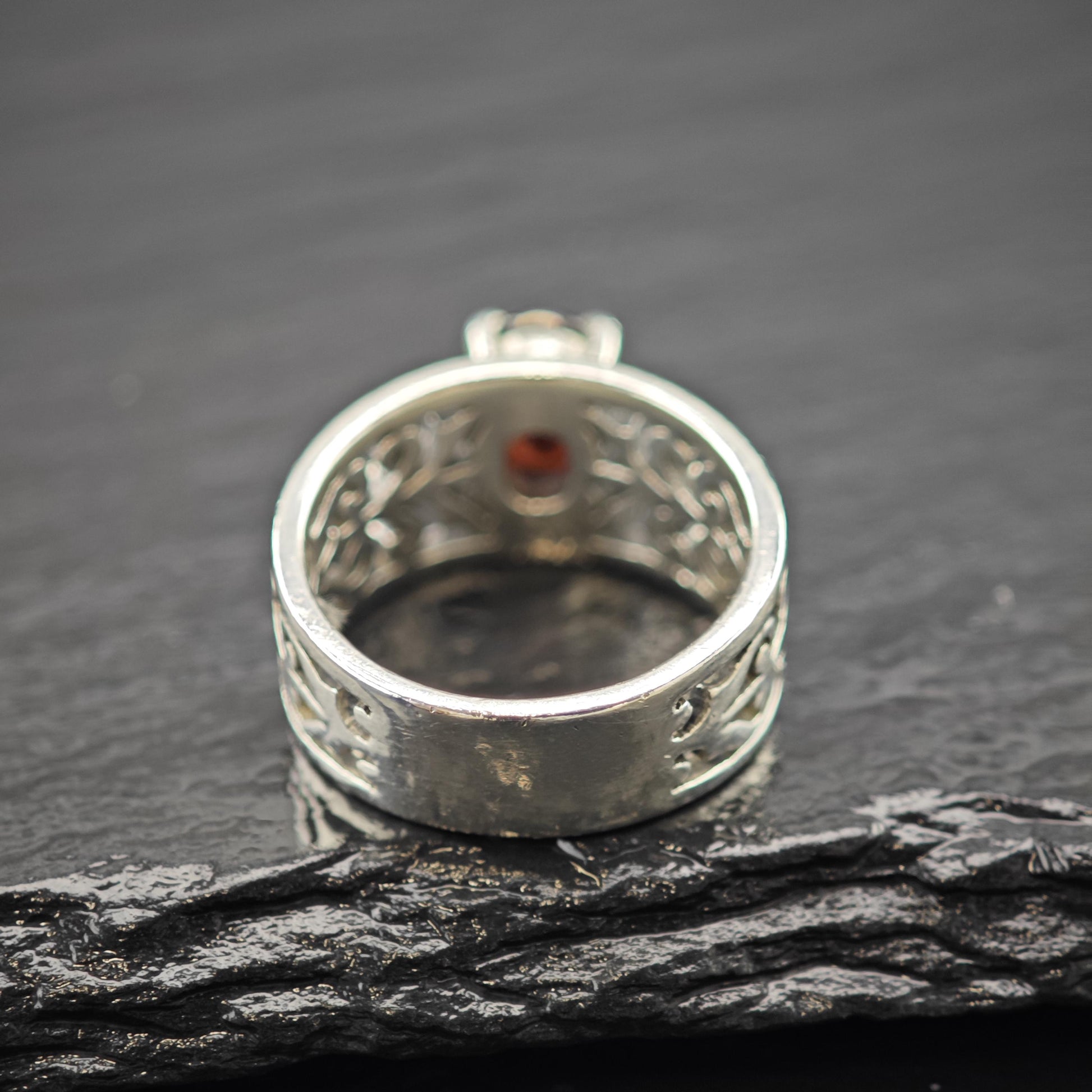 Discover the timeless charm of this vintage sterling silver ring, expertly crafted with intricate filigree and a stunning garnet centerpiece. This silver ring embodies classic elegance, perfect for those who appreciate unique vintage jewelry with a story. Whether searching for a thoughtful holiday gift or a distinctive addition to your collection, this piece offers both beauty and heritage.