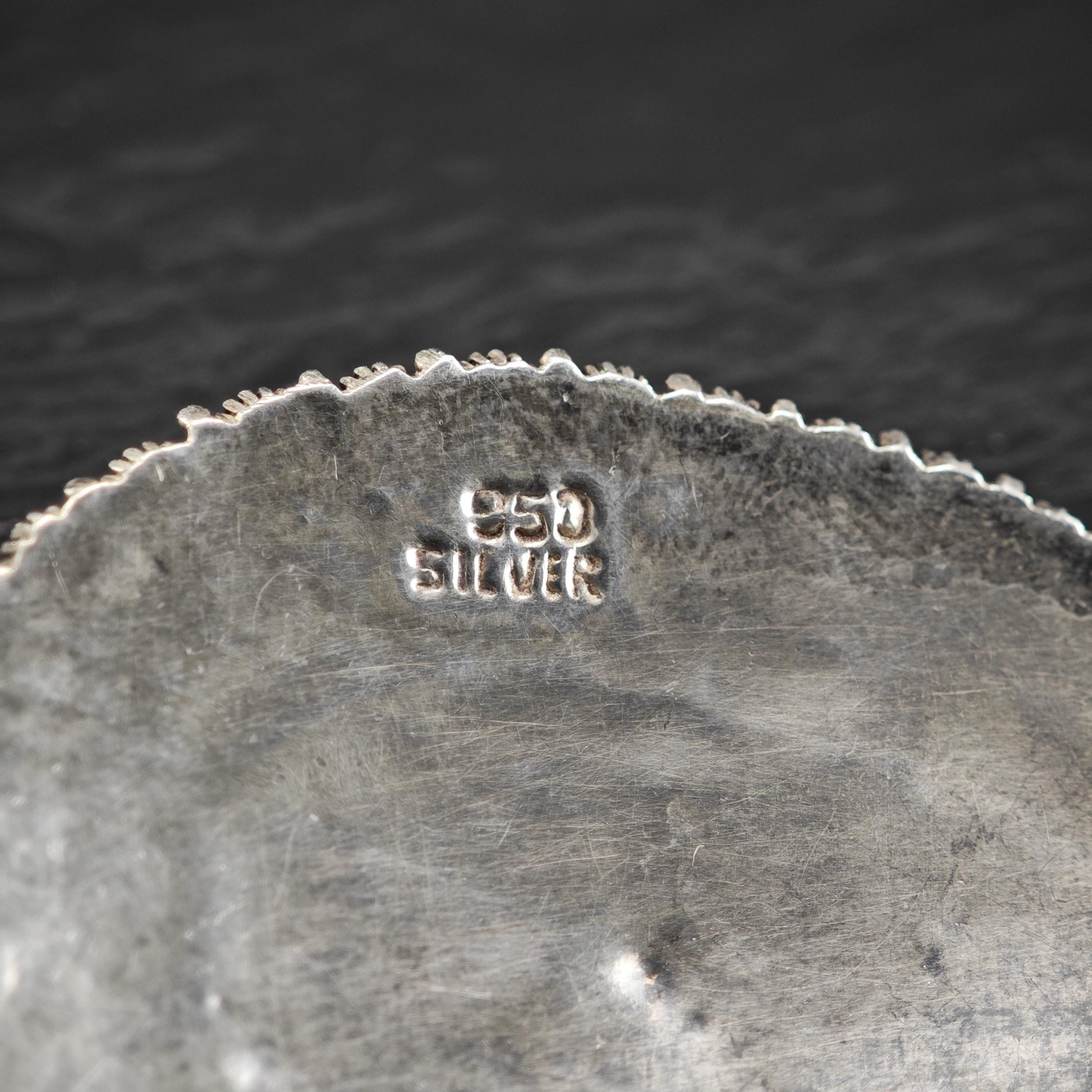 Measuring 1 7/8 inches in length and 1 1/2 inches in width, this brooch weighs 14.1 grams, making it a lightweight yet eye-catching accessory. The piece is marked with "950 Silver," ensuring that it has been tested and guaranteed to be genuine sterling silver.
