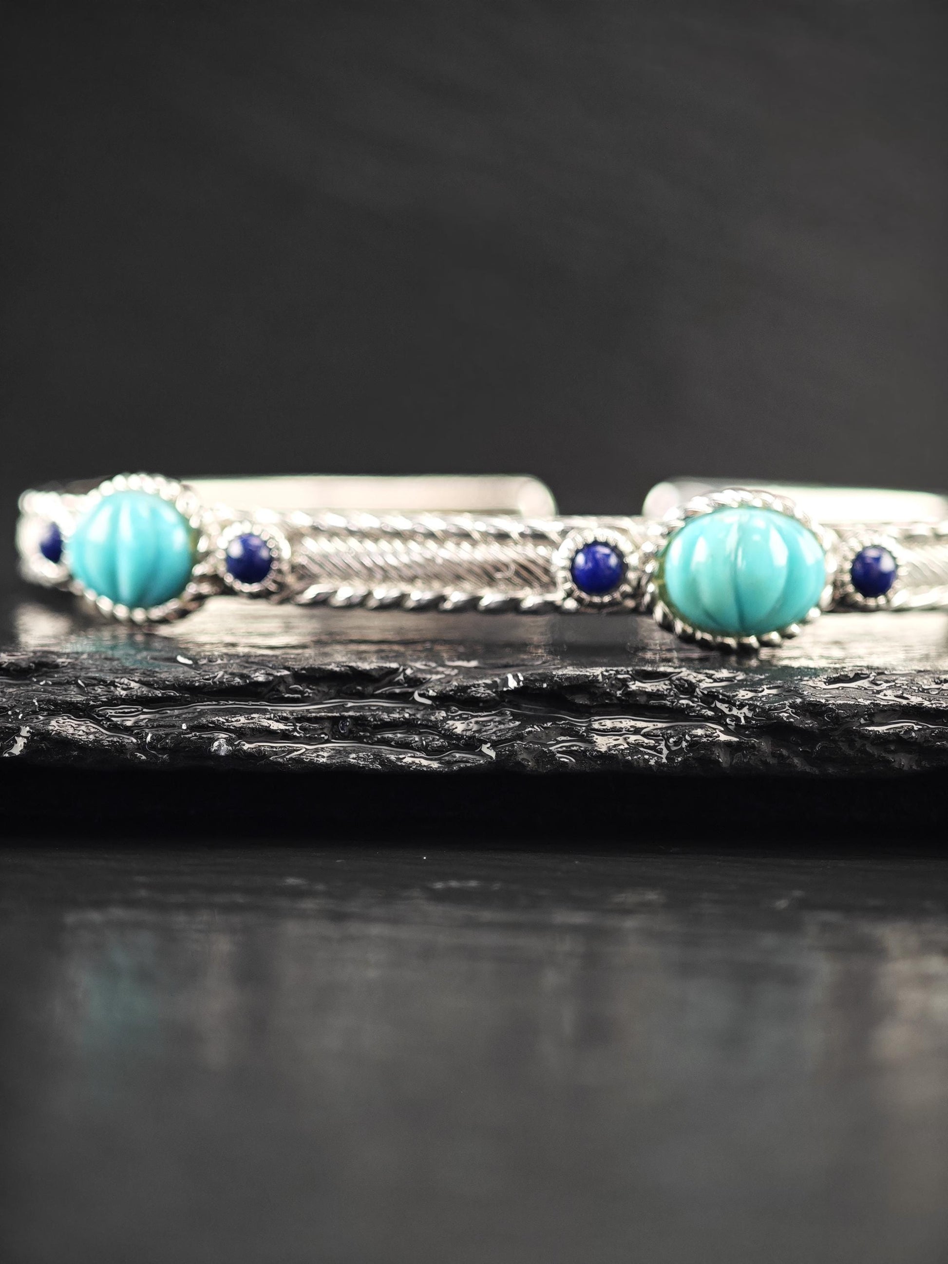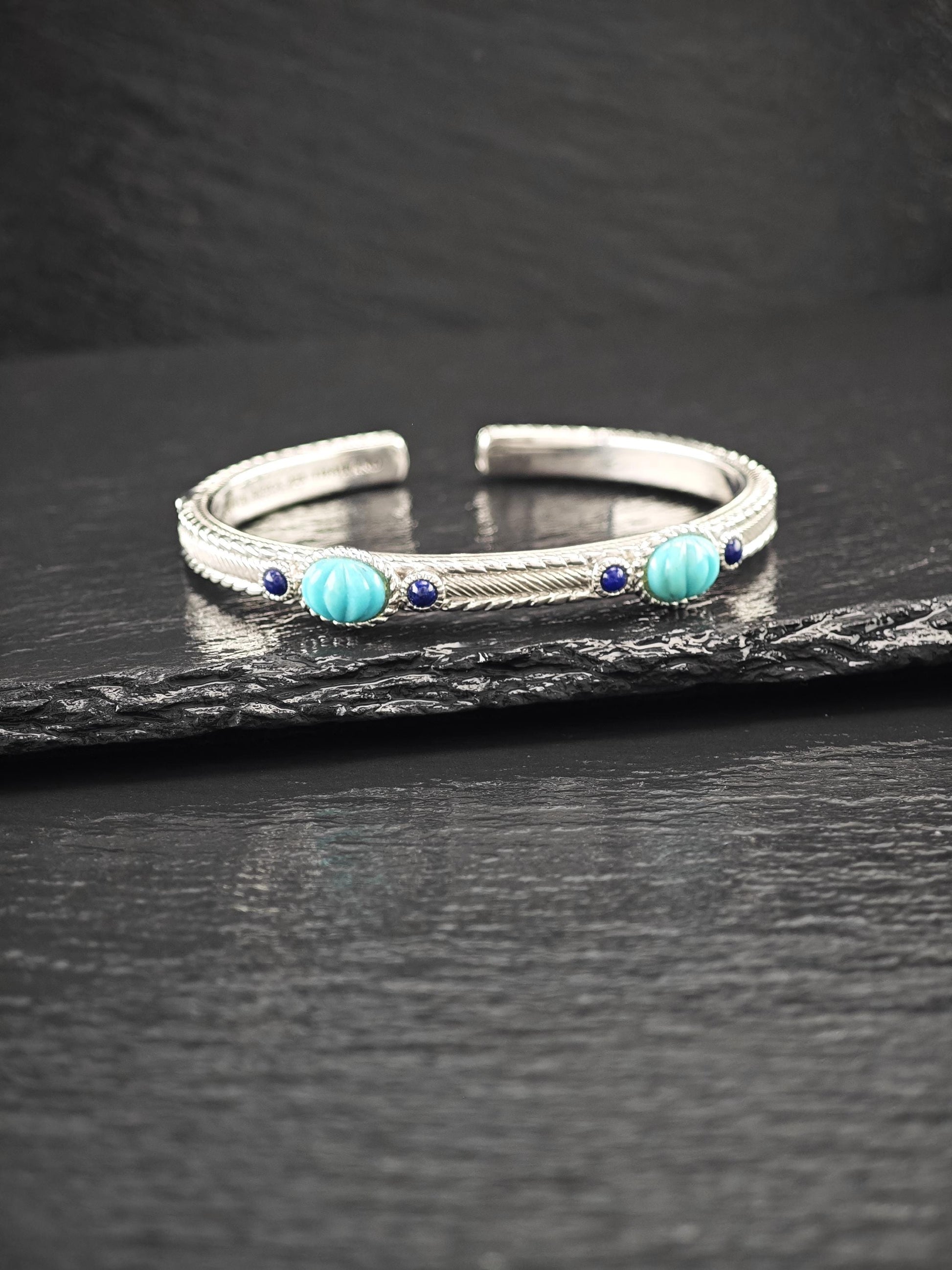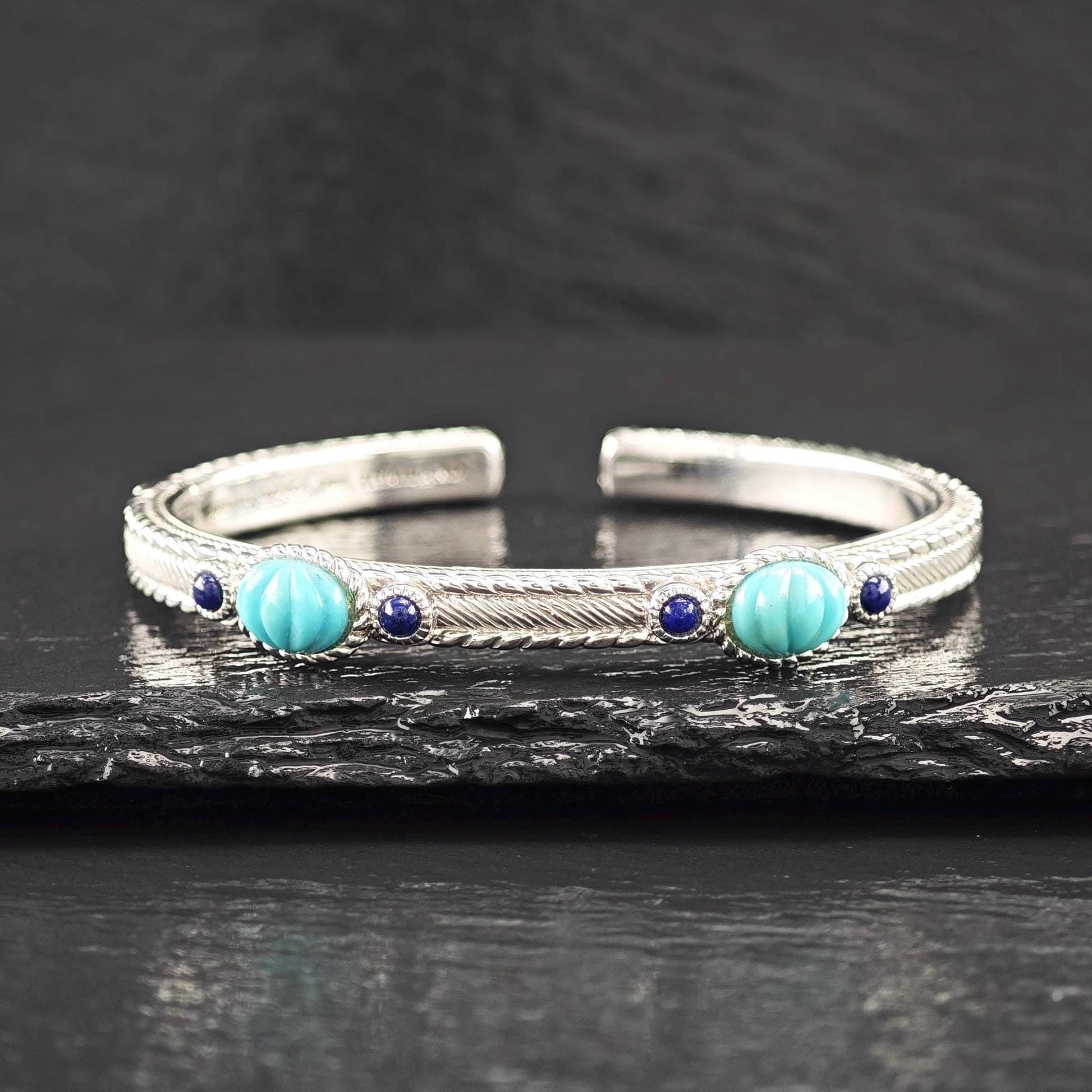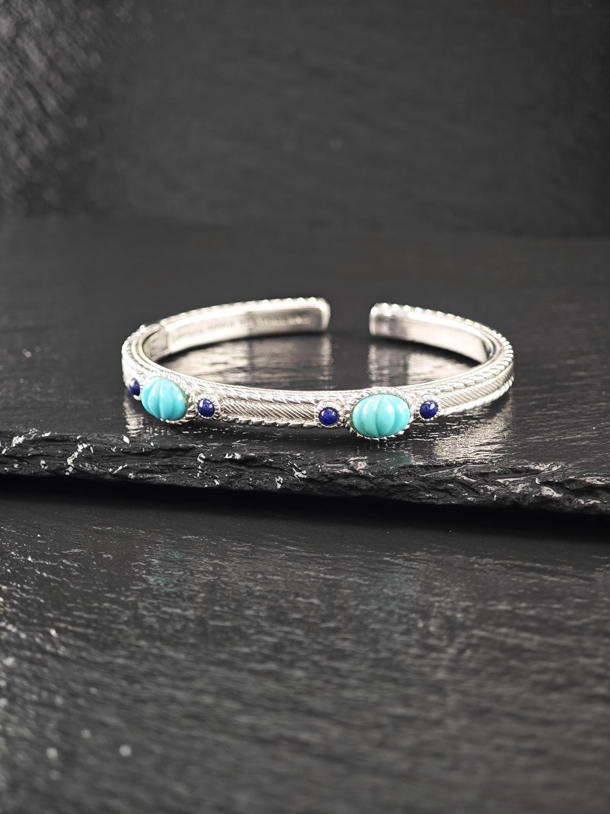Vintage Judith Ripka, Turquoise, Lapis Bracelet Sterling Silver