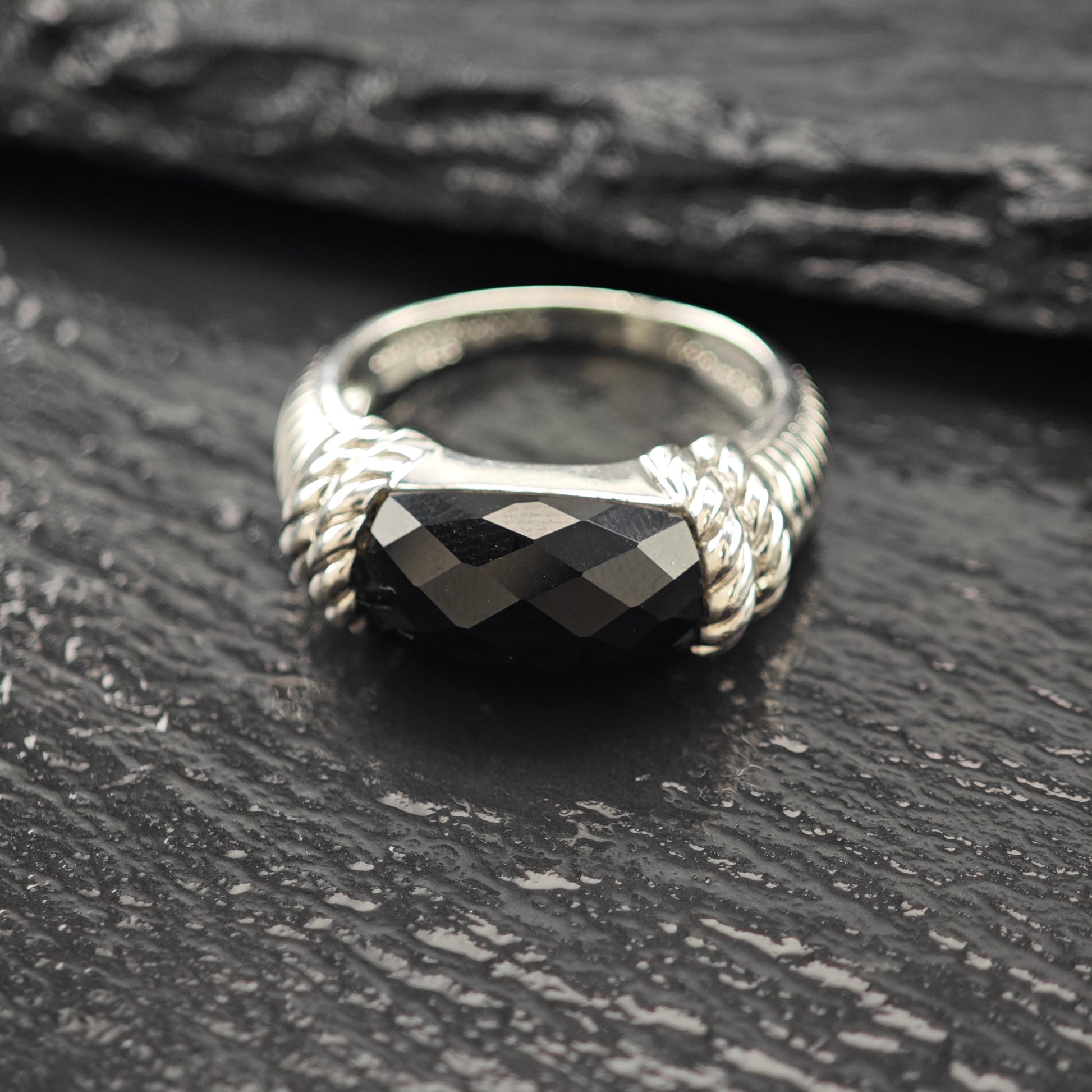 Discover the timeless elegance of this Judith Ripka faceted black onyx ring, a stunning vintage jewelry piece crafted from sterling silver. This exquisite silver ring captures the essence of classic sophistication, perfect for those who appreciate unique sterling silver rings with a story. Whether you're searching for a vintage ring to elevate your collection or a thoughtful holiday gift, this beautifully polished ring offers lasting charm and quality.