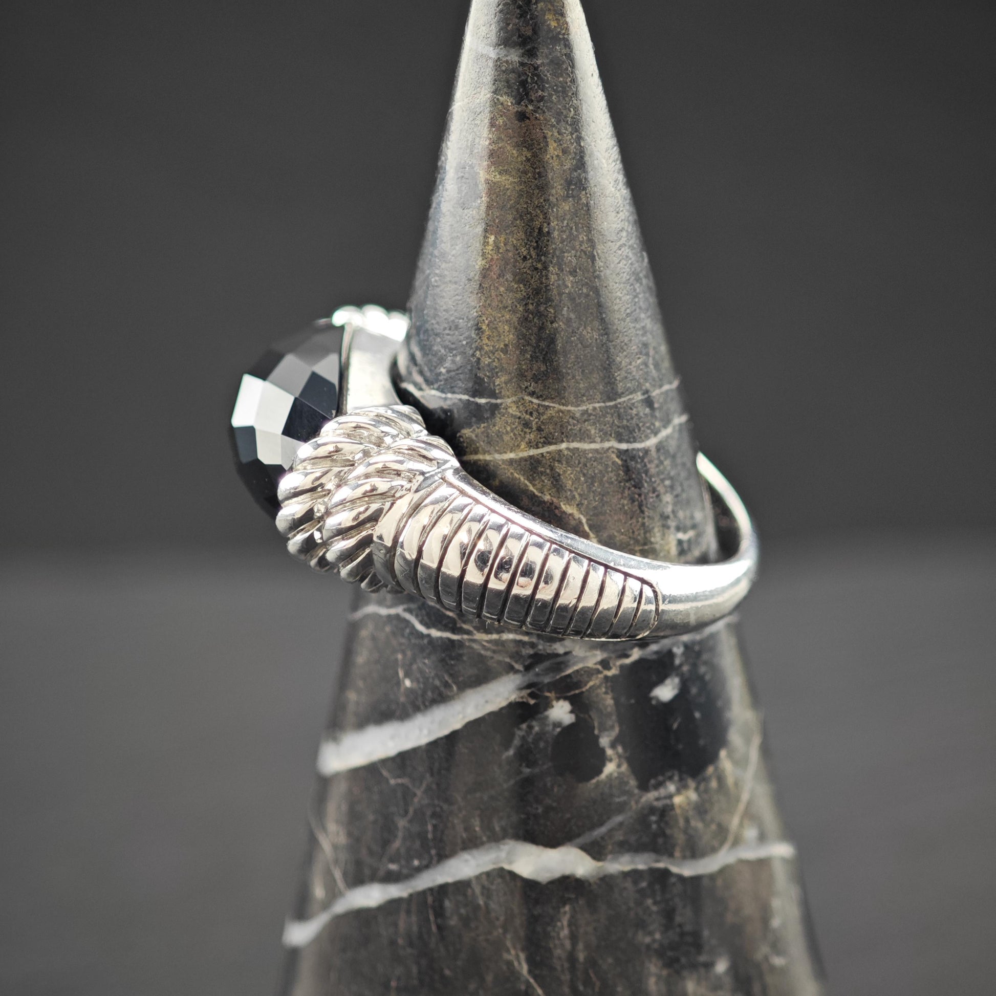 Judith Ripka Faceted Black Onyx Ring Sterling Silver Sz 9