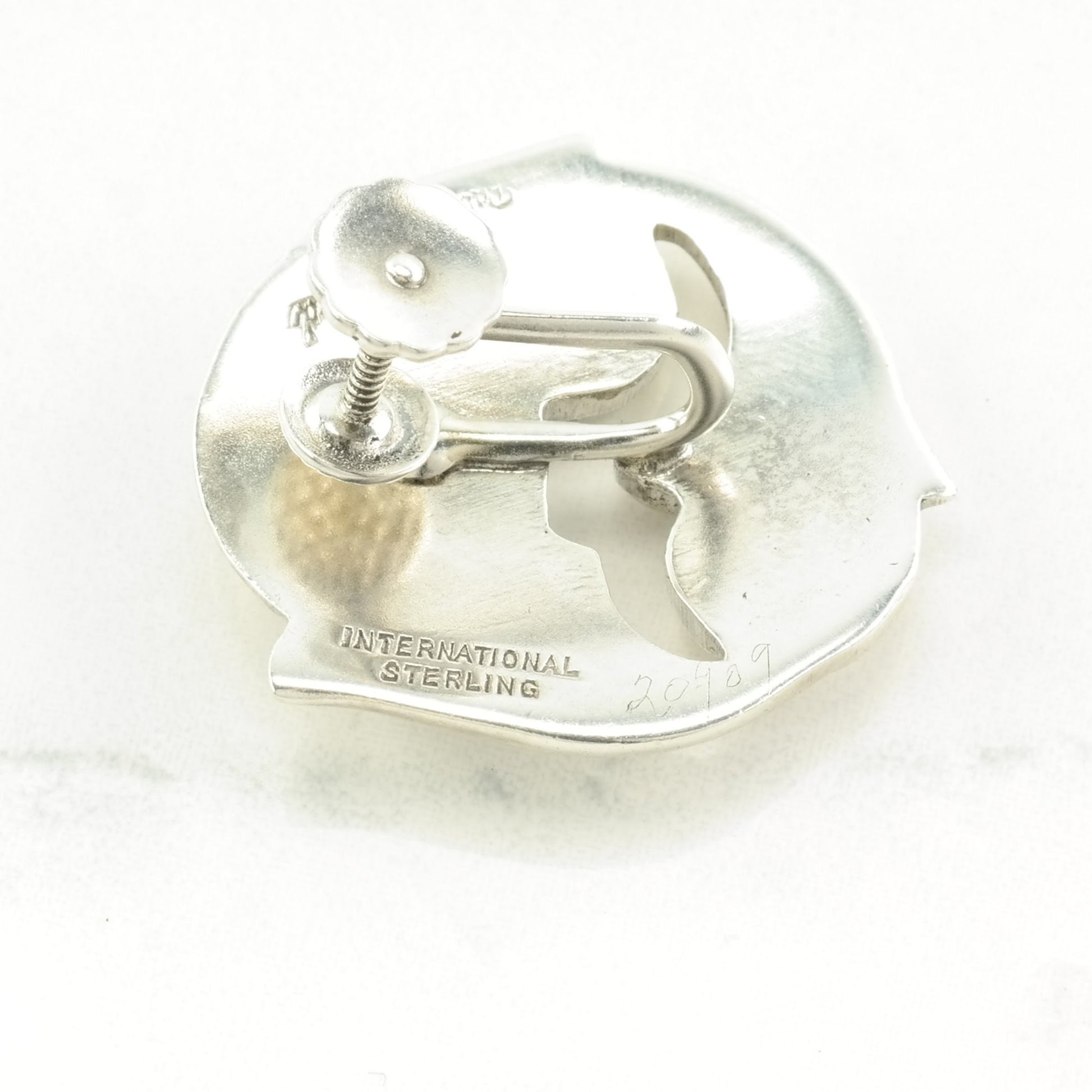 These vintage sterling silver earrings are 1" inches long, and 15/16" inch wide