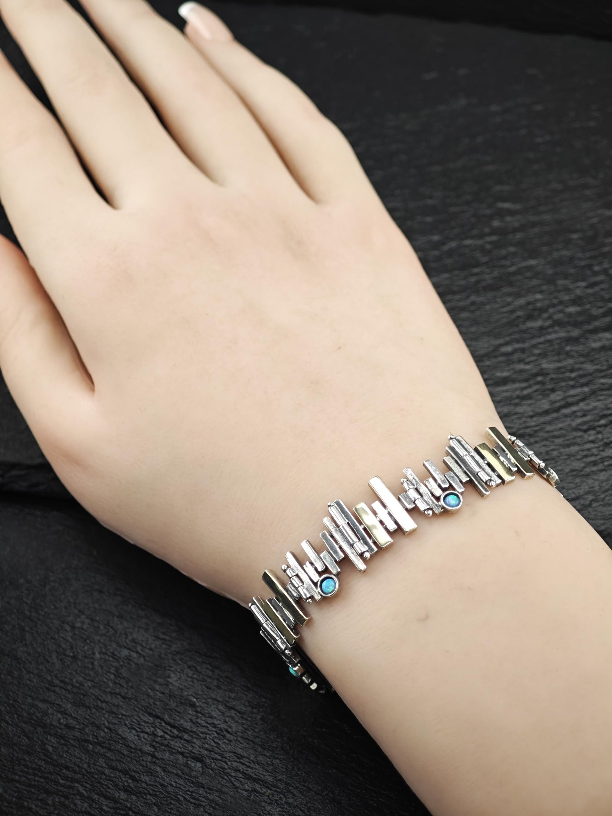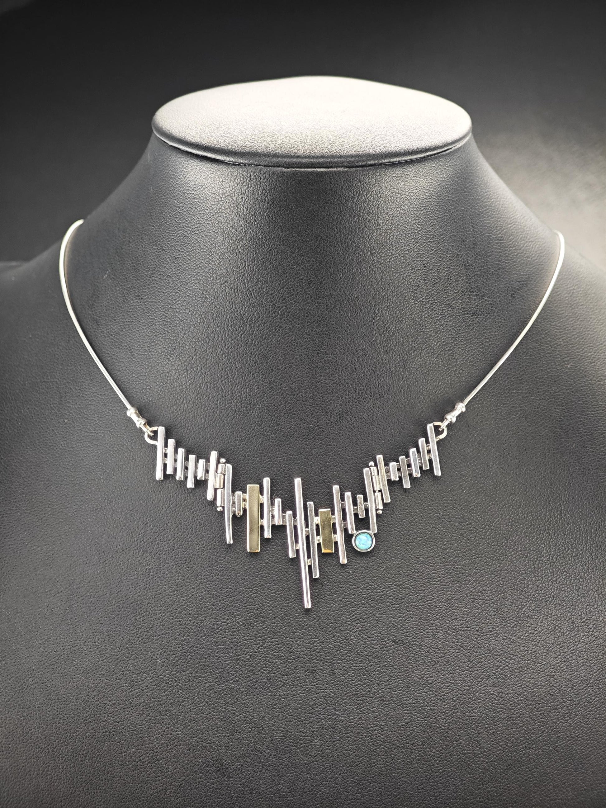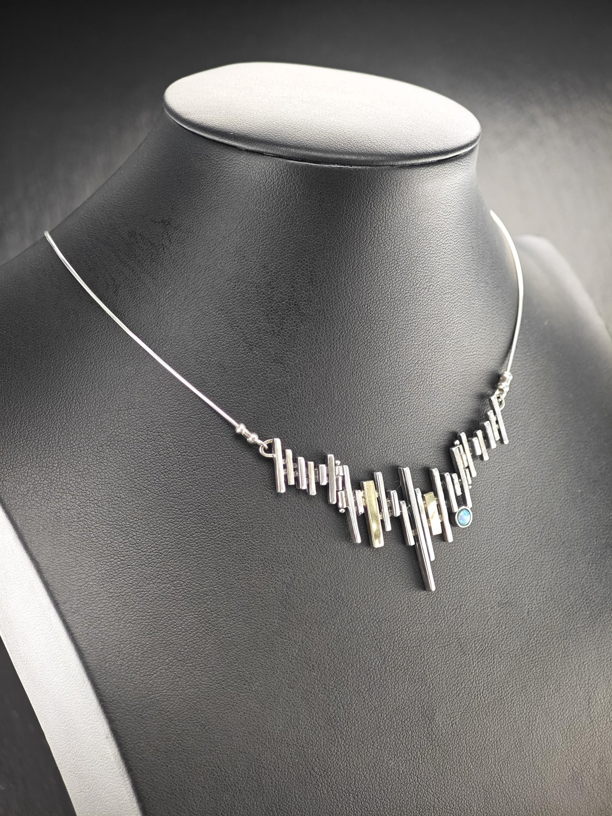 Vintage Sterling Silver Rainbow Blue Lab Opal Abstract, Necklace and Bracelet Set