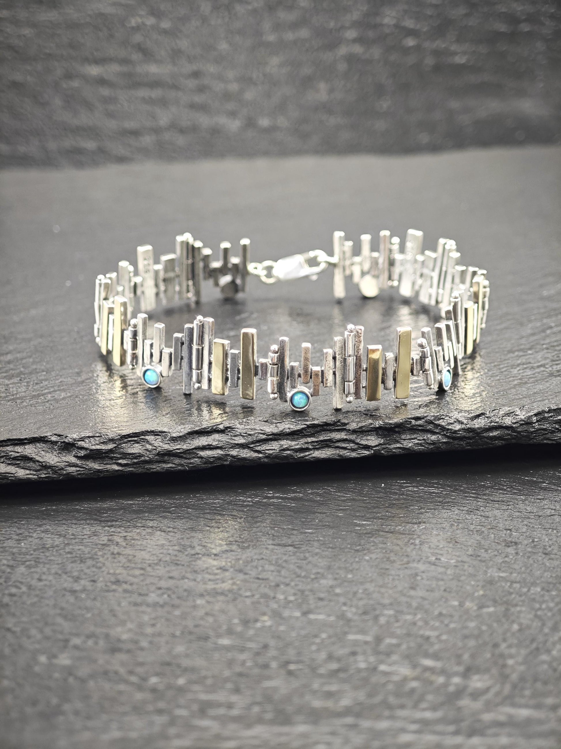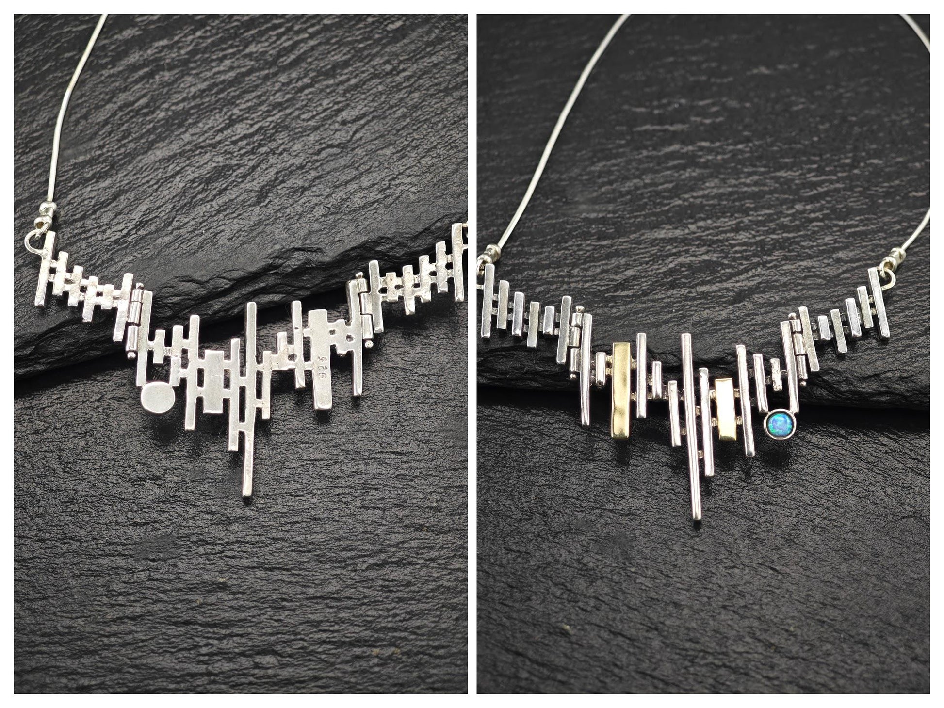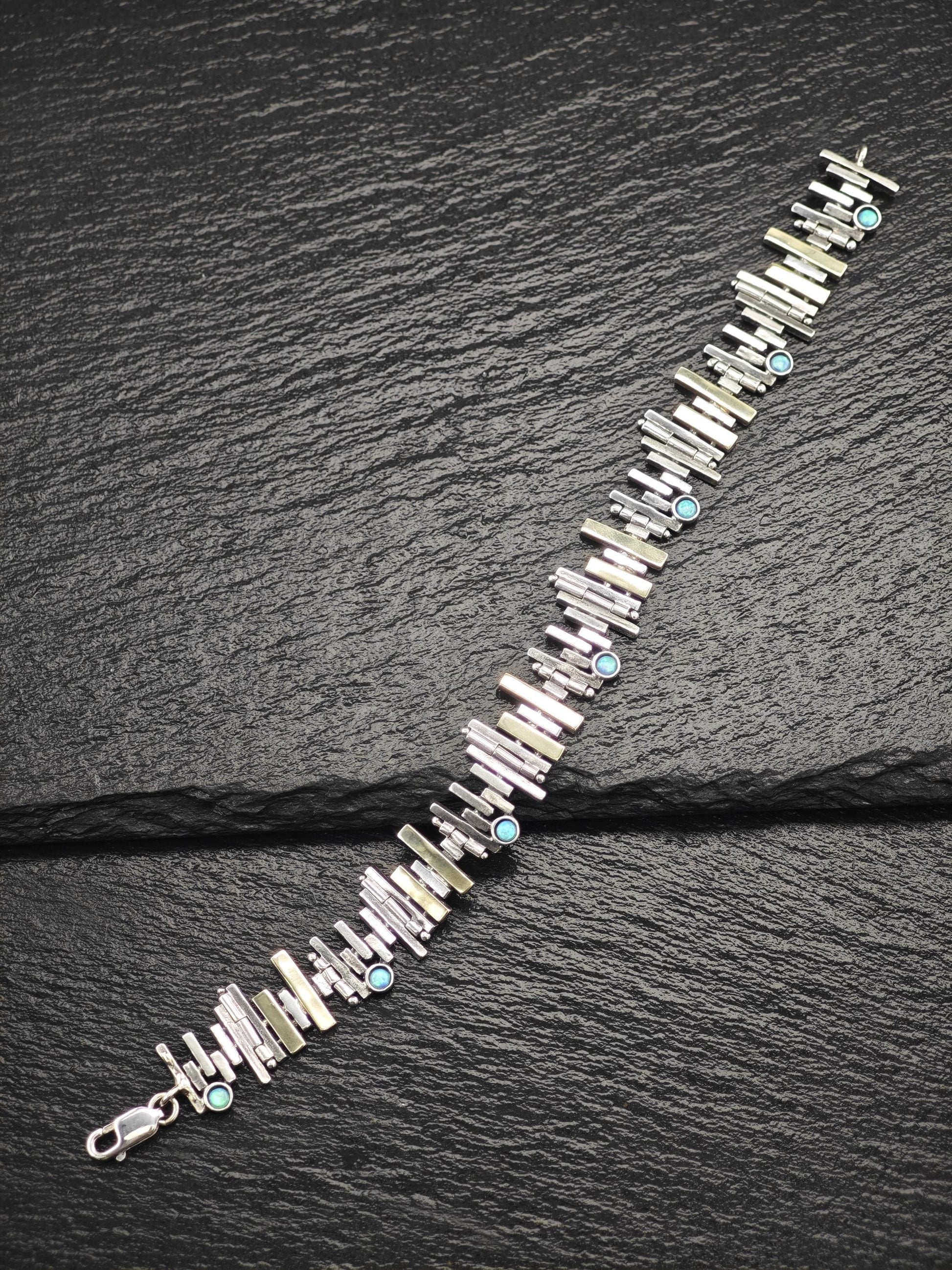 Vintage Sterling Silver Rainbow Blue Lab Opal Abstract, Necklace and Bracelet Set