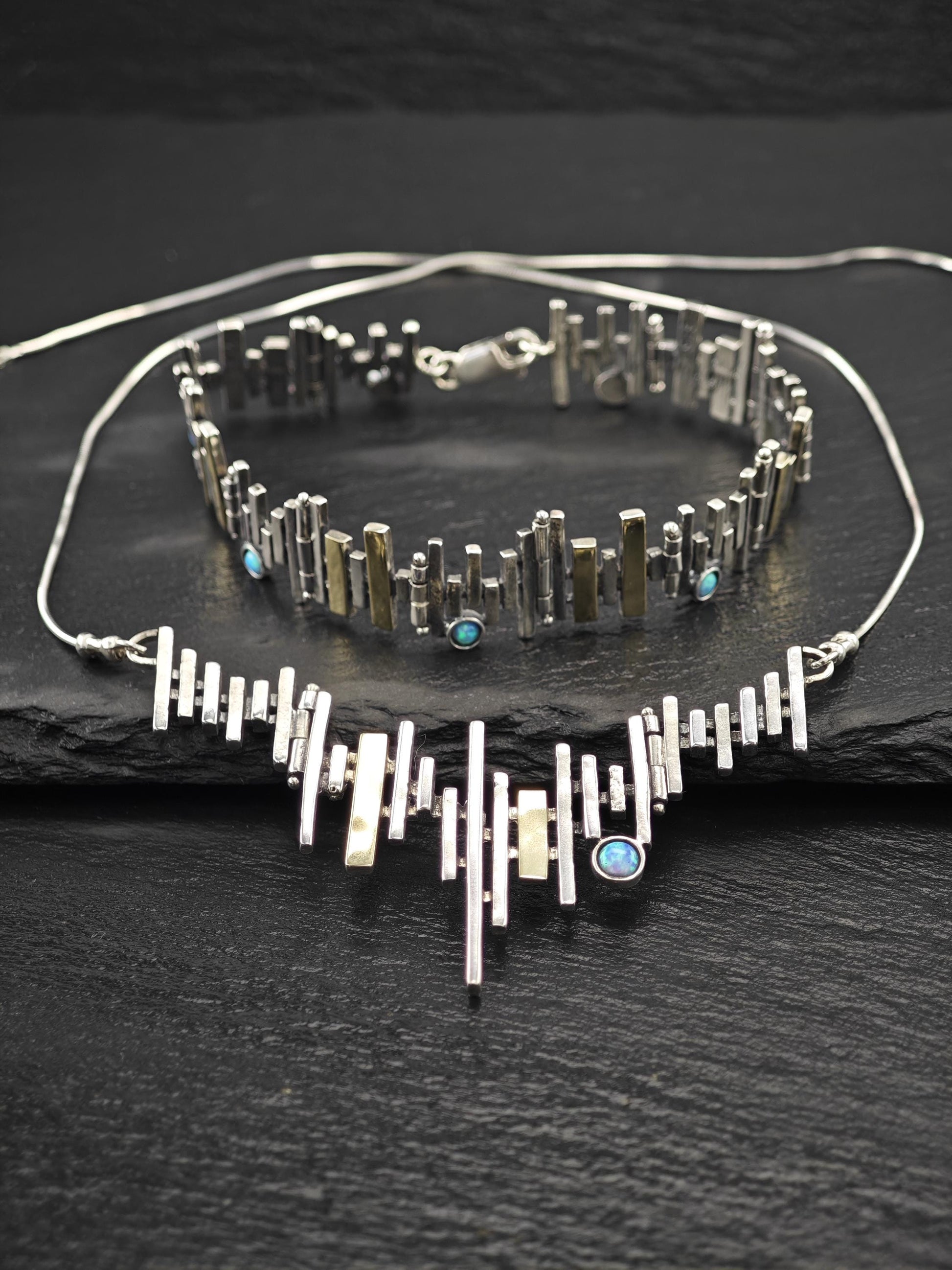 Lab Opal Abstract, Necklace and Bracelet Set Sterling Silver