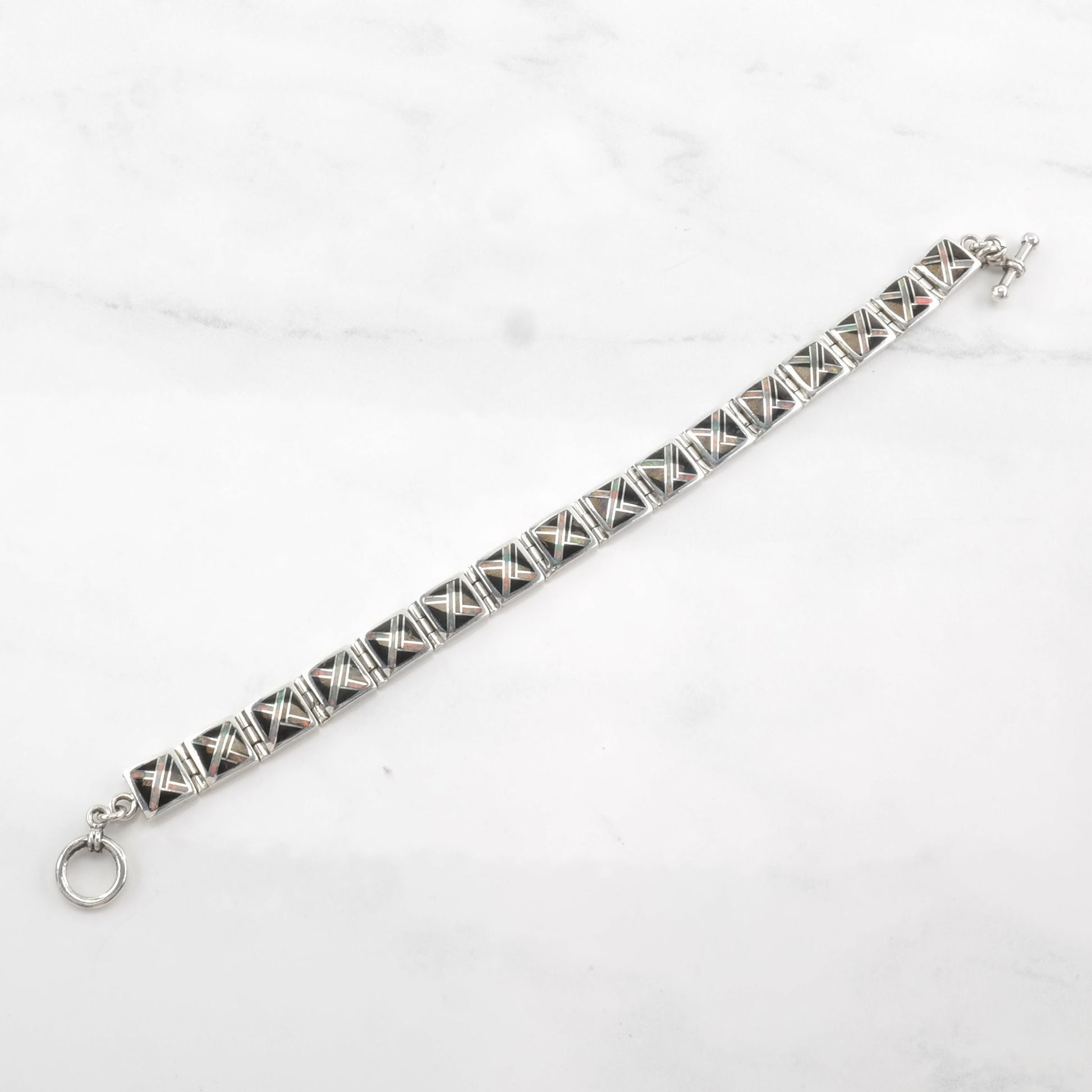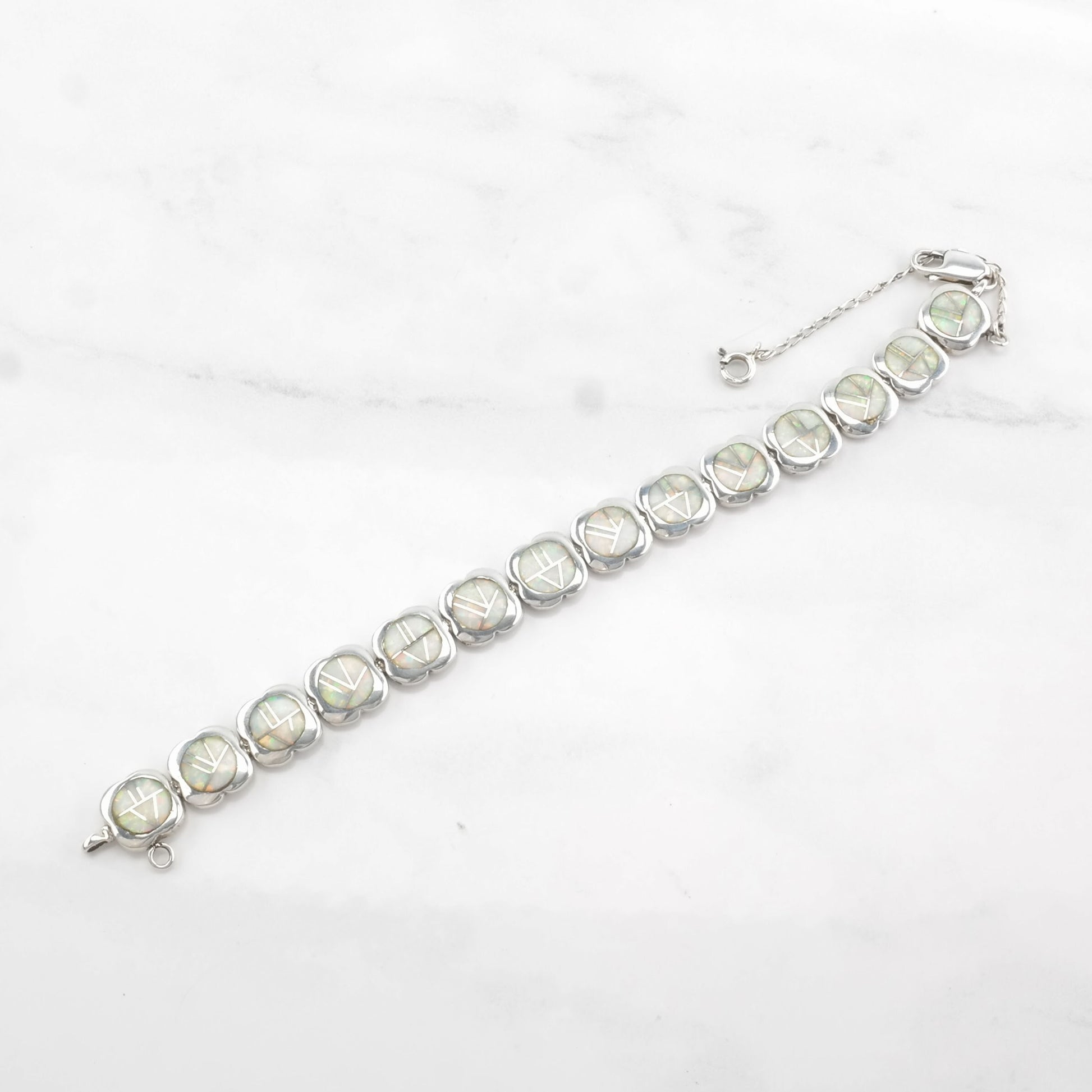 Lab Opal Inlay Sterling Silver Bracelet Onyx Southwest