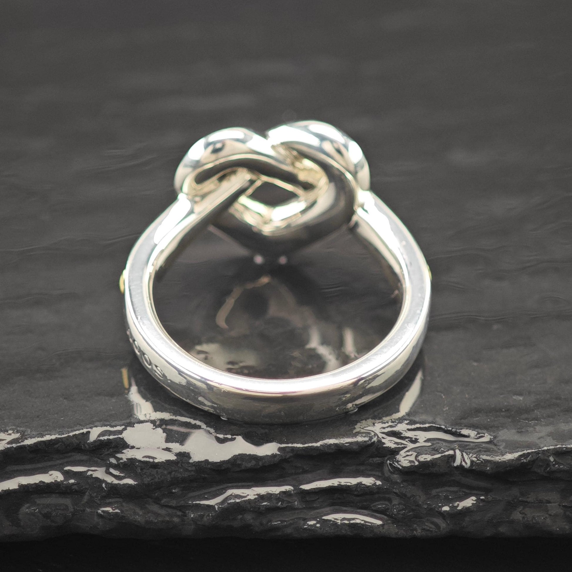 Discover the exquisite Lagos 18K Gold Accent Heart Ring, crafted in sterling silver. This stunning piece features the signature stamps of Lagos, 925, and 750, confirming its authenticity and quality. The ring is a size 8 but can be resized to fit your needs.
