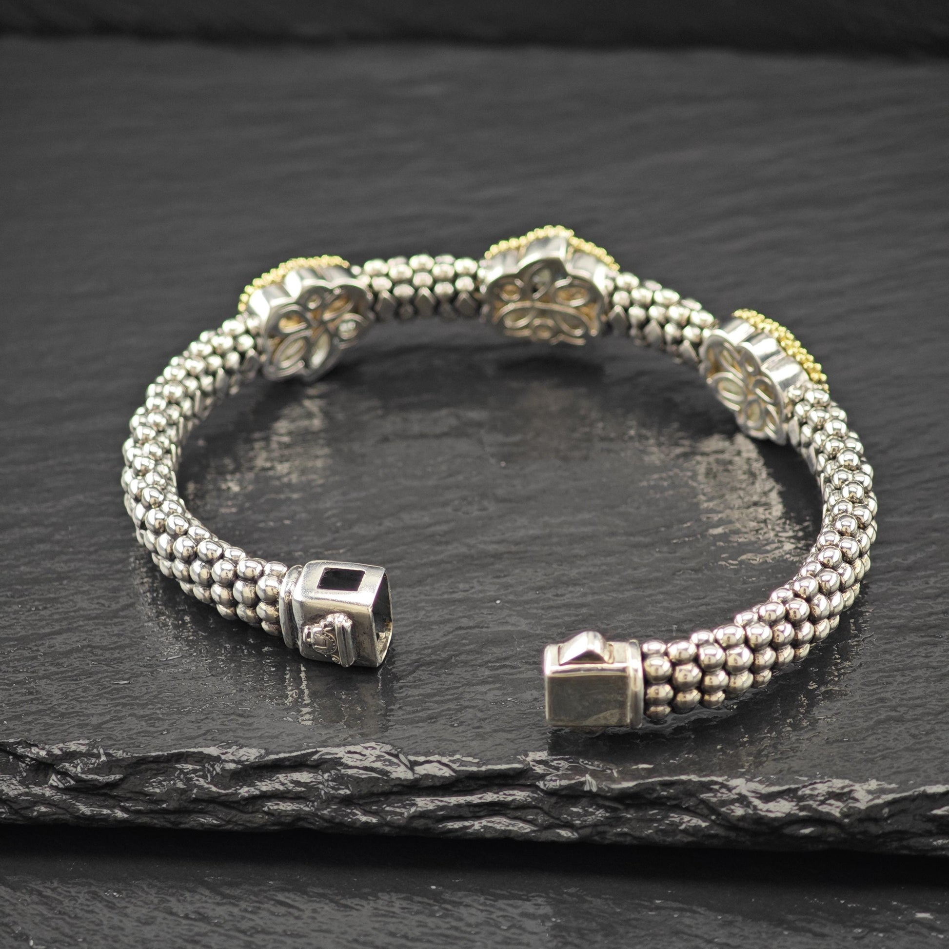 Discover the timeless elegance of this sterling silver bracelet, thoughtfully designed to complement any collection. Featuring delicate silver bangle craftsmanship paired with vibrant blue topaz accents, this piece makes a perfect Christmas gift or a special treat for her. Inspired by classic caviar detailing, it blends luxurious 18K yellow gold highlights with sterling silver for a refined, versatile accessory.