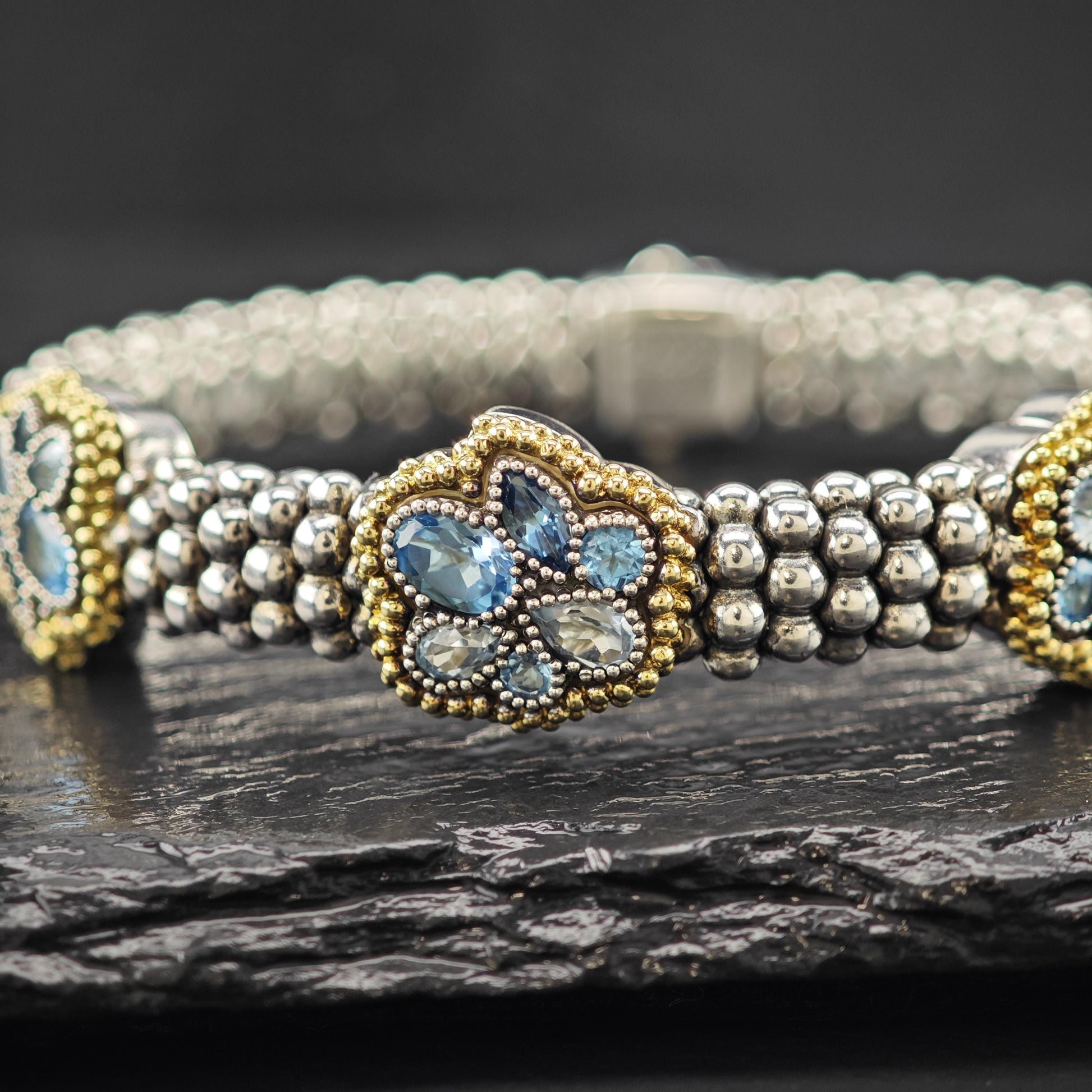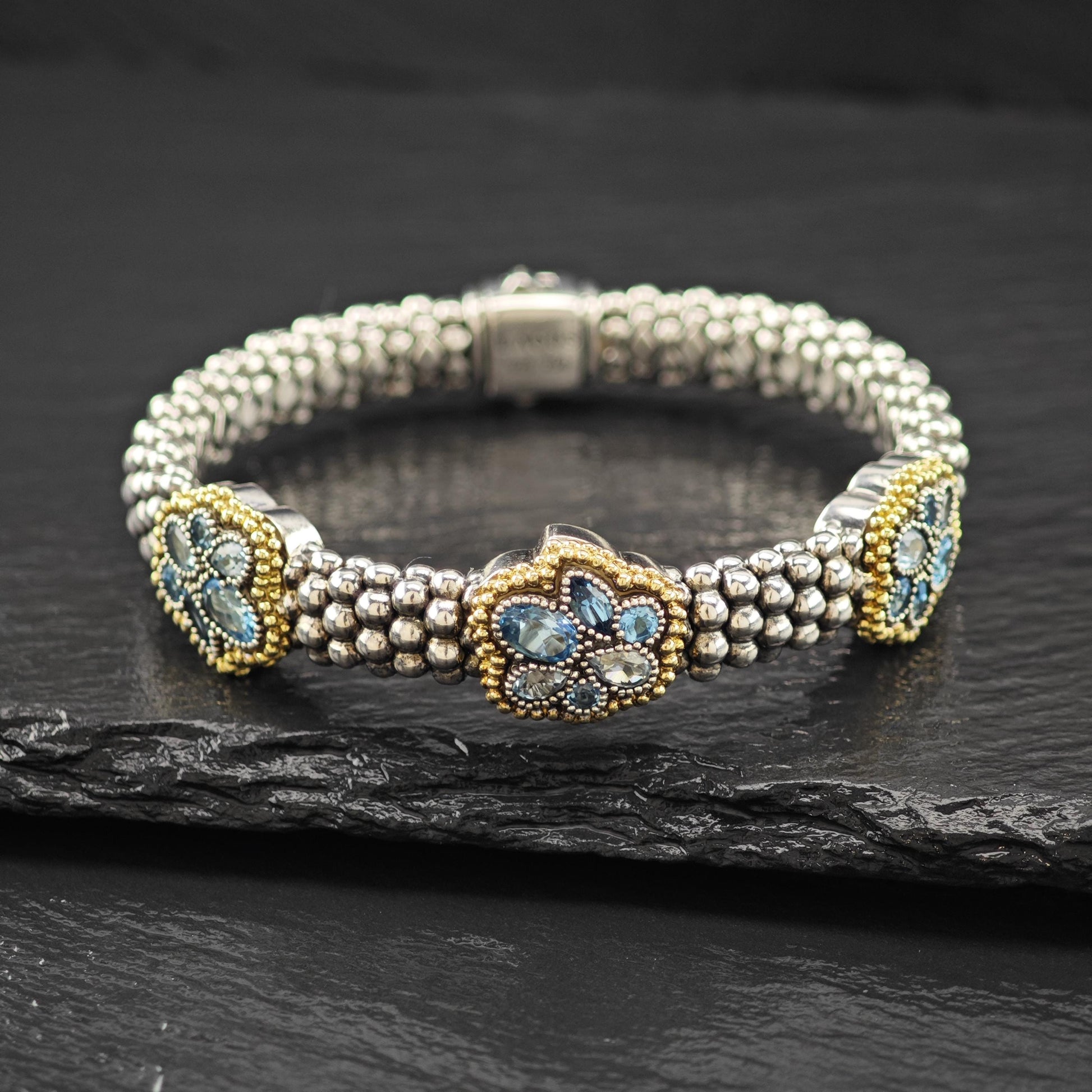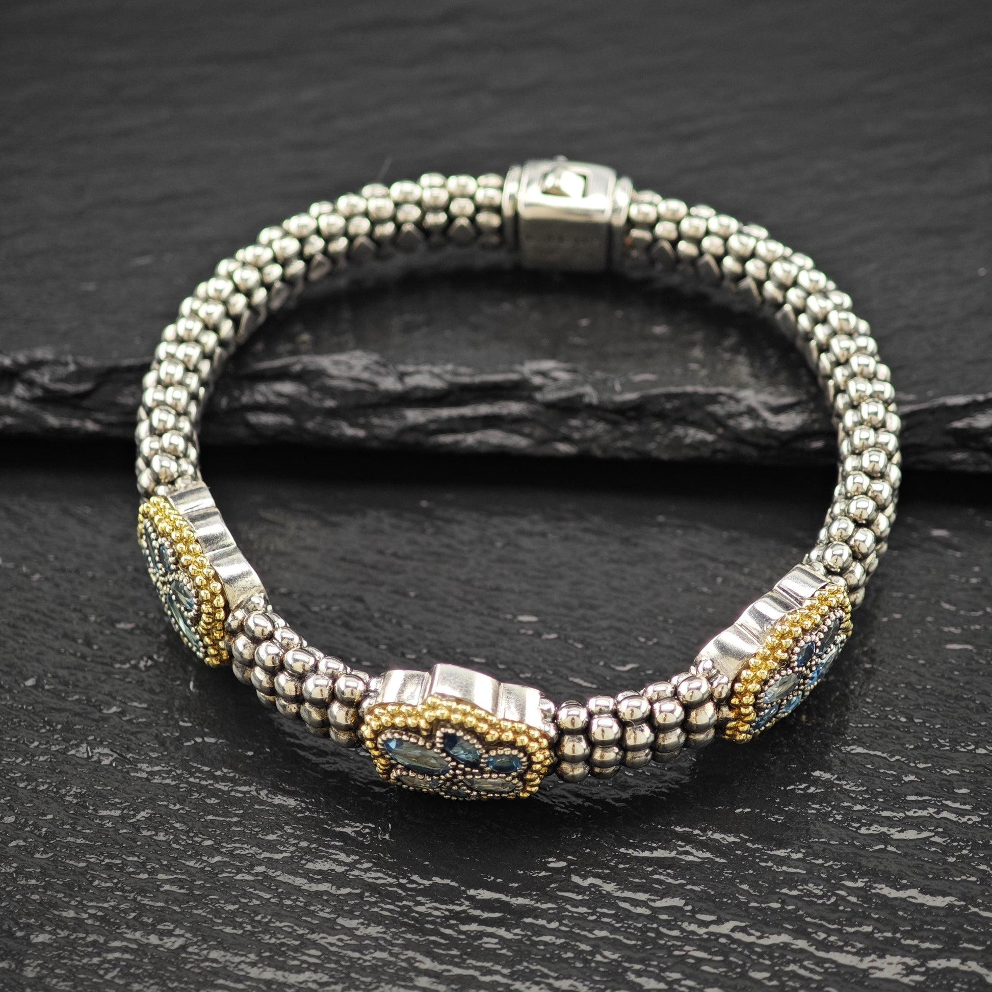 LAGOS 18K Yellow Gold, Blue Topaz Caviar Bracelet Sterling Silver Sz 6 1/4"