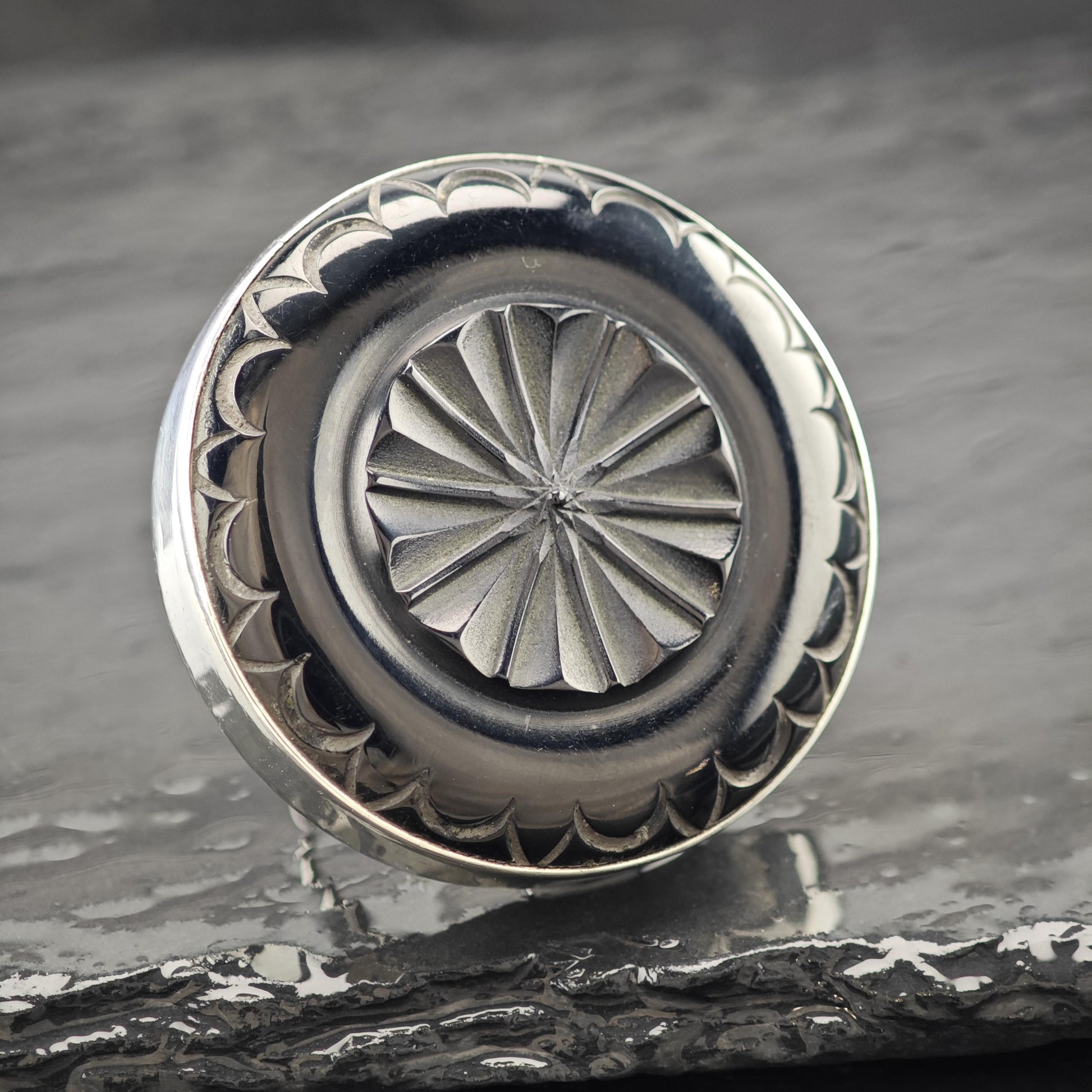 Discover the timeless allure of this large carved black gemstone ring, a stunning example of vintage jewelry crafted from genuine sterling silver. This piece captures the essence of elegance and history, perfect for those who appreciate the beauty of a sterling silver ring with character and charm. Whether you're searching for a unique holiday gift or a special addition to your collection, this vintage ring offers both style and substance.