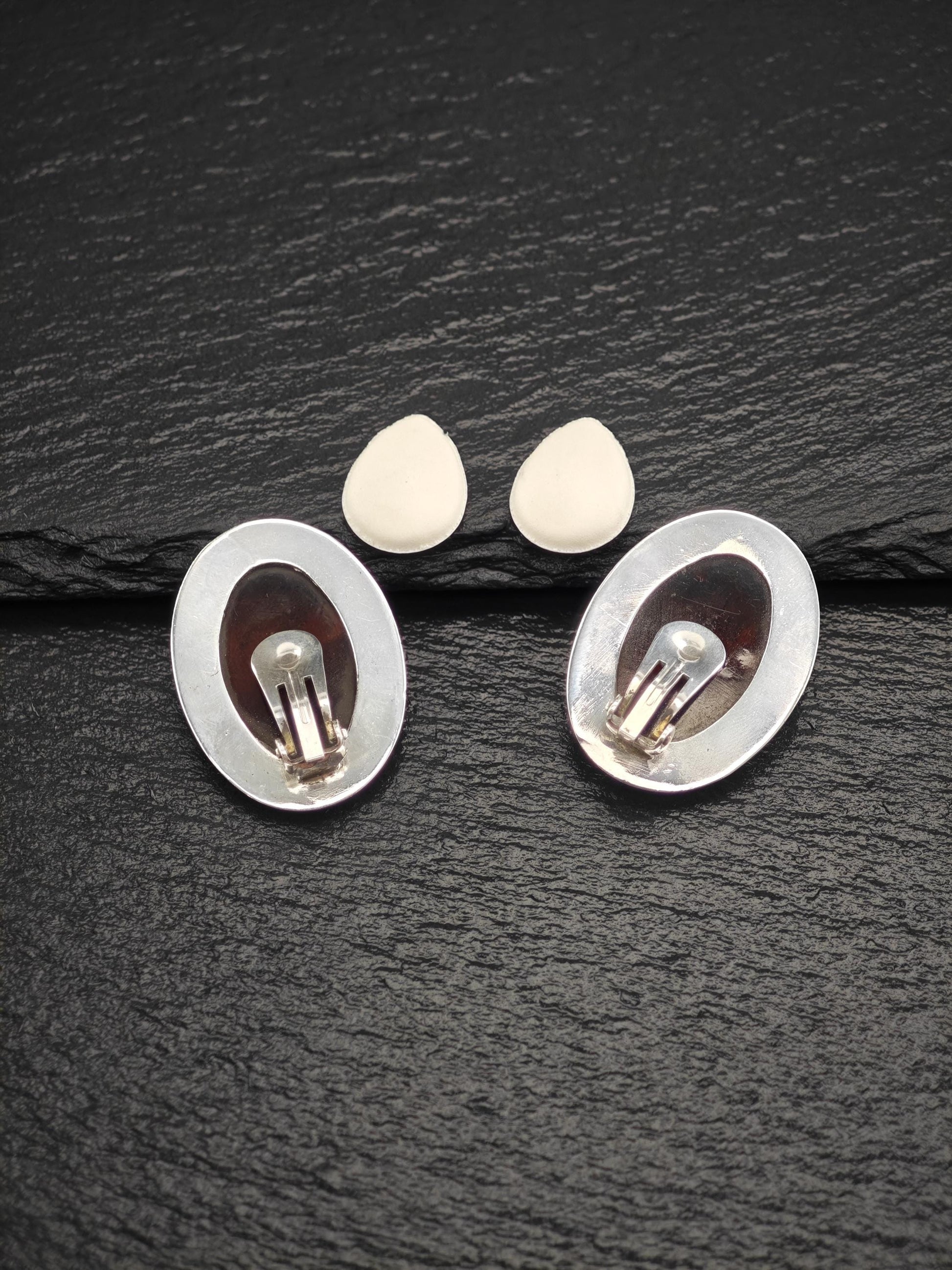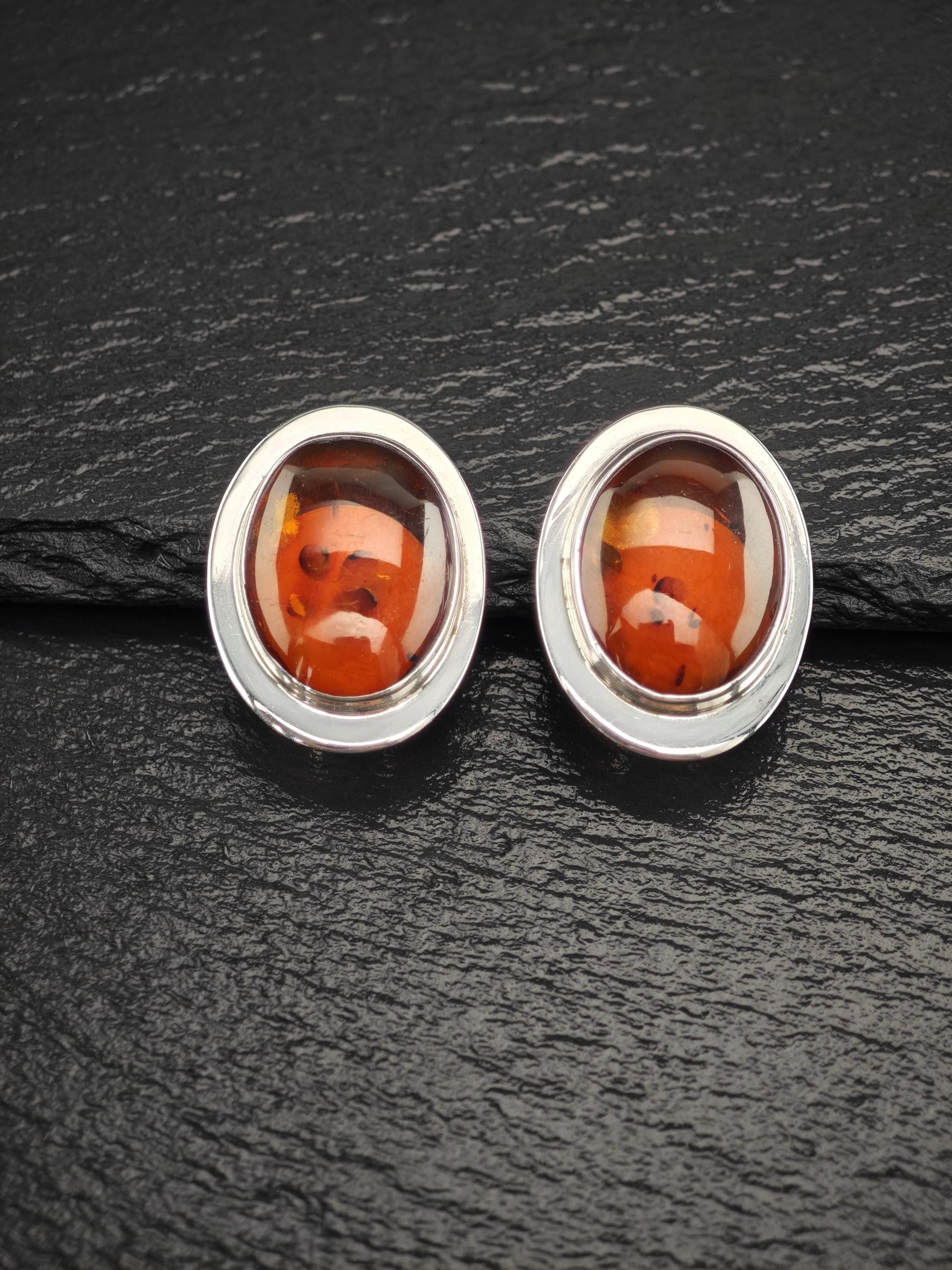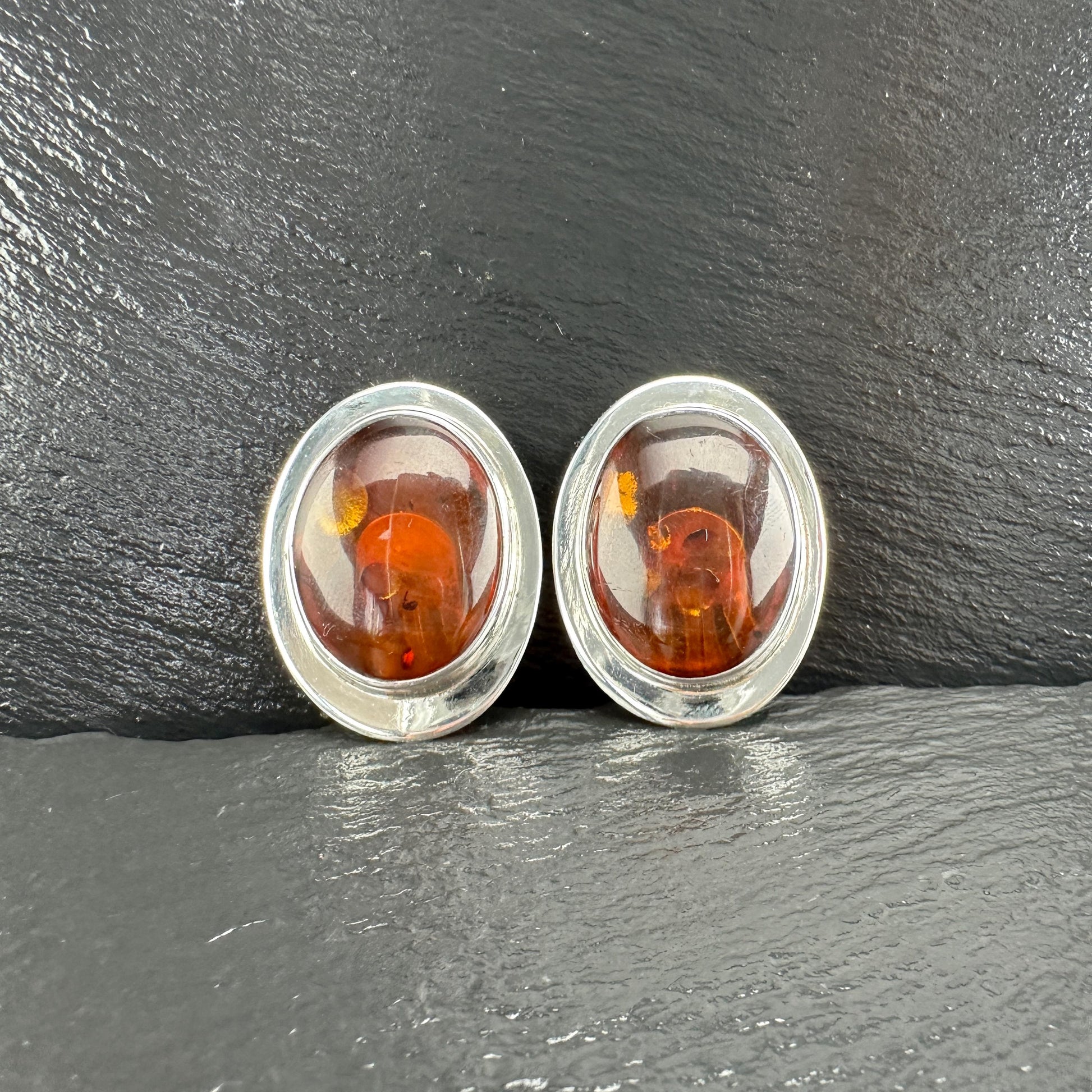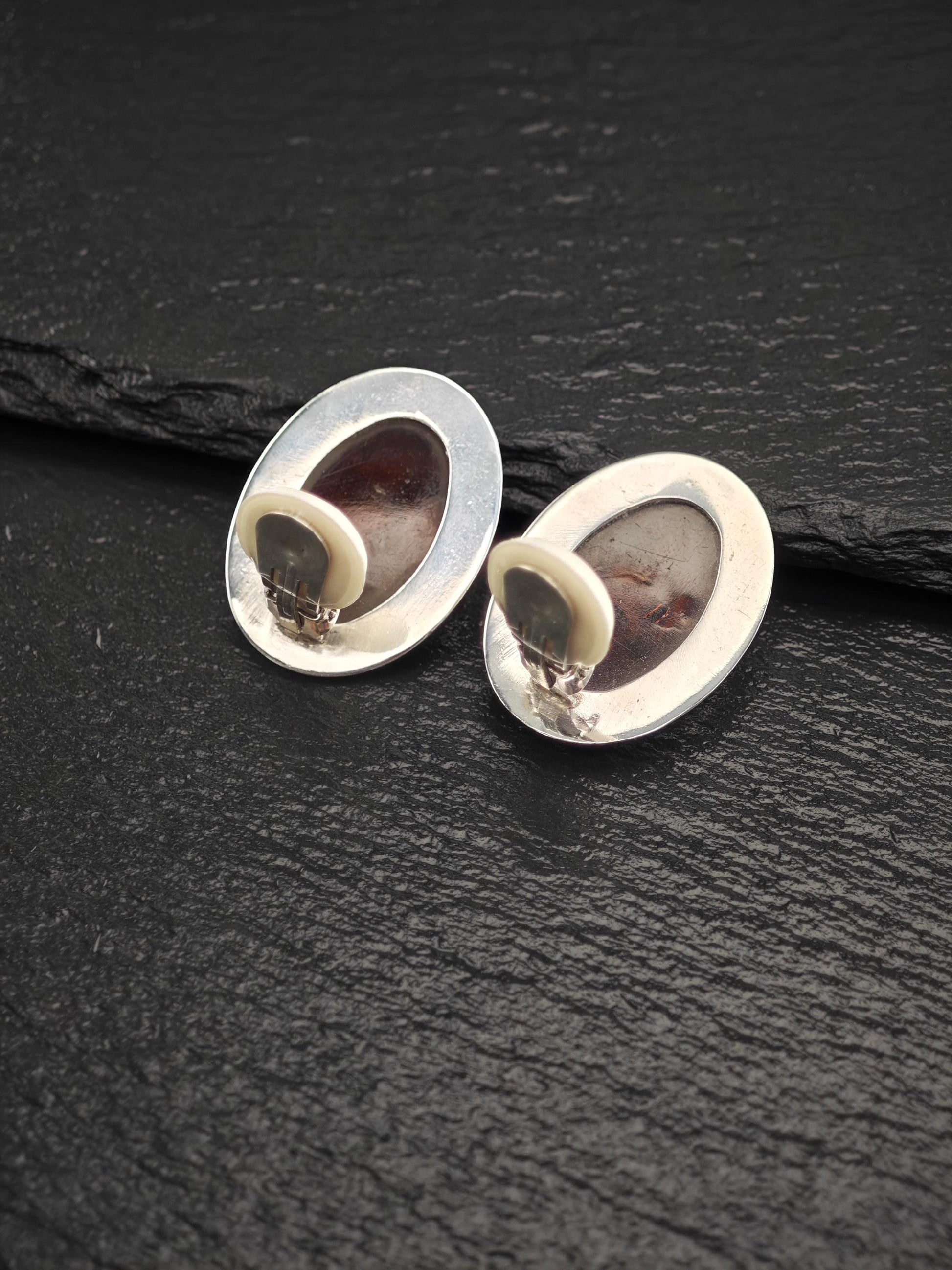 Large Modernist Amber Sterling Silver Clip On Earrings