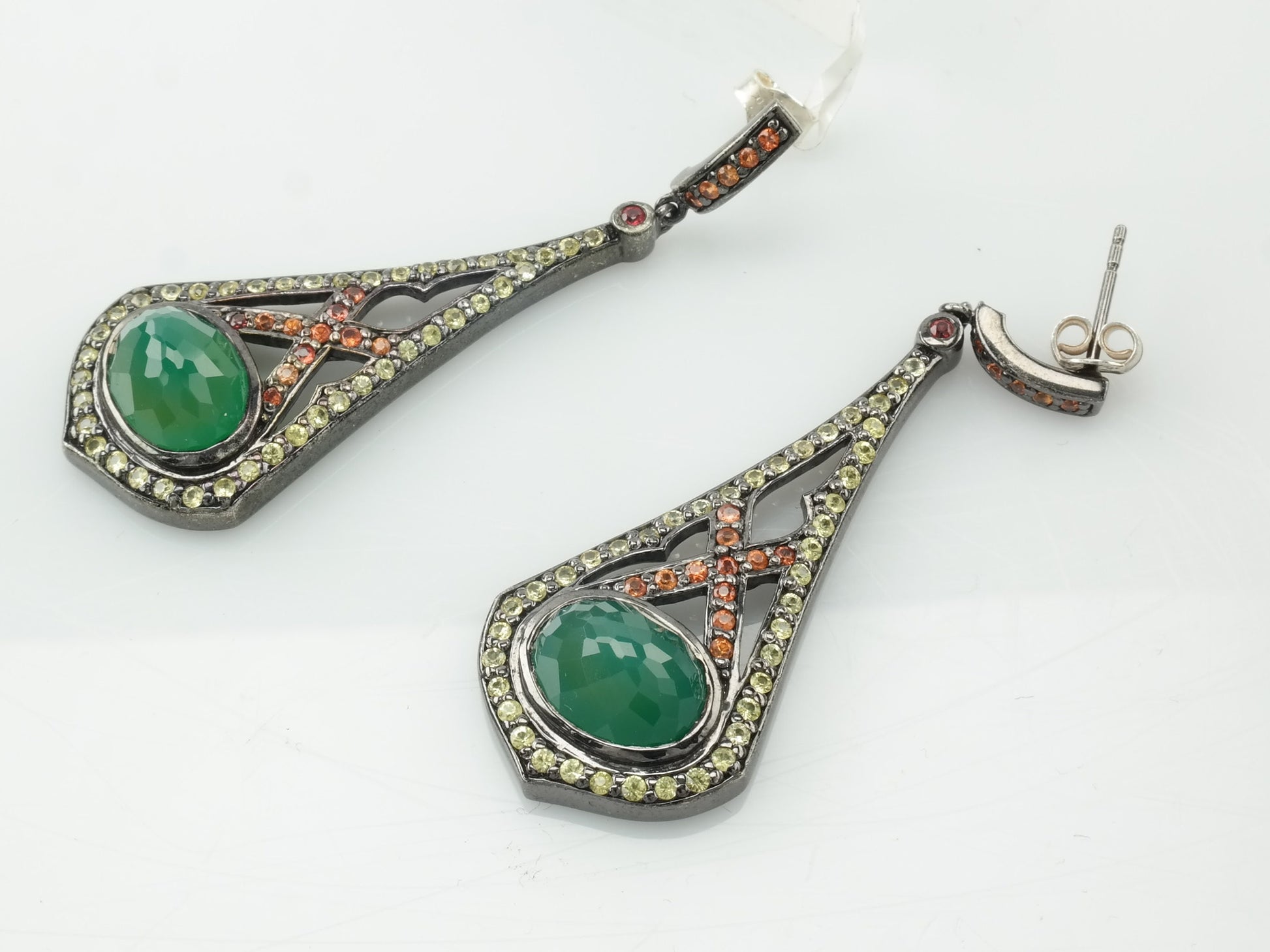 Sterling Silver Green Yellow Orange Red Sapphire Chrysoprase Stud/Dangle Earrings