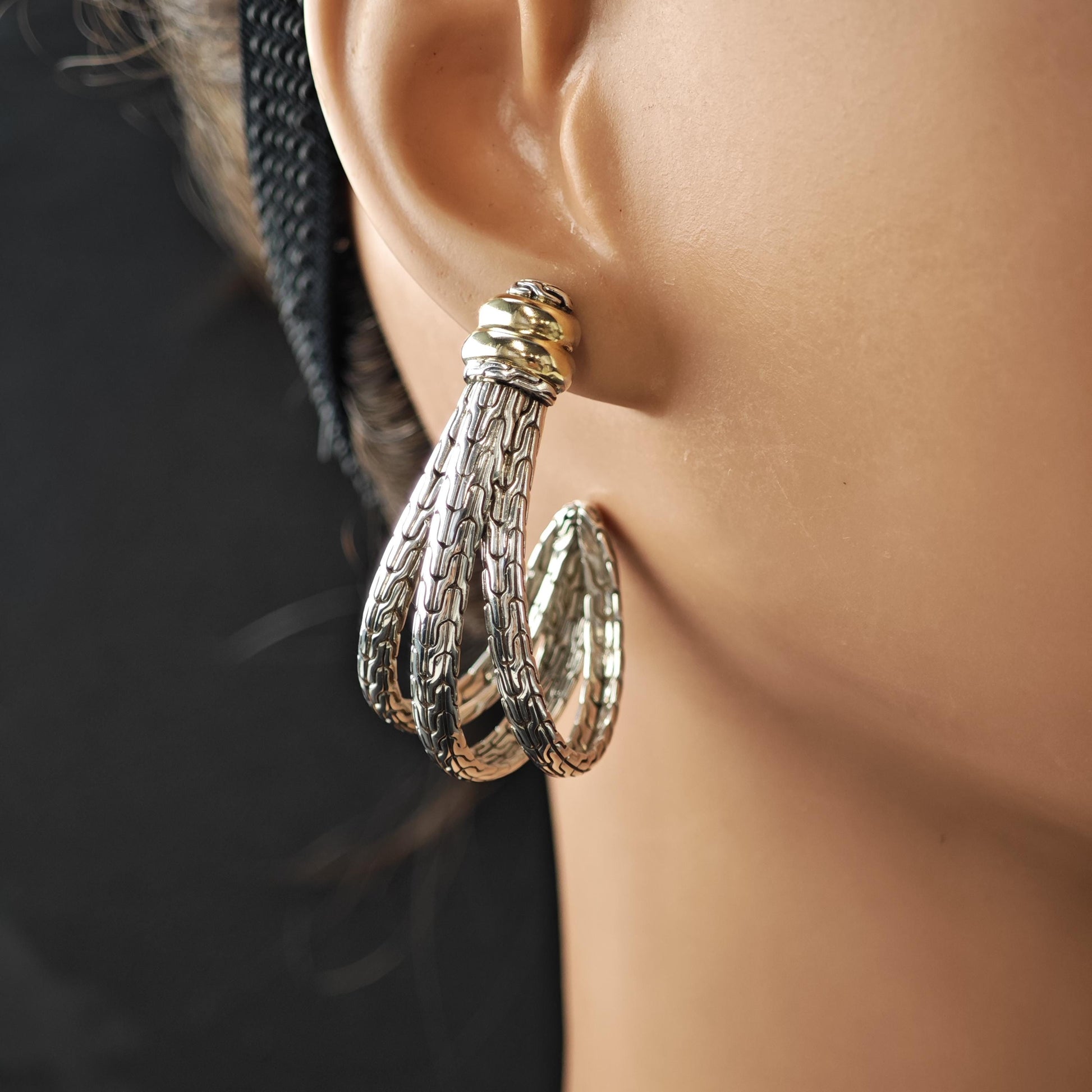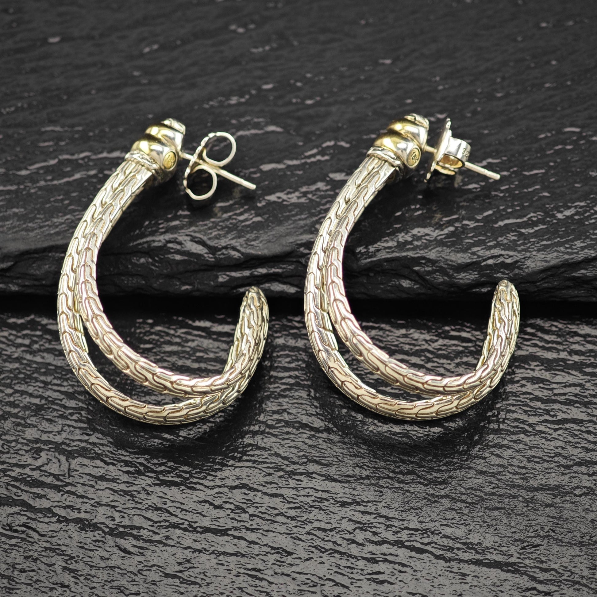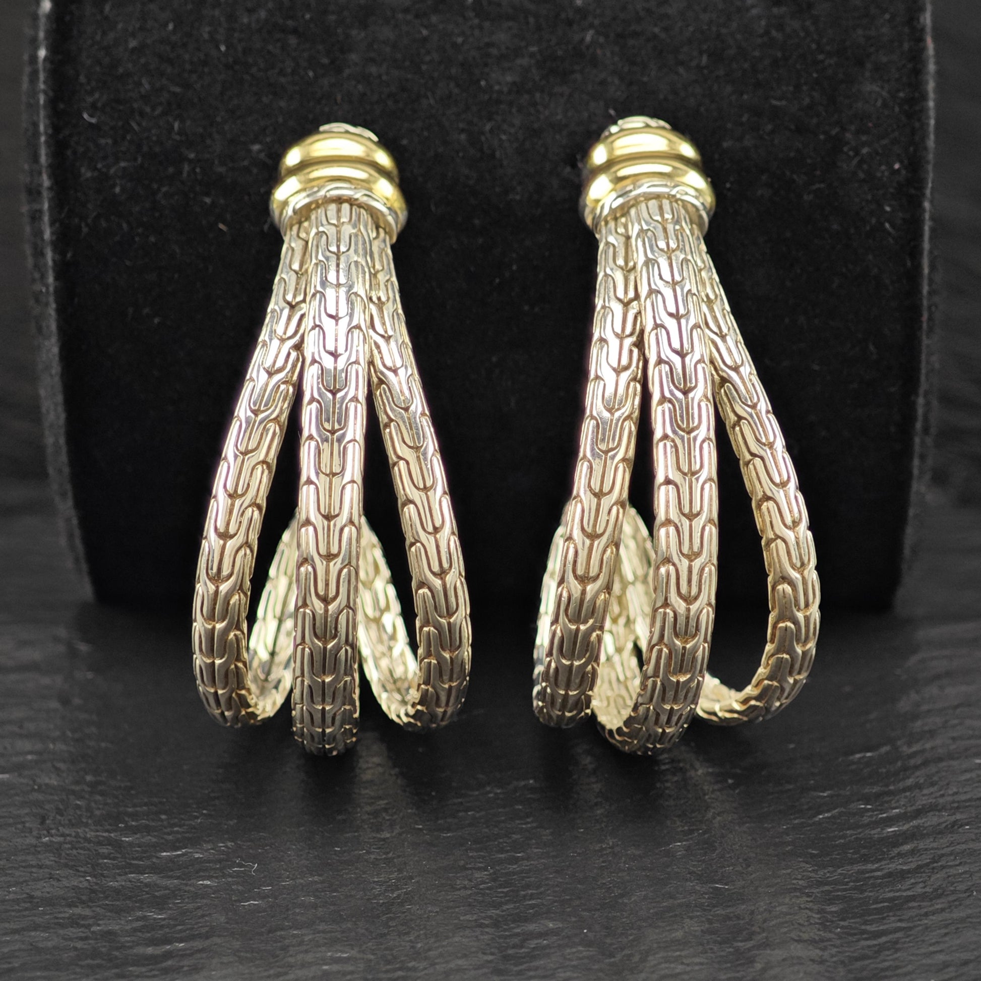 Lg John Hardy 18K Gold Accent Sterling Silver Half Hoop Earrings