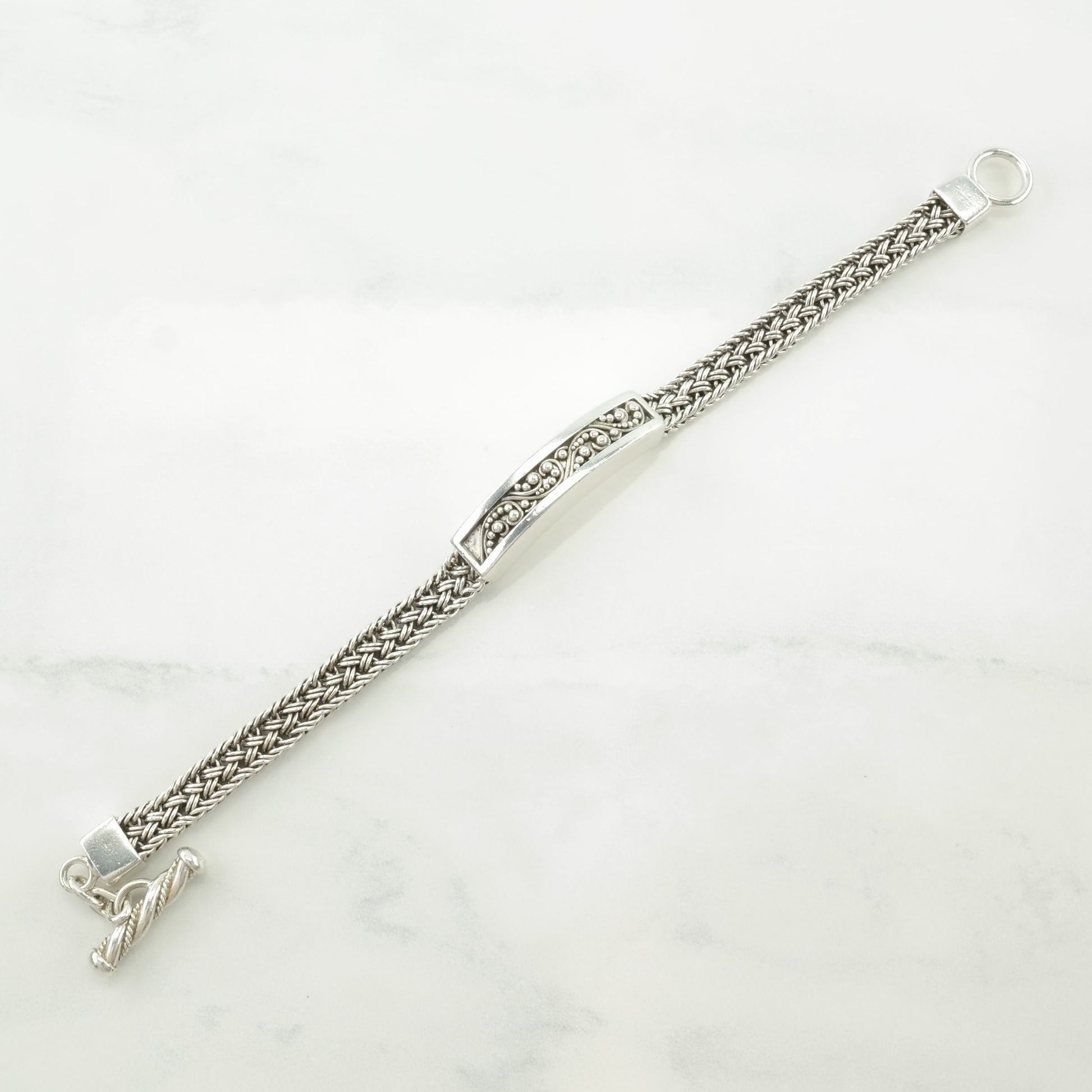 Lois Hill Sterling Silver T-Bar Bracelet Scroll Toggle Clasp