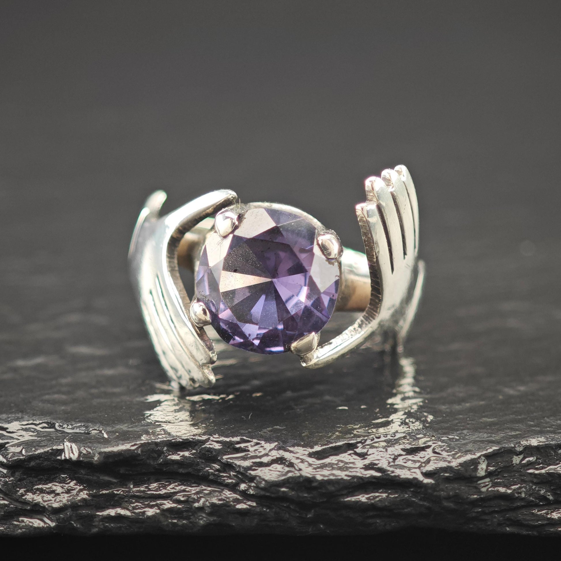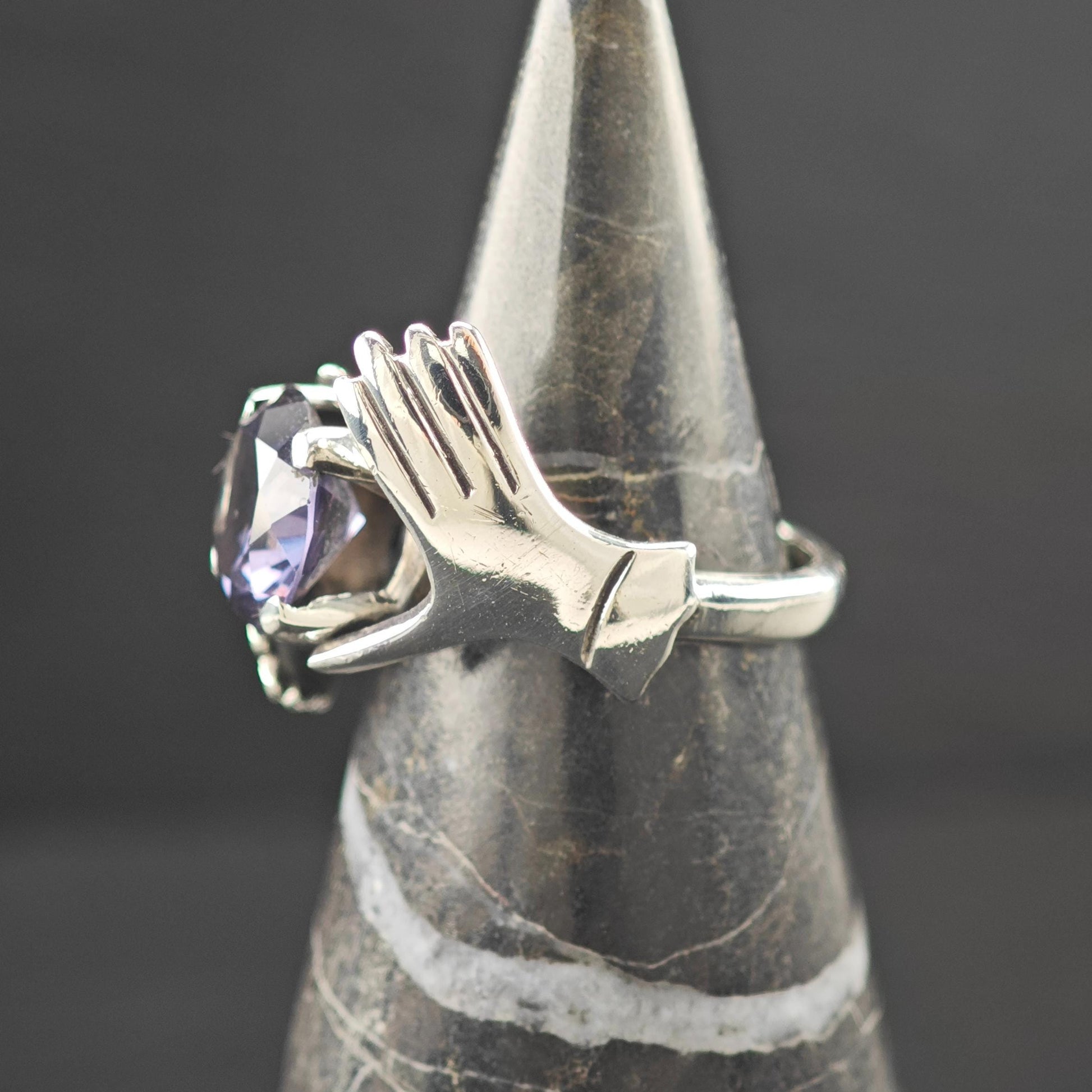 Mexican Alexandrite Hands Ring Sterling Silver, Color Change