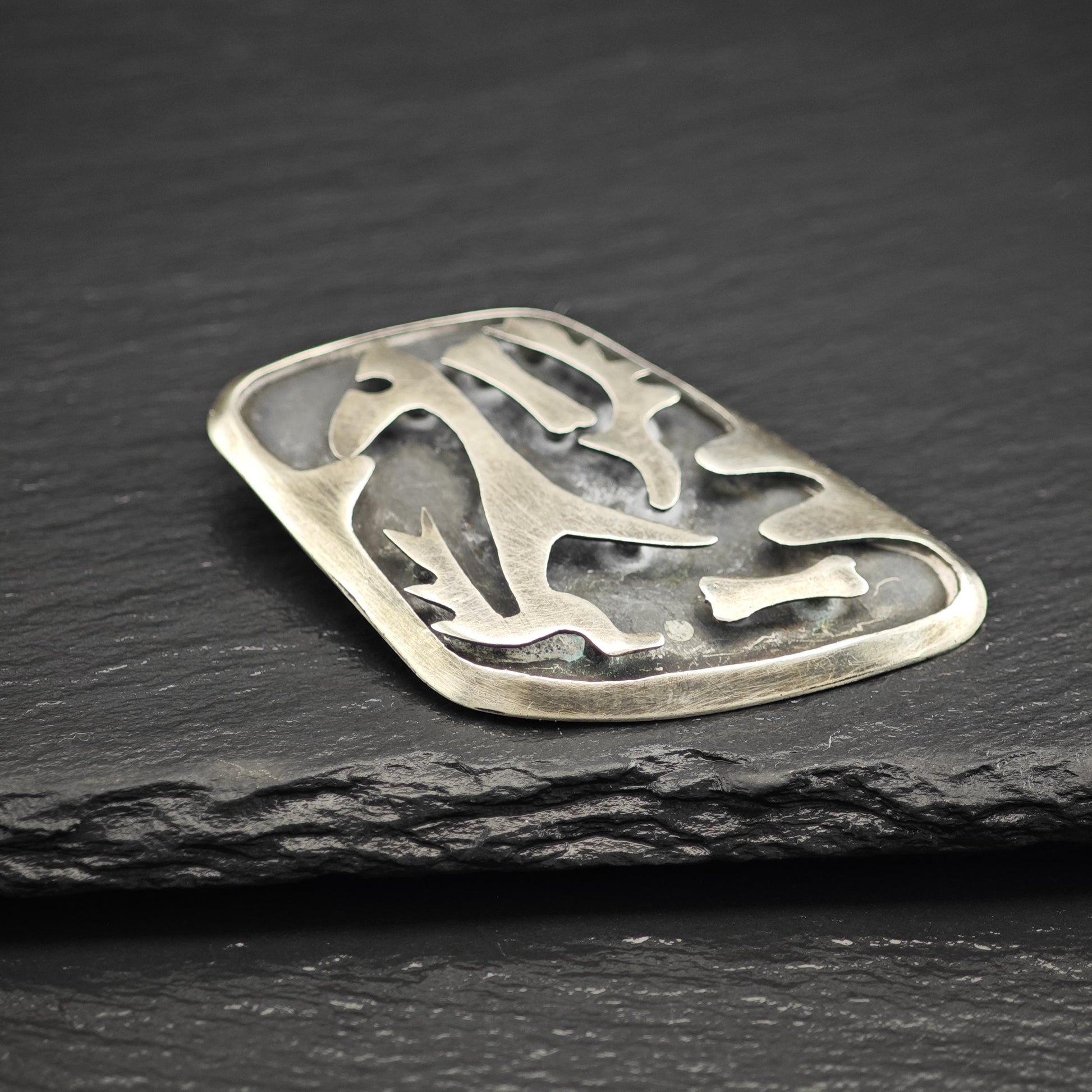Mexico Abstract, Shadowbox Brooch Pendant Sterling Silver
