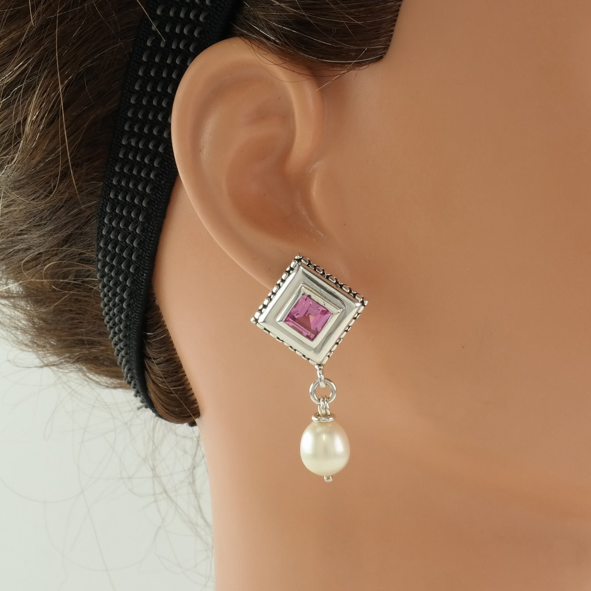 Michael Dawkins Sterling Silver Pink Sapphire, Pearl Earrings Stud