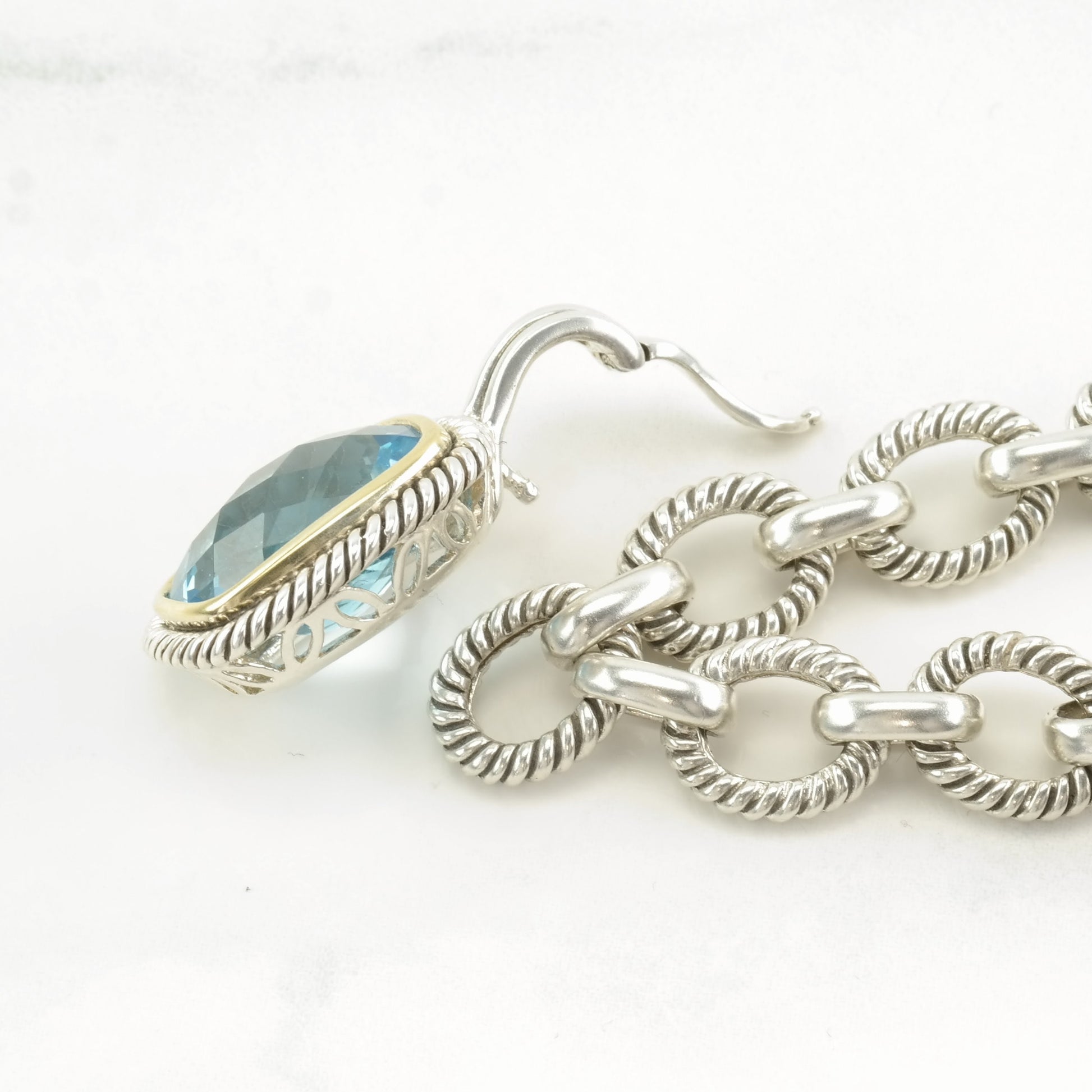 Michelle Albala Sterling Silver Topaz Gold Bezel, Cable Link Chain Necklace