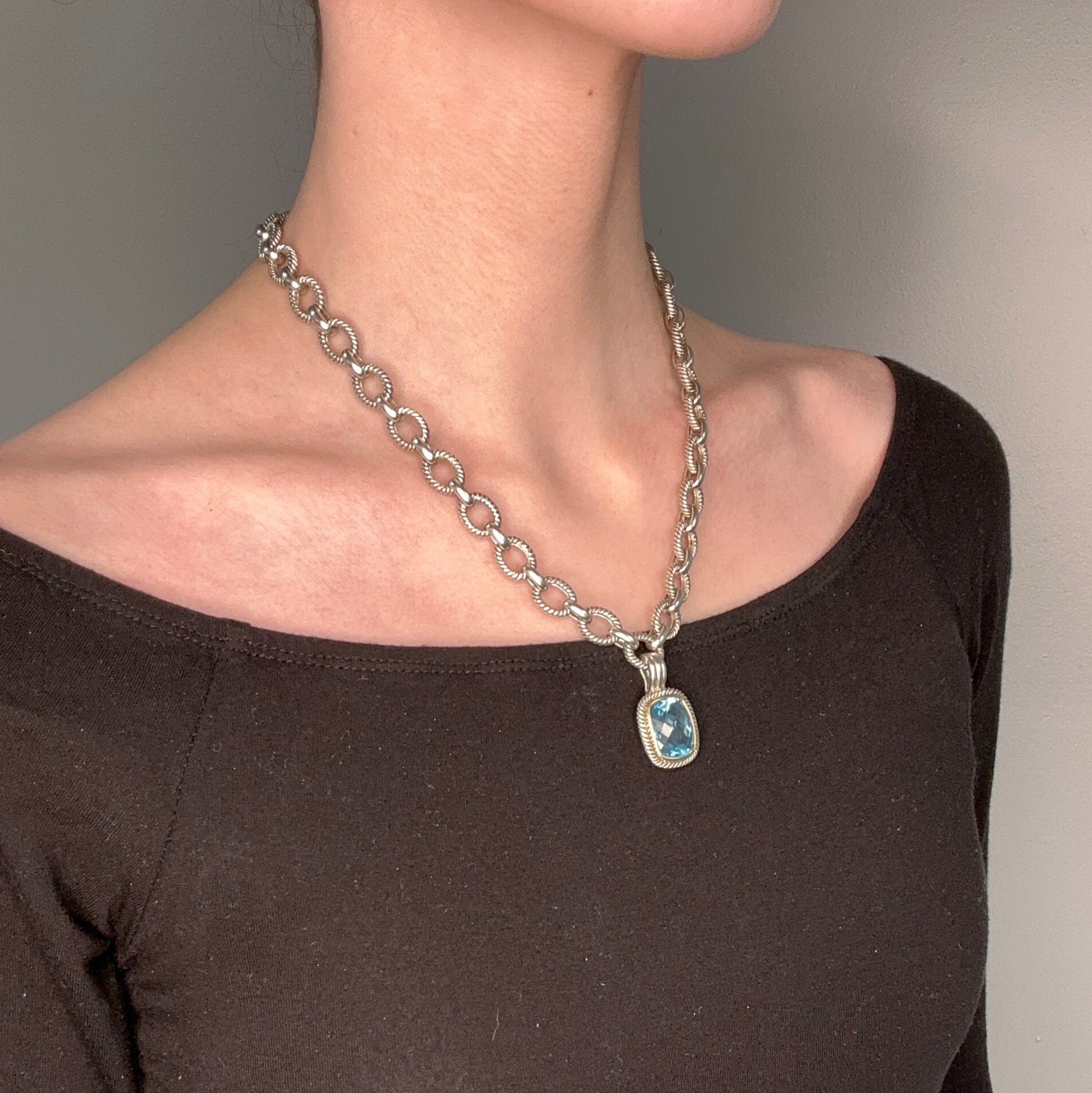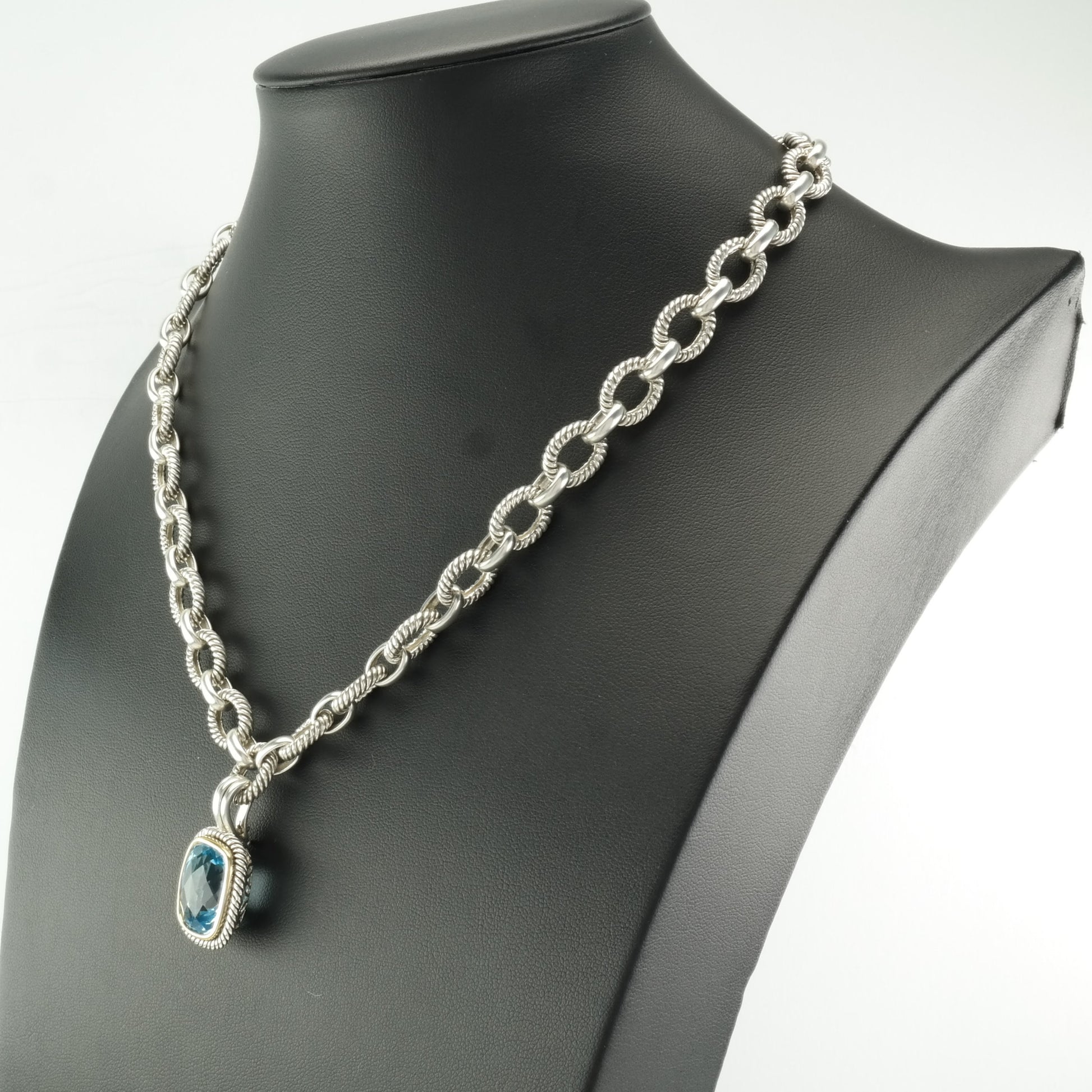 Vintage Michelle Albala Sterling Silver Topaz Gold Bezel, Cable Link Chain Necklace