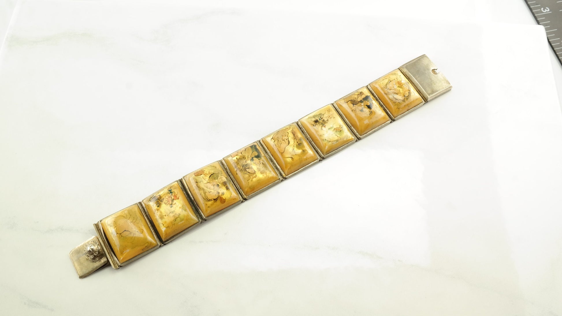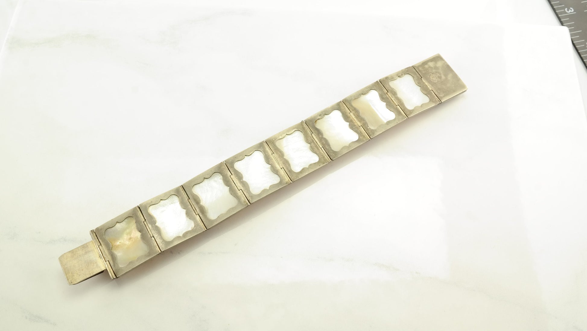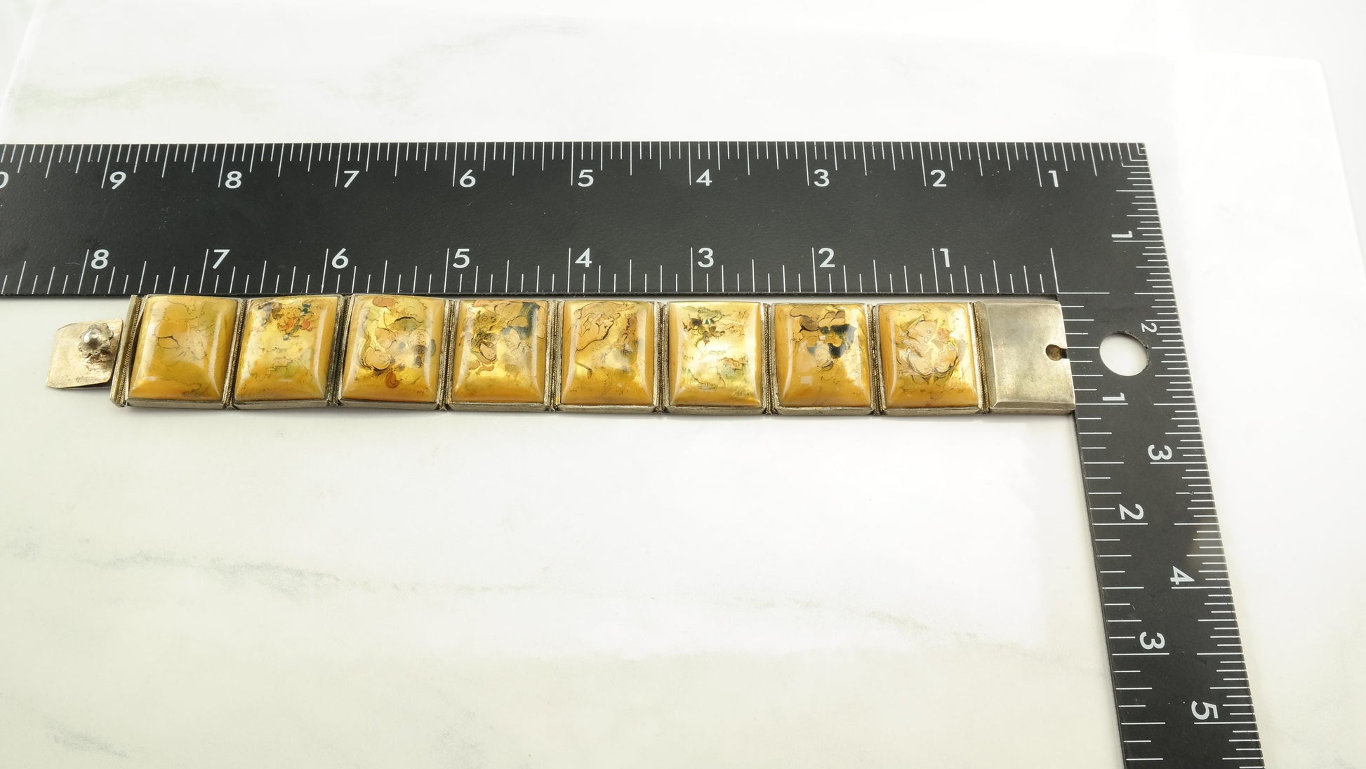 Middle Eastern Silver Link Bracelet Hand Painted Mother of Pearl