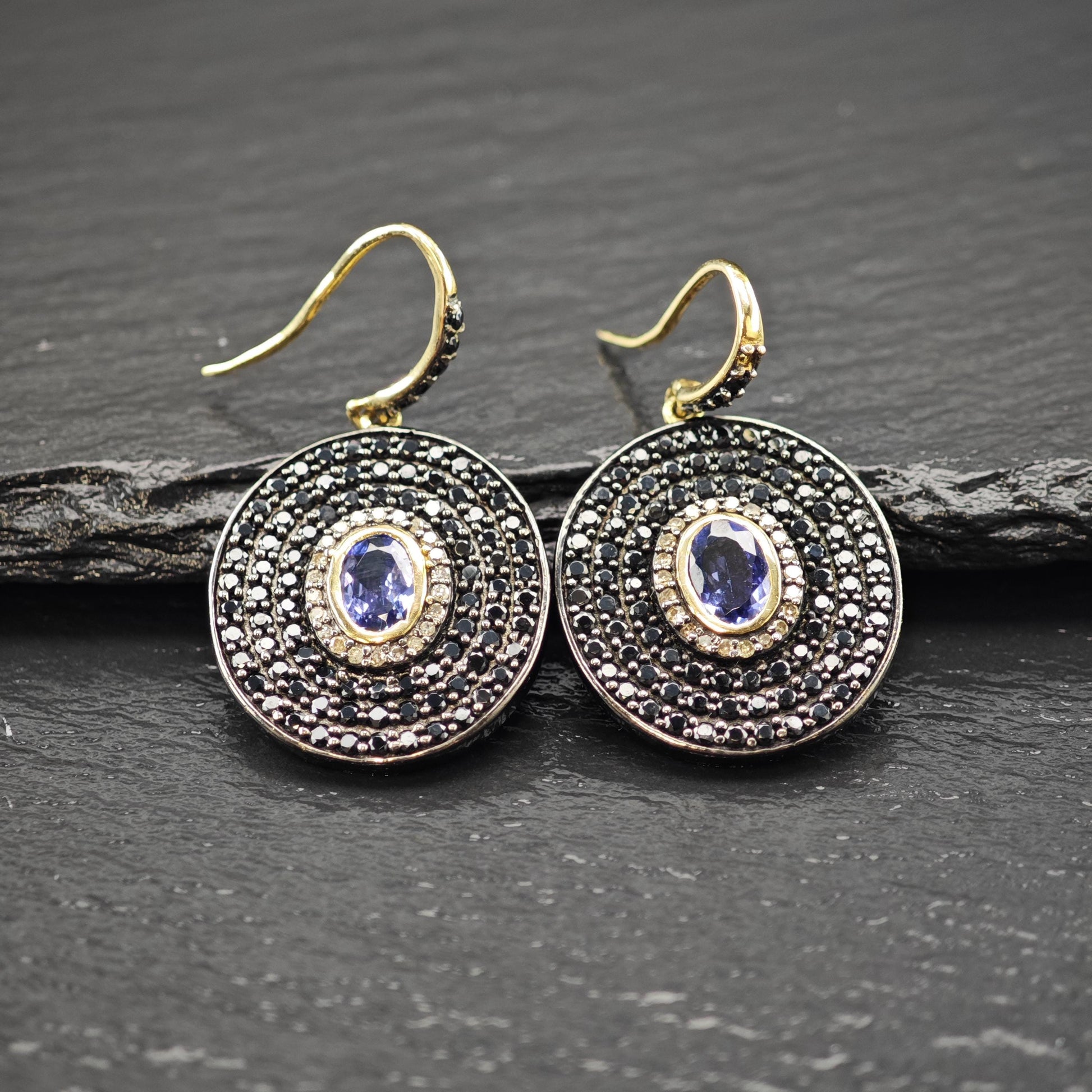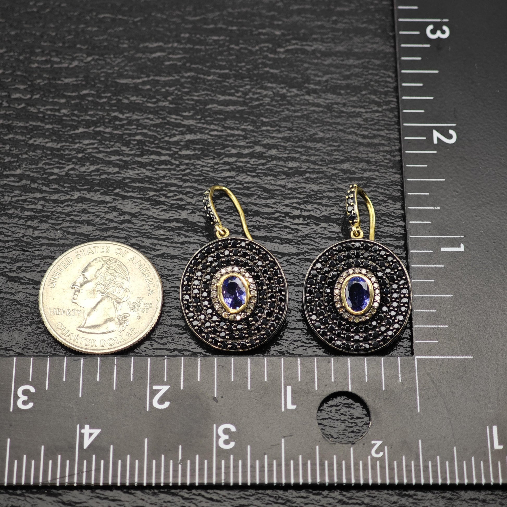 MLD Black, blue, Gold Tanzanite, Diamond, Spinel Pave Sterling Silver Dangle Earrings