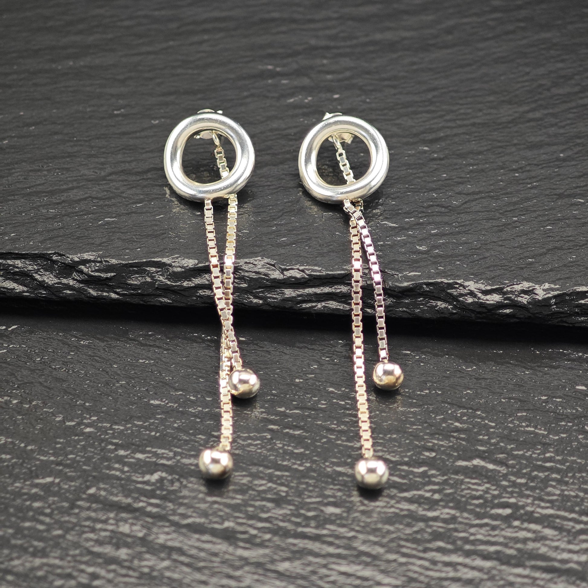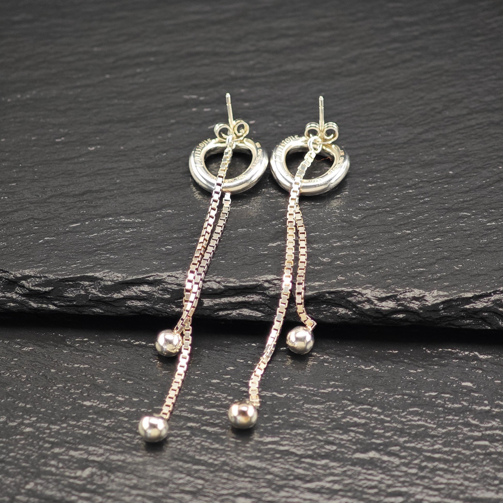 Discover these stunning vintage sterling silver earrings, measuring 2 7/8" in length and 5/8" in width. Weighing 10.9 grams, these earrings showcase a modernist design that beautifully complements any style.