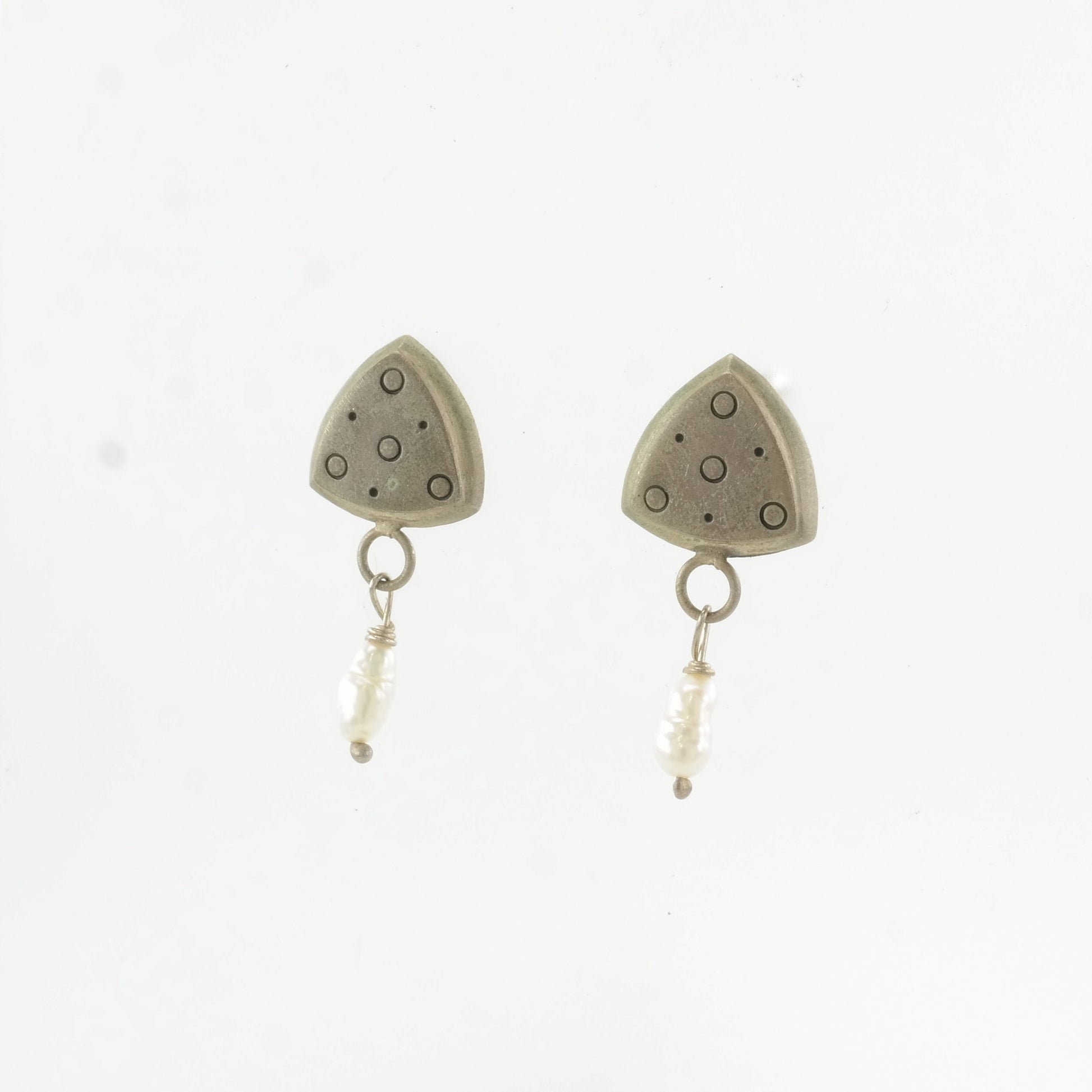 Modernist Sterling Silver Pearl Triangular Earrings Stud, dangle