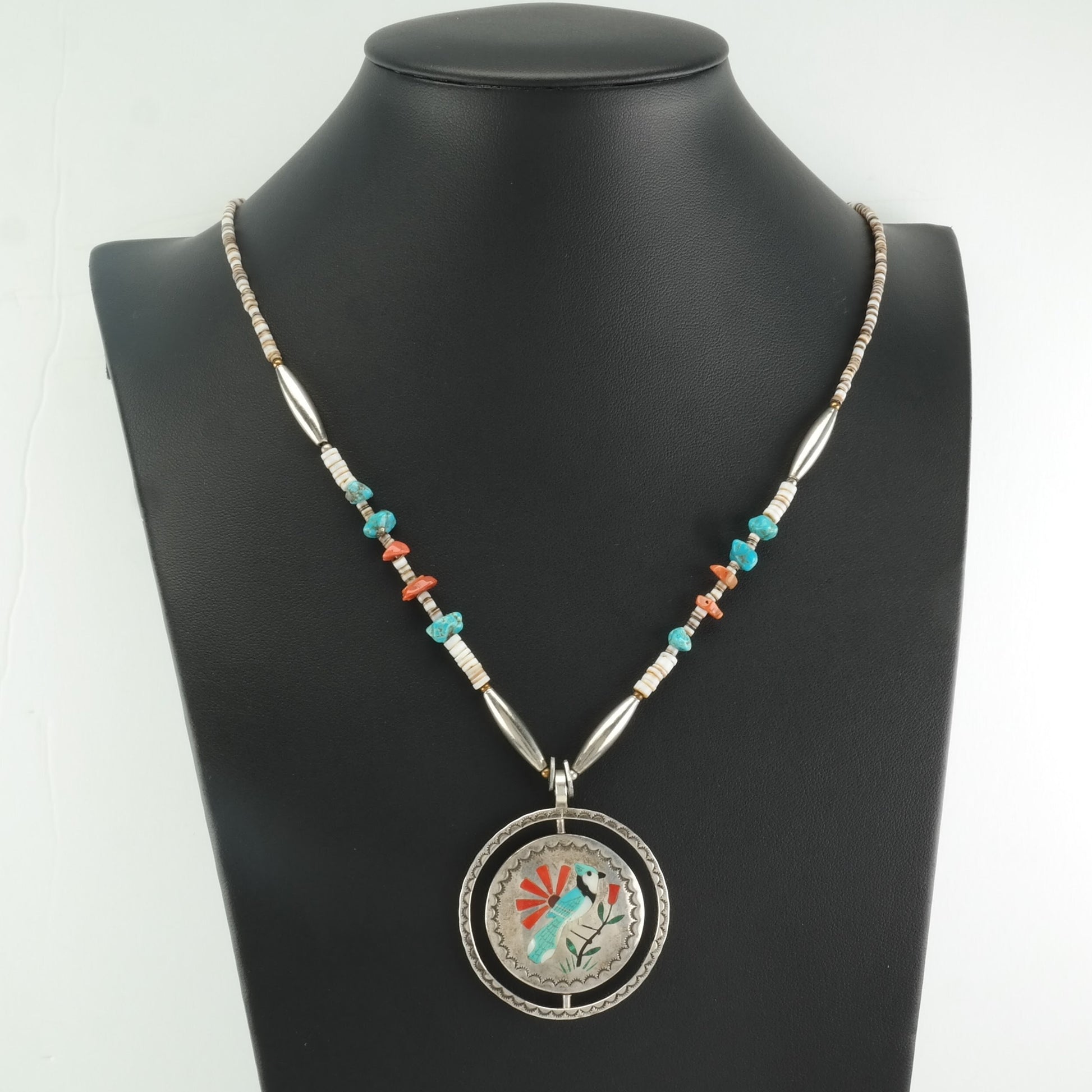 Native American Bird Inlay Necklace Sterling Silver Heishi Reversible