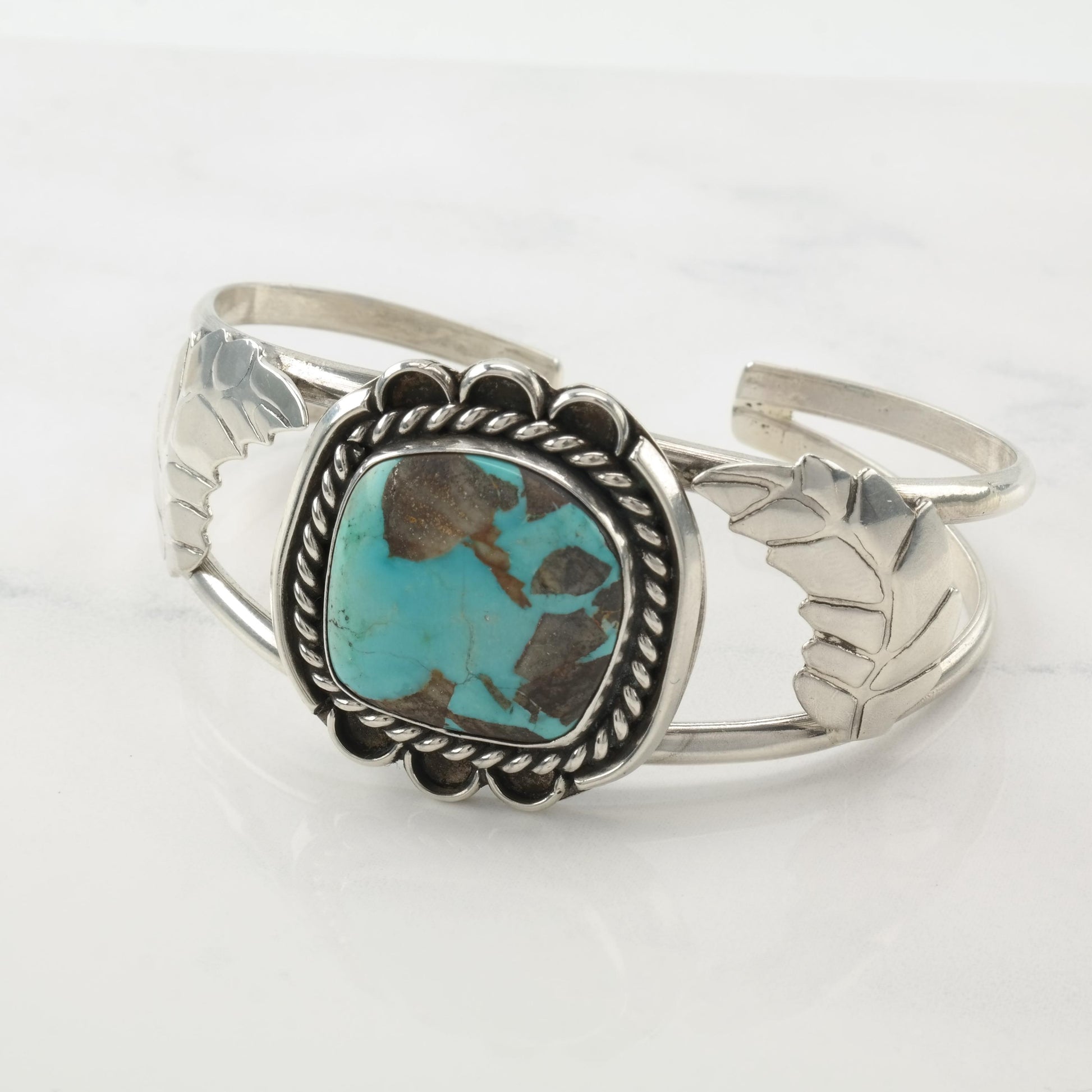 Native American Bisbee Turquoise Cuff Bracelet Sterling Silver