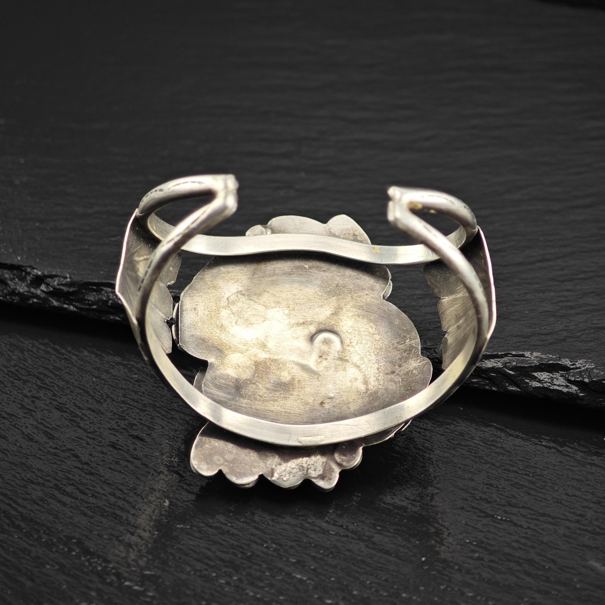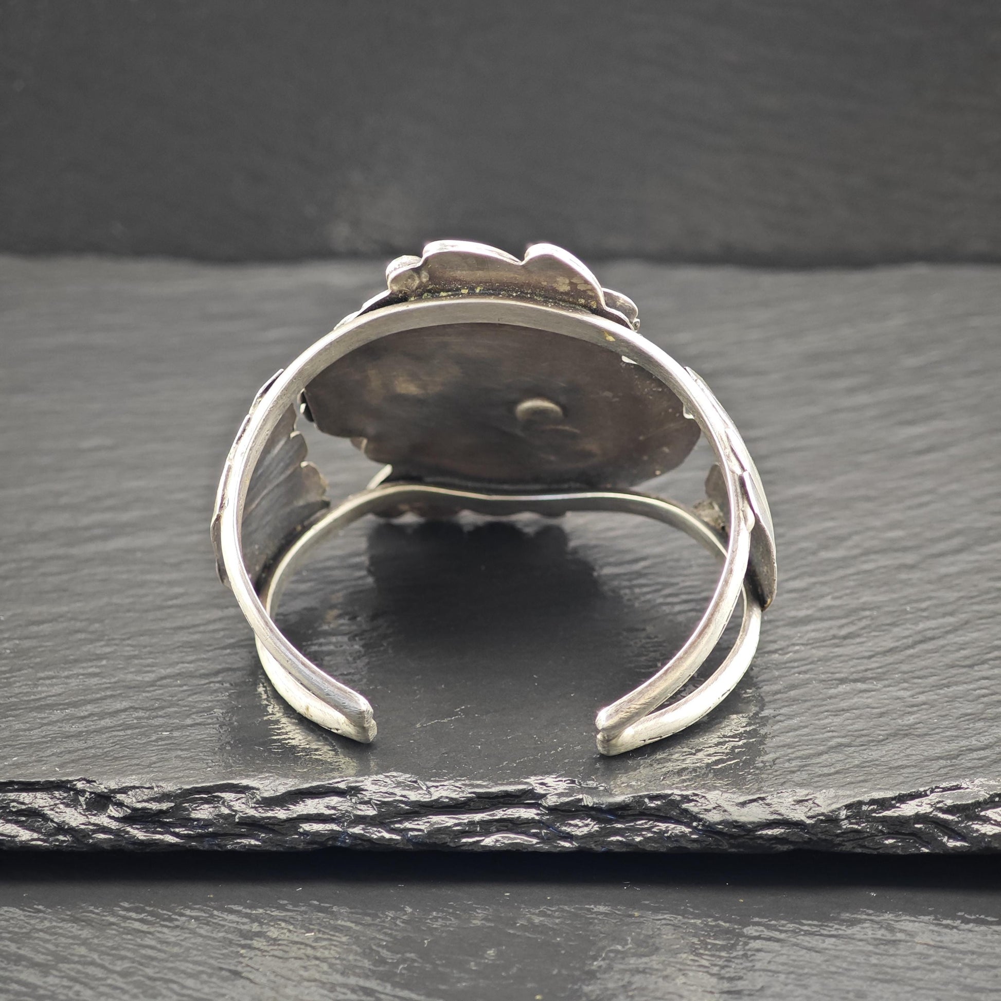 Native American Blue Turquoise Floral Cuff Bracelet Sterling Silver