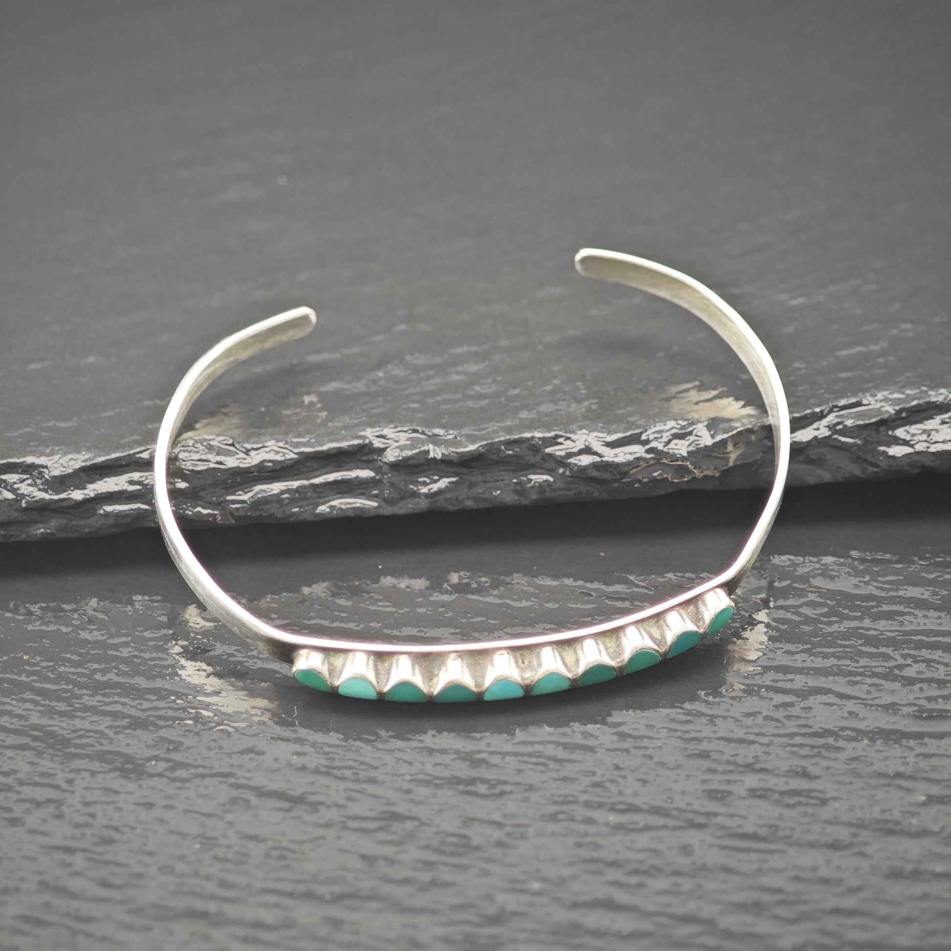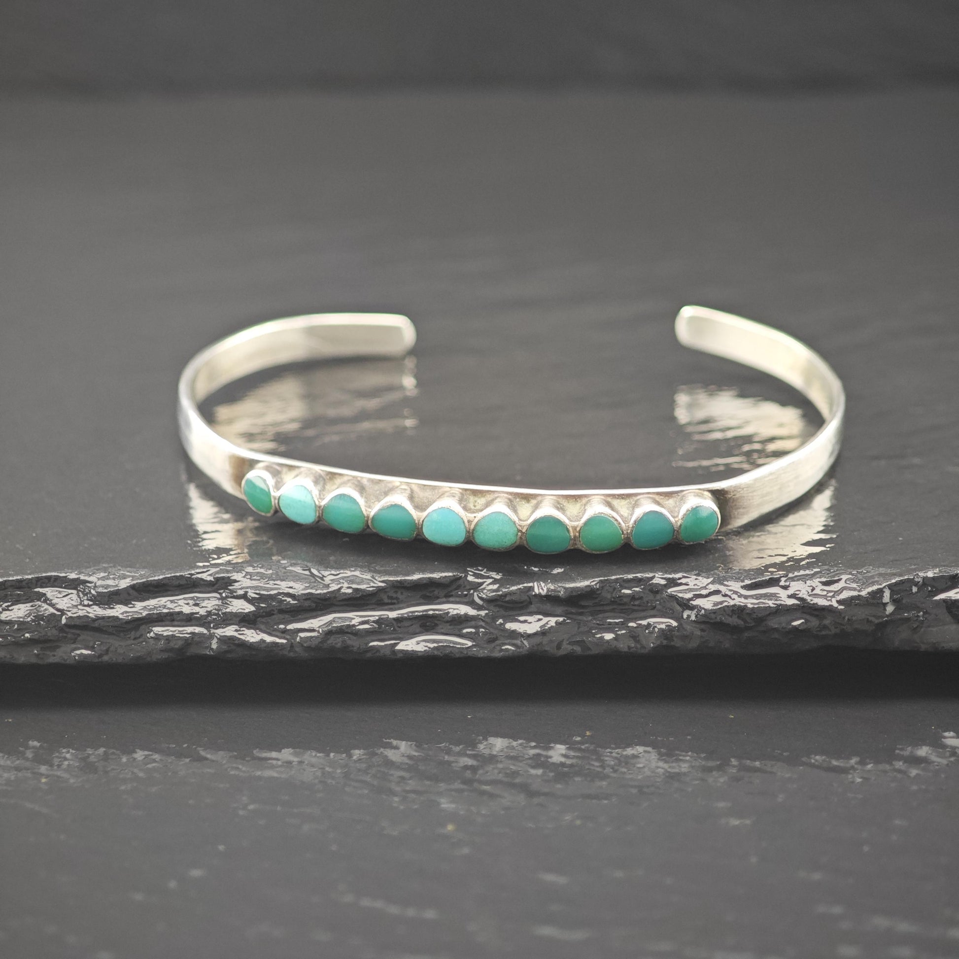 Native American Green Turquoise Inlay Cluster Cuff Bracelet Sterling Silver