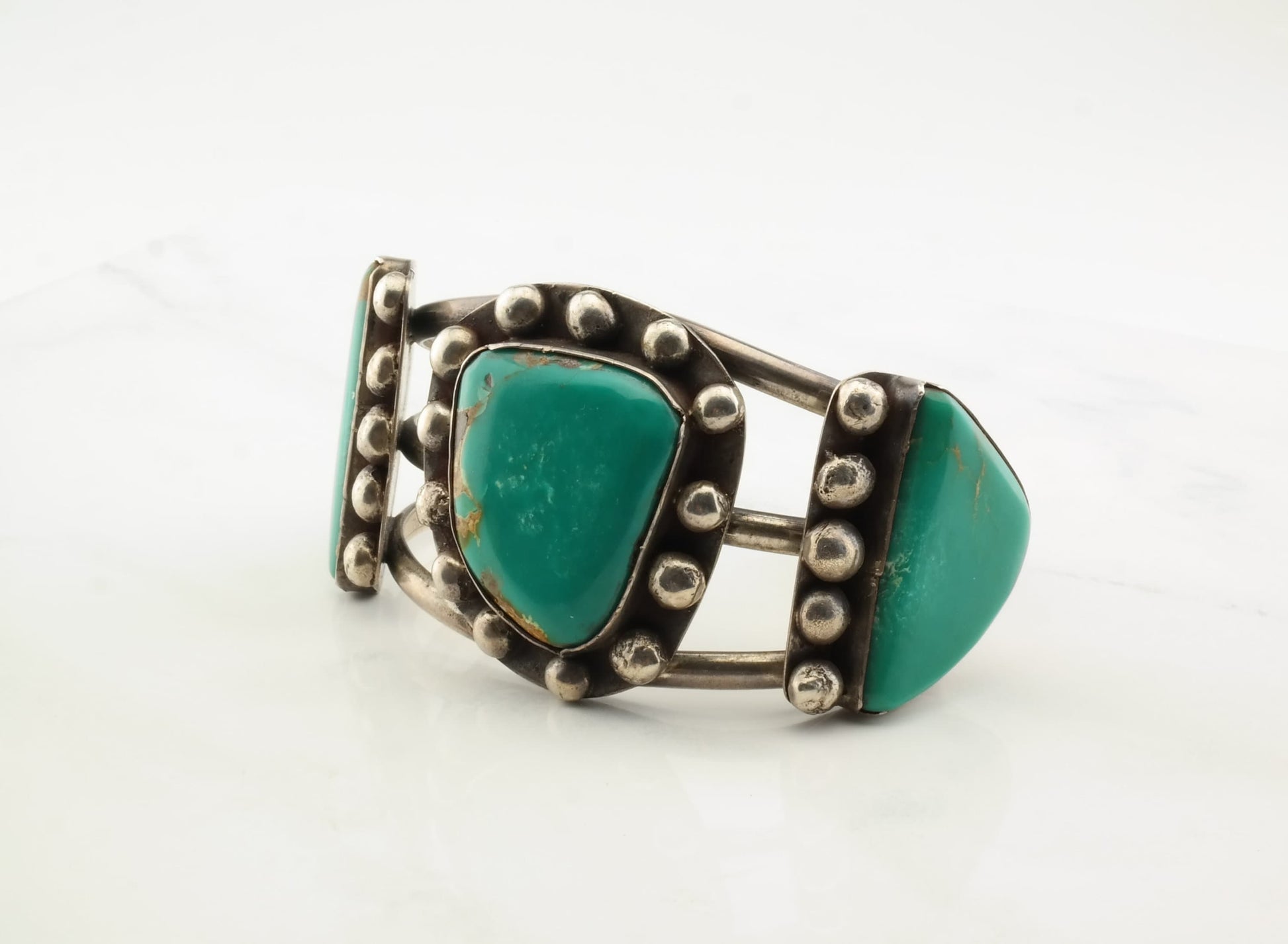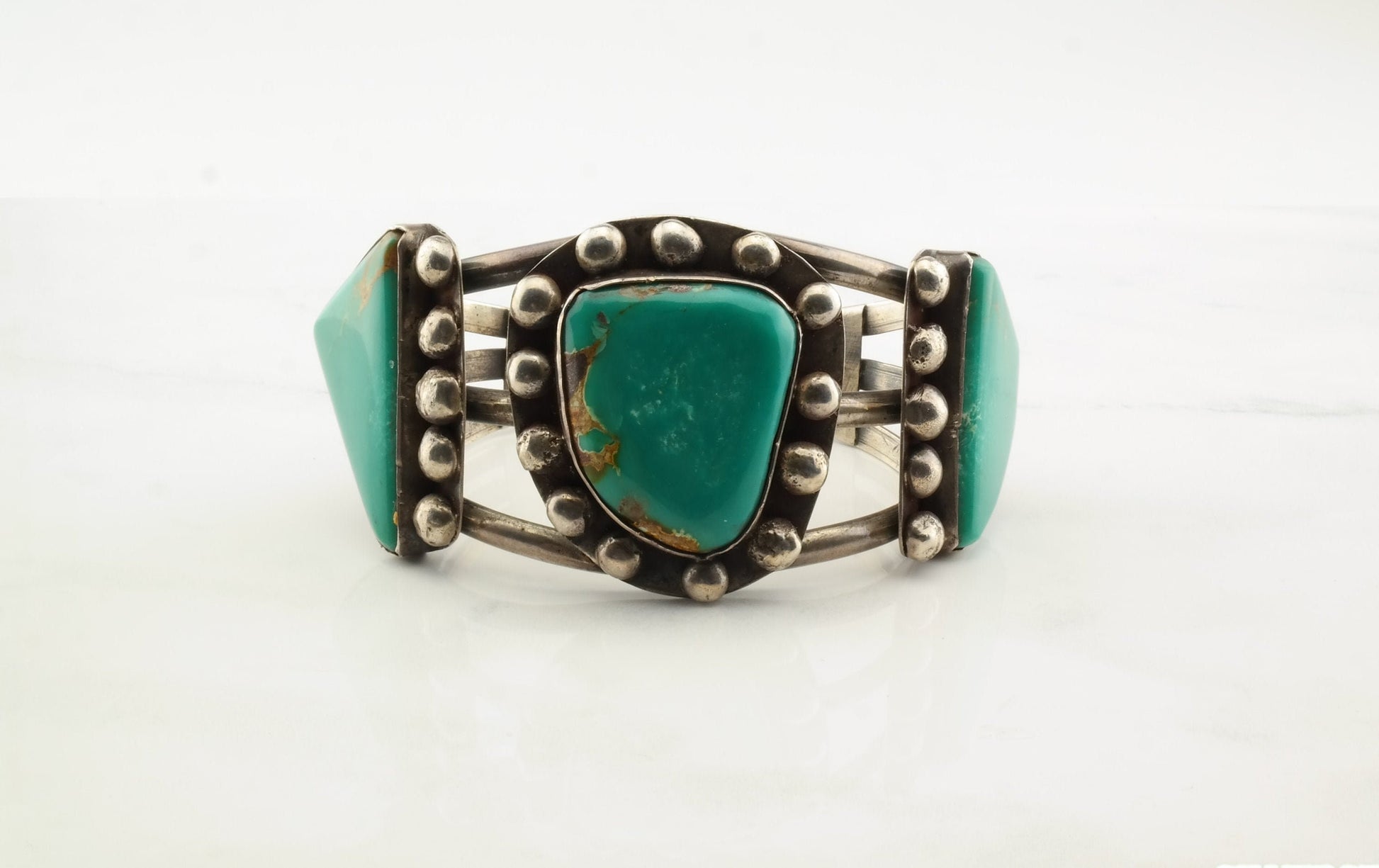 Native American Old Pawn Silver Cuff Bracelet Kings Manassa Turquoise