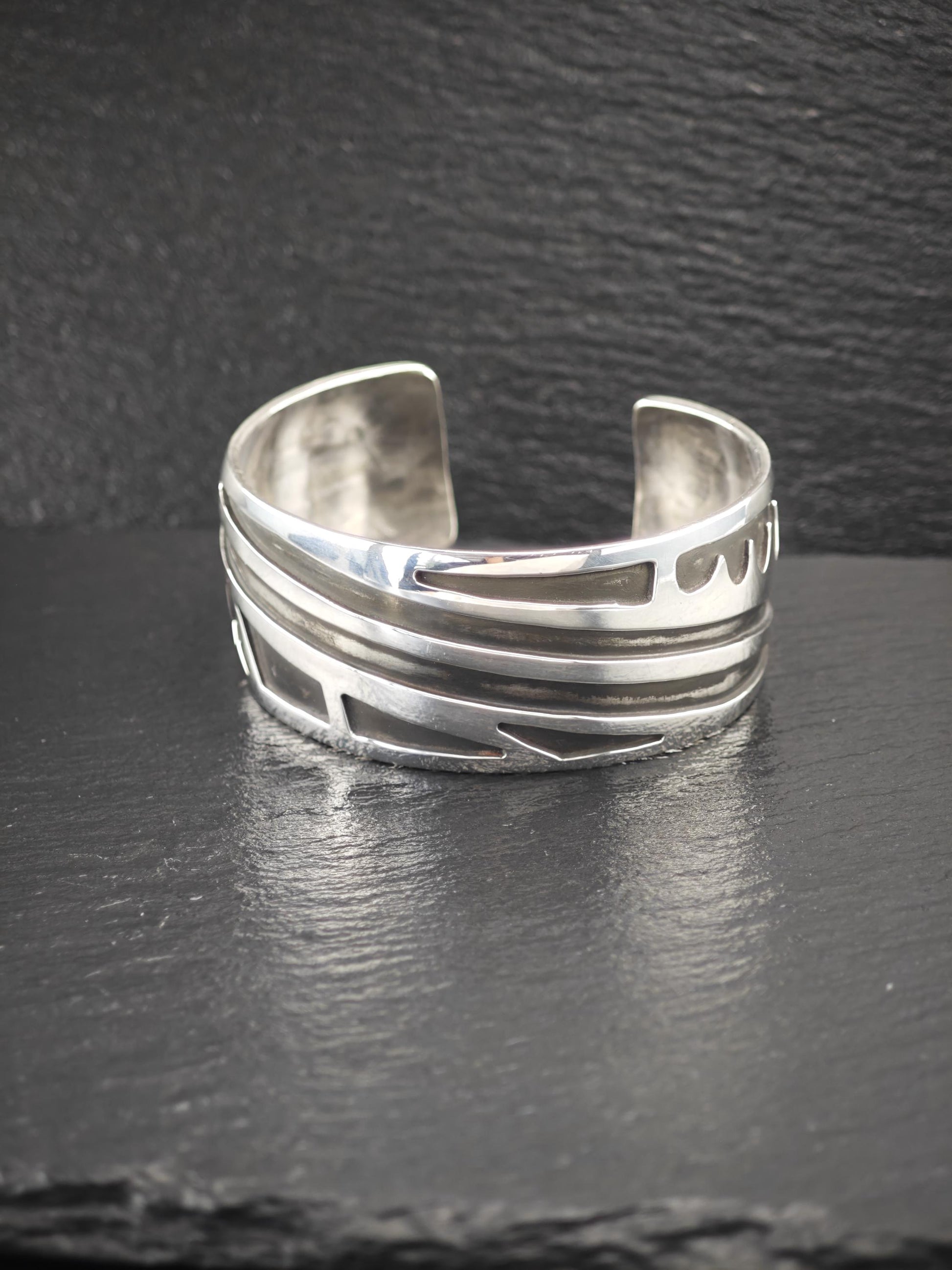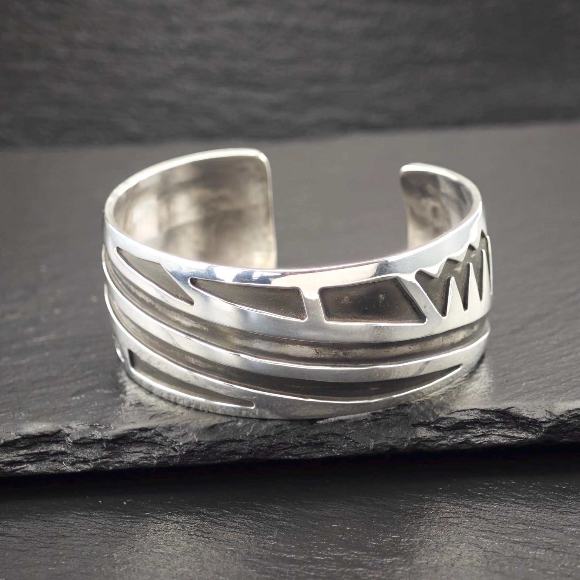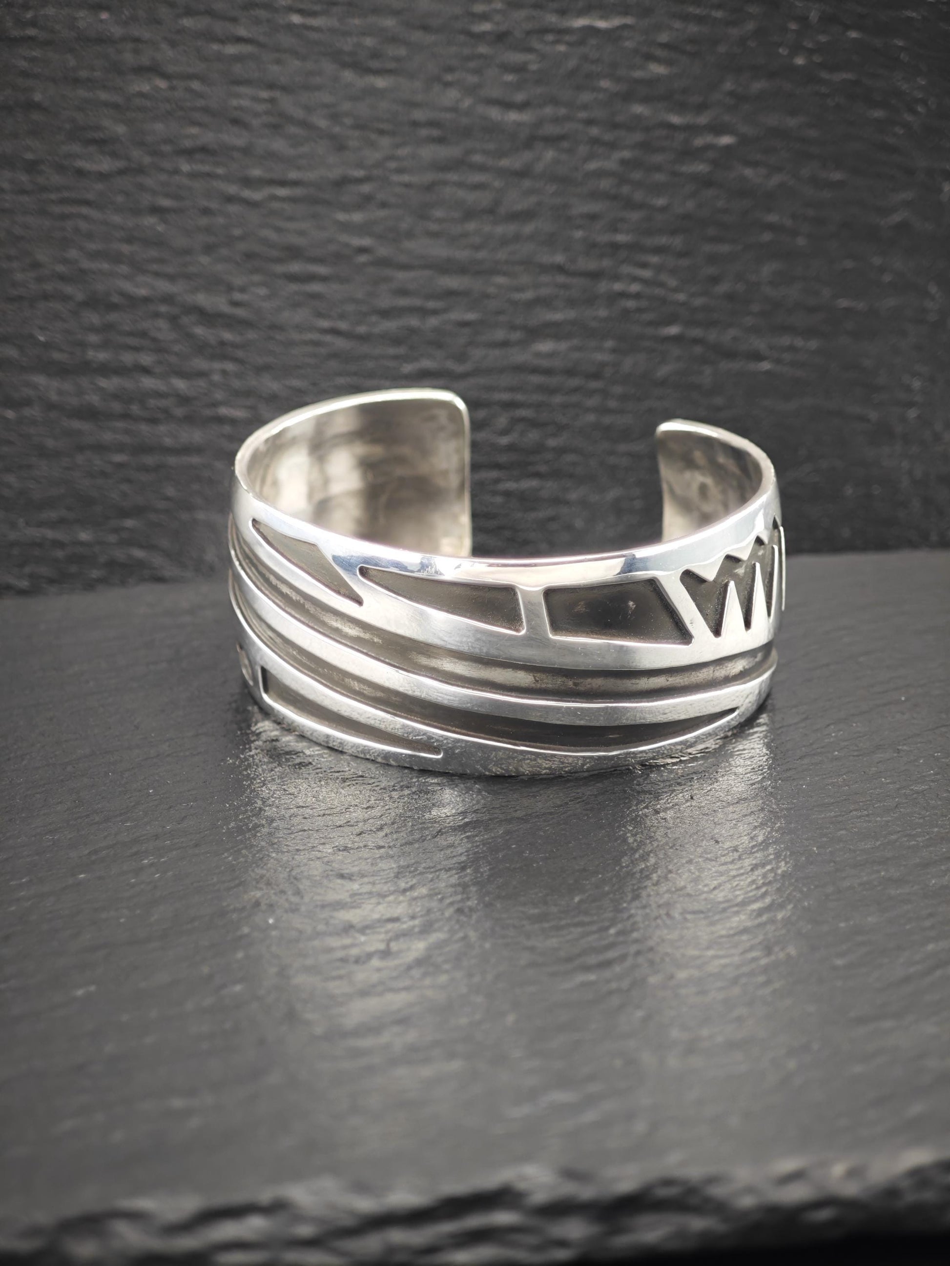 Native American Overlay, Cuff Bracelet Sterling Silver